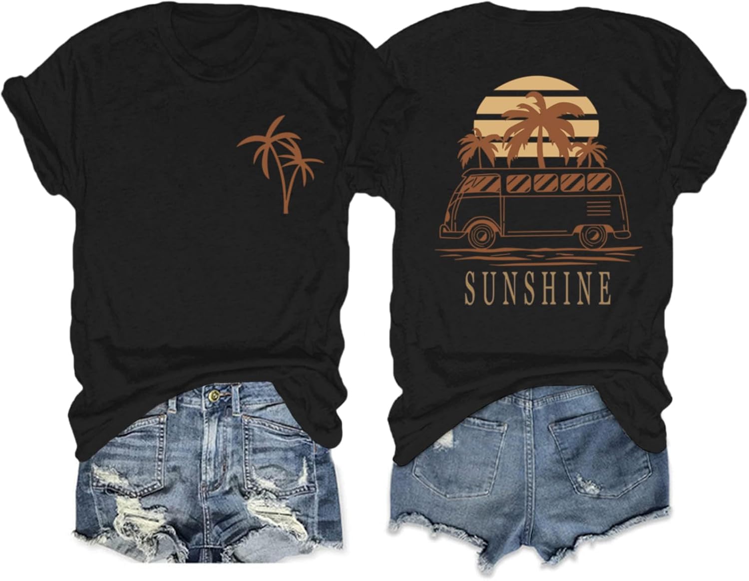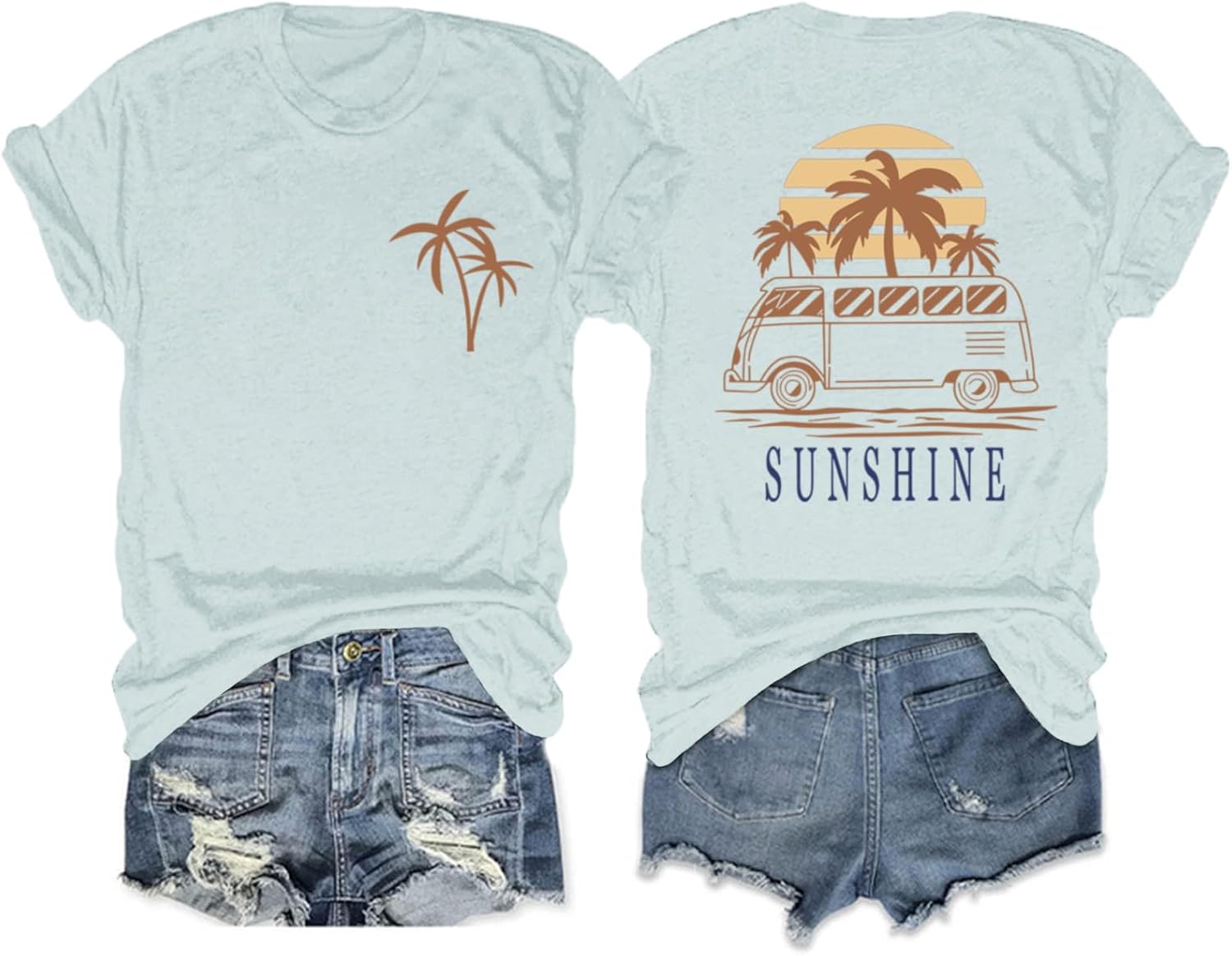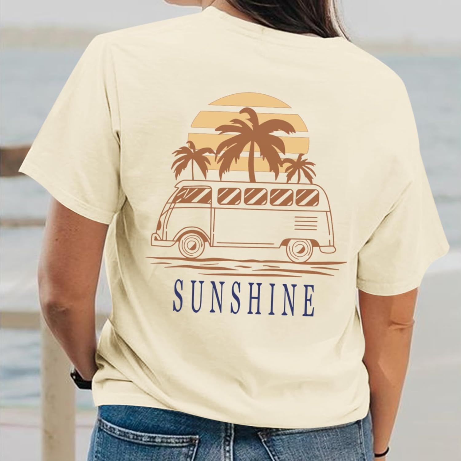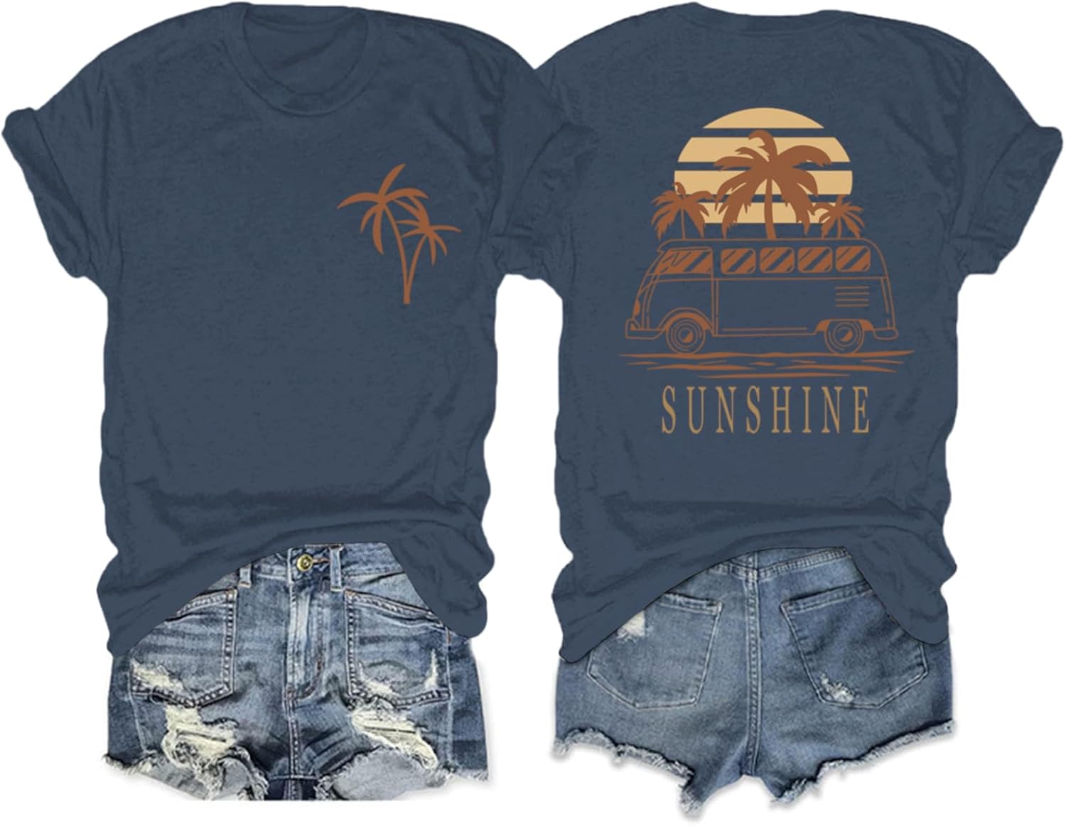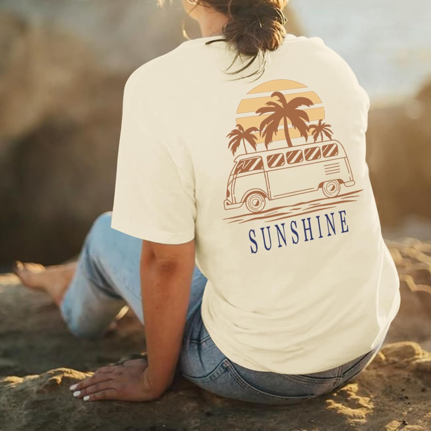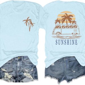 Brighten someone's day with this vintage charming summer sunshine beach t-shirt. Ideal for friends, teen girls, daughters, moms, sisters, aunts, or classmates, this cute tropical graphic tees is a delightful Present
