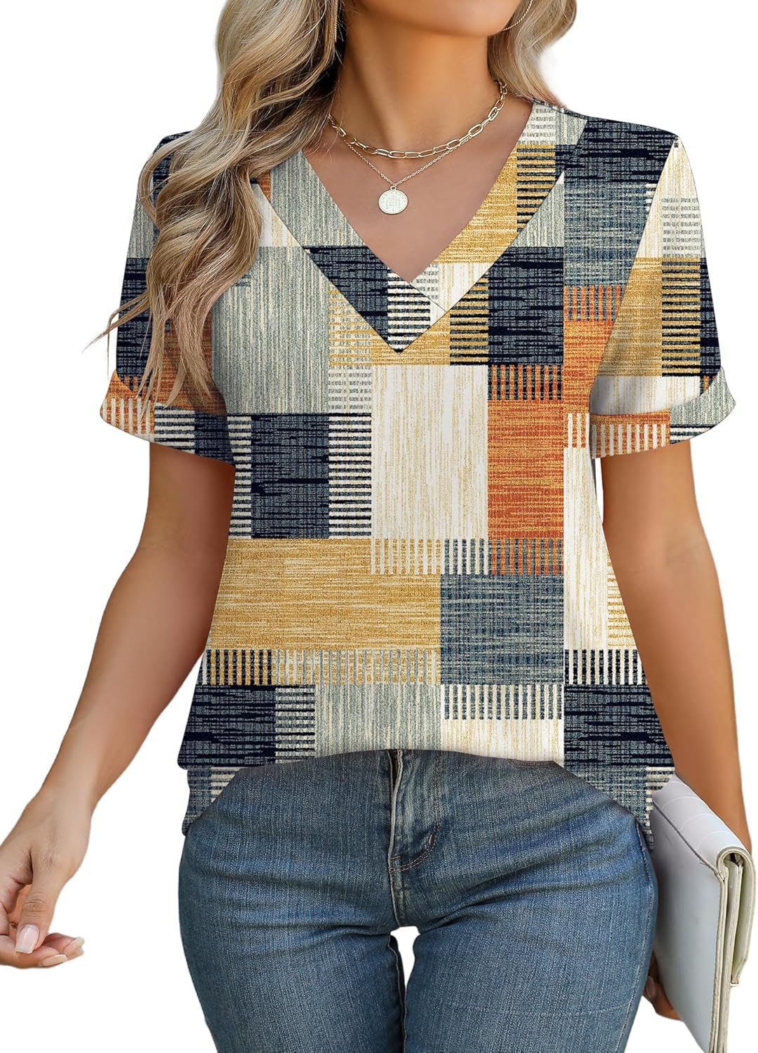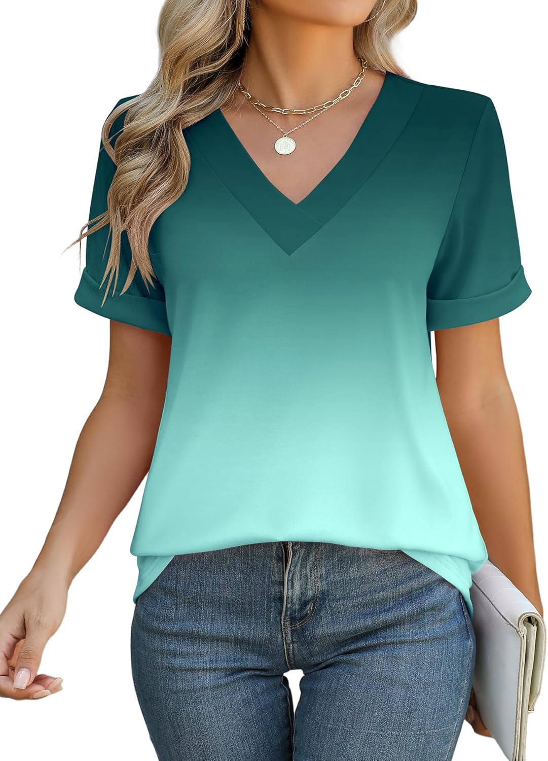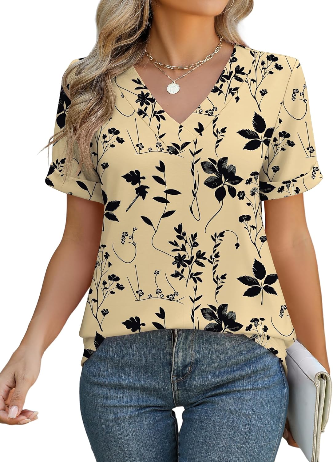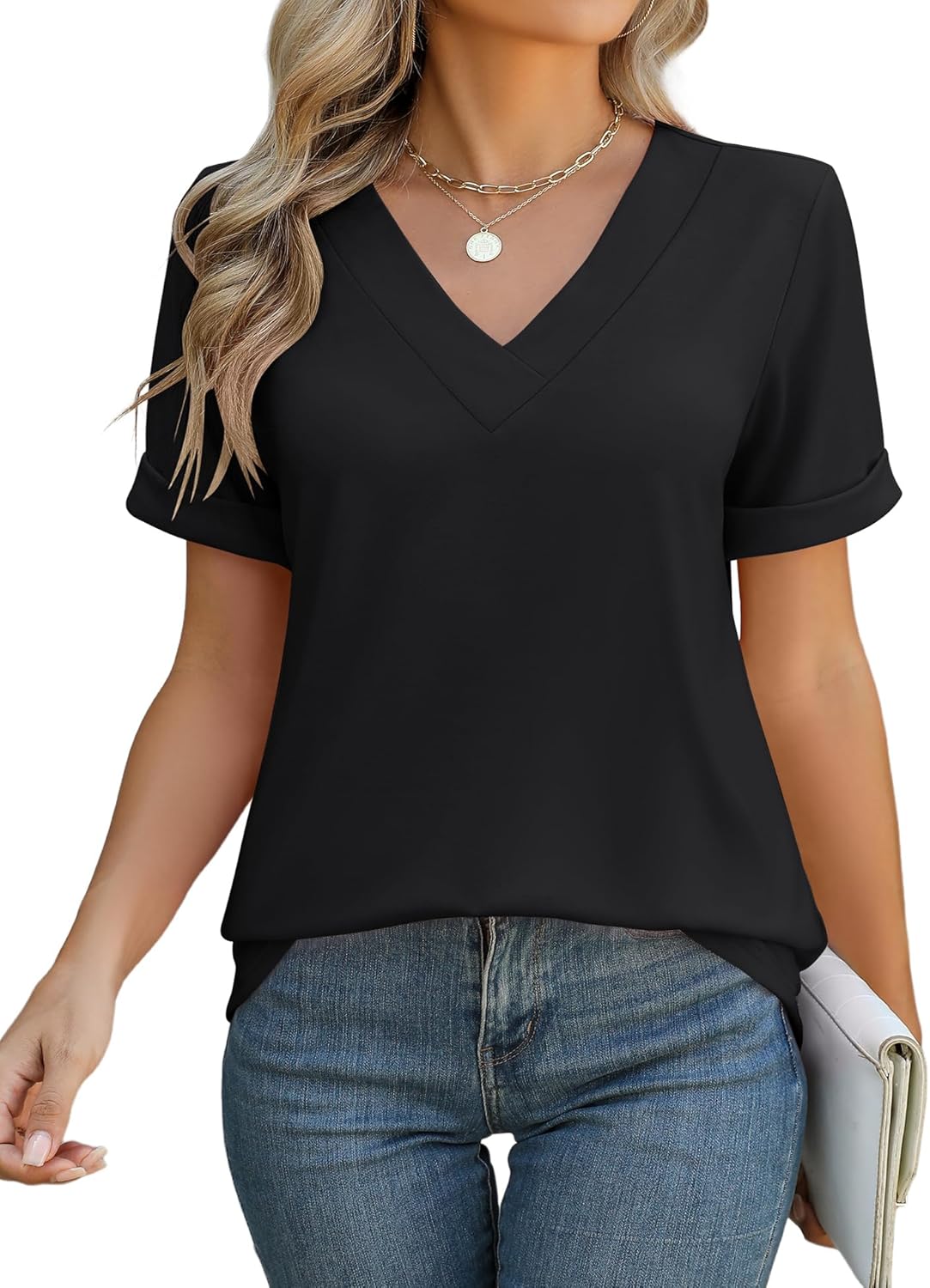 Rapbin Women V Neck Dressy Casual T Shirts Fashion Macth