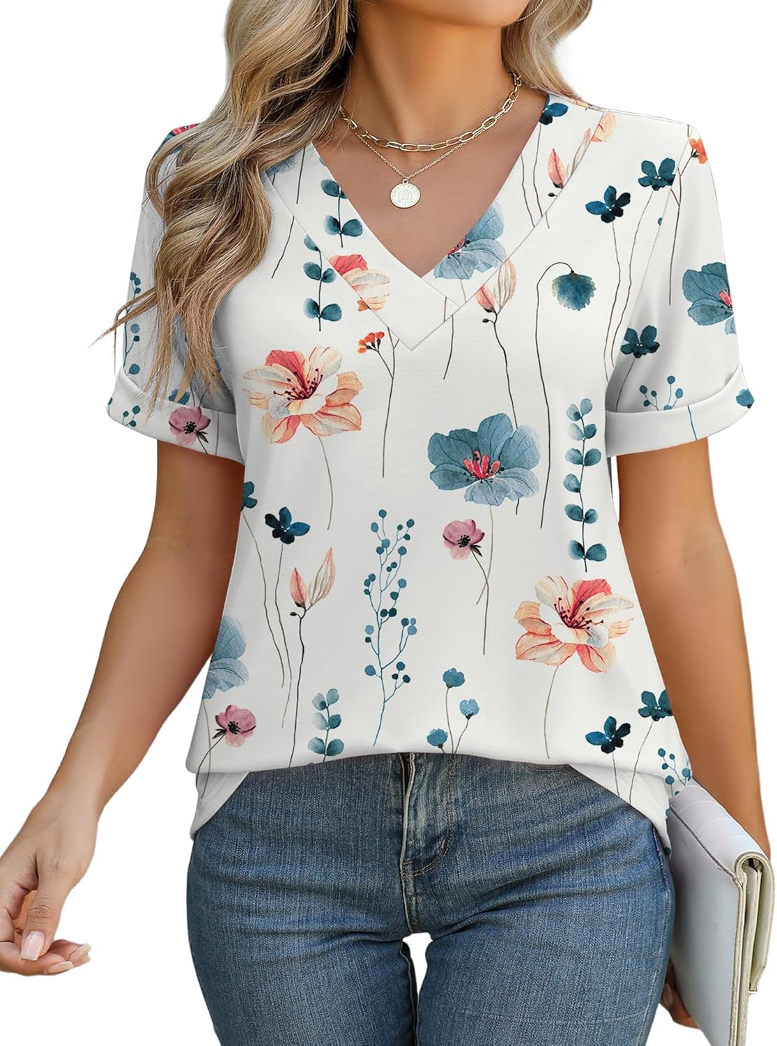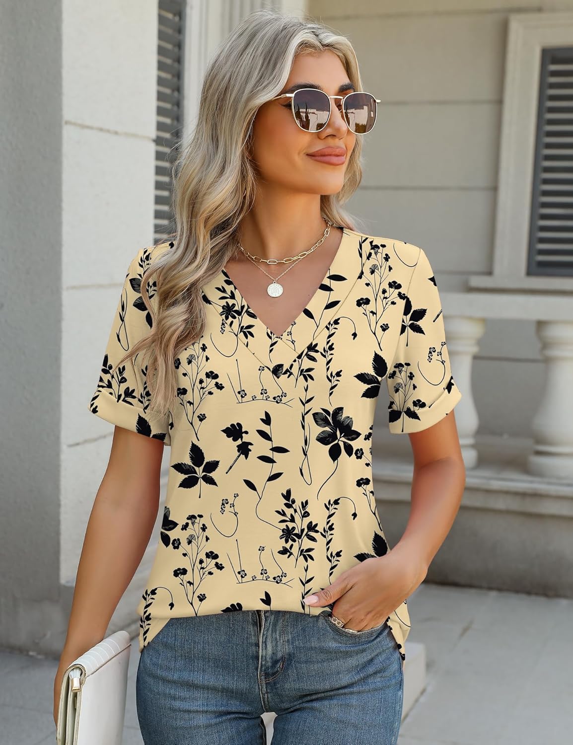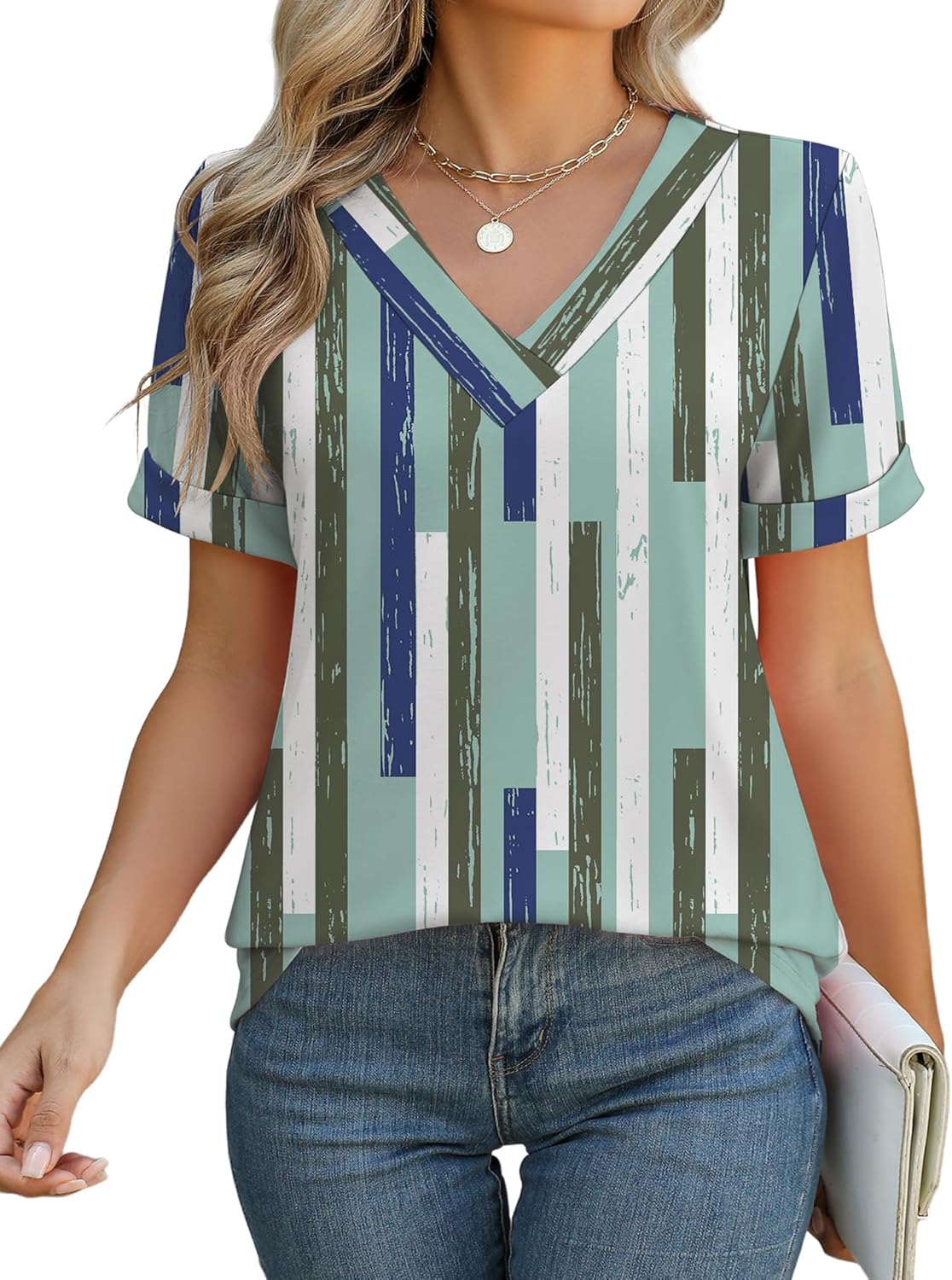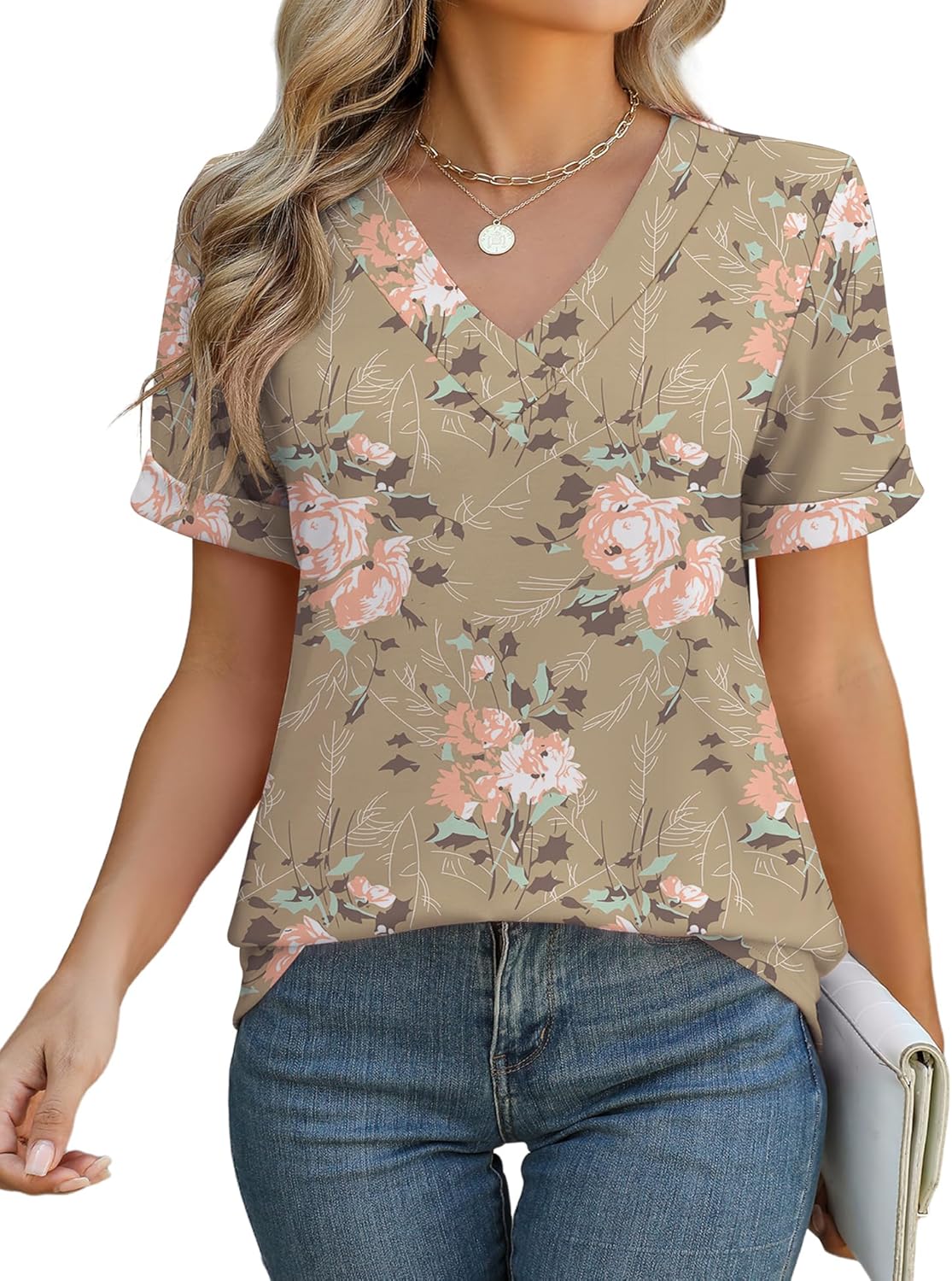 Rapbin Women V Neck Dressy Casual T Shirts Fashion Macth