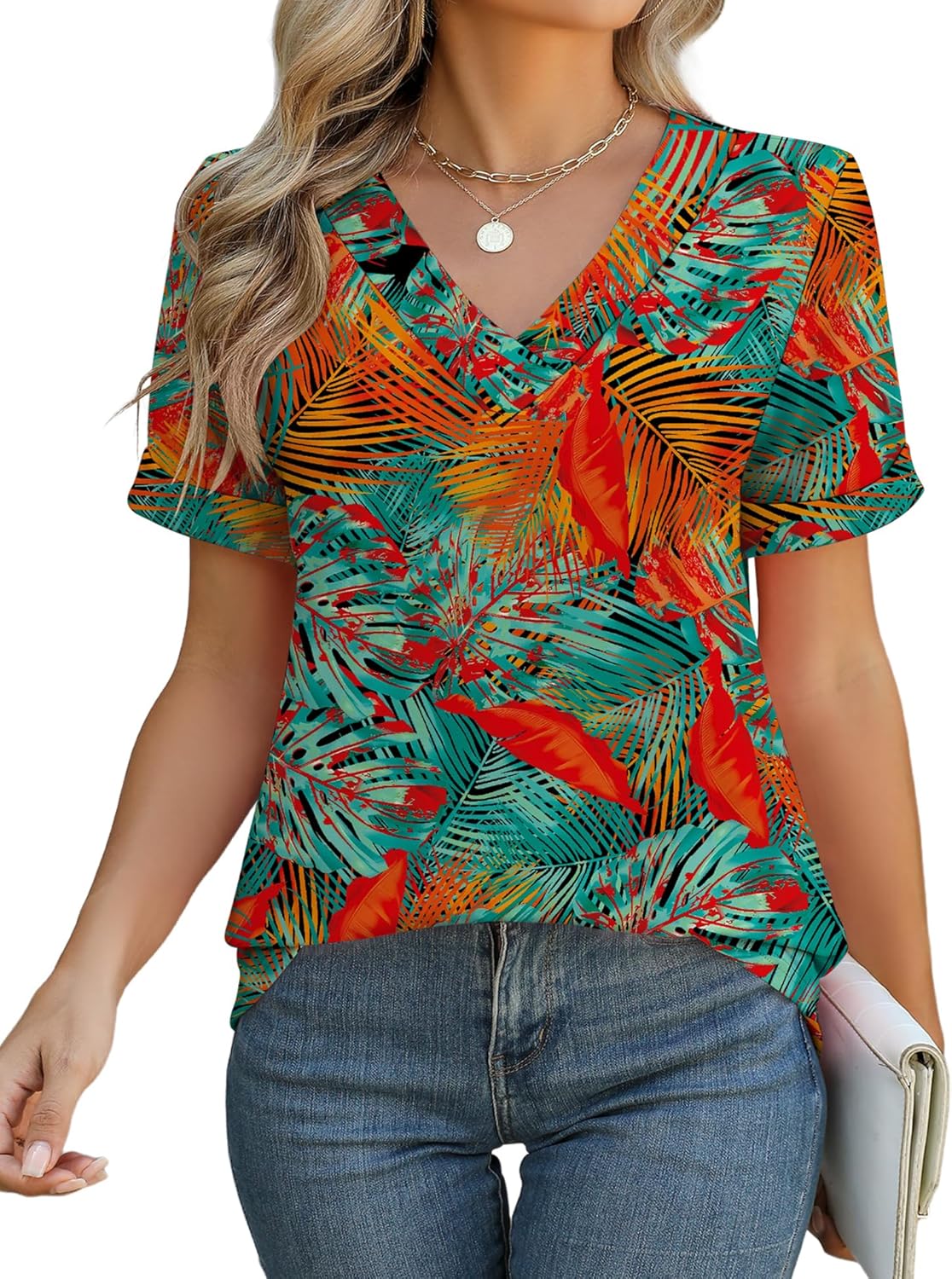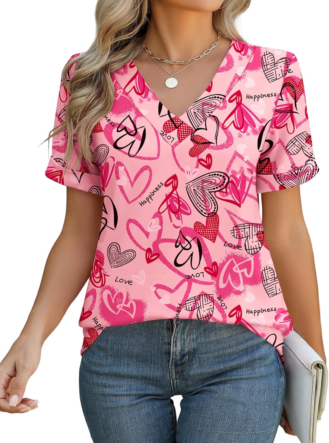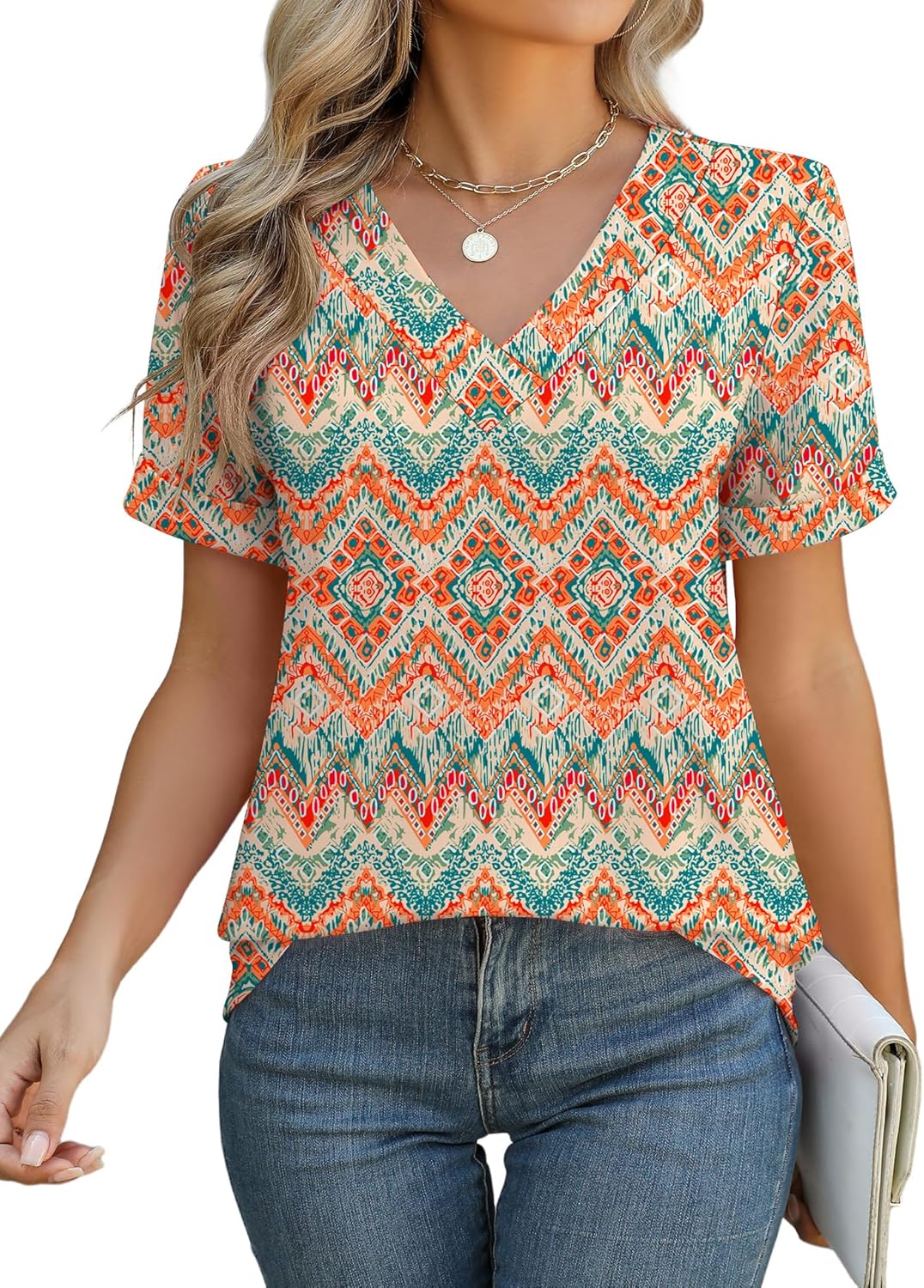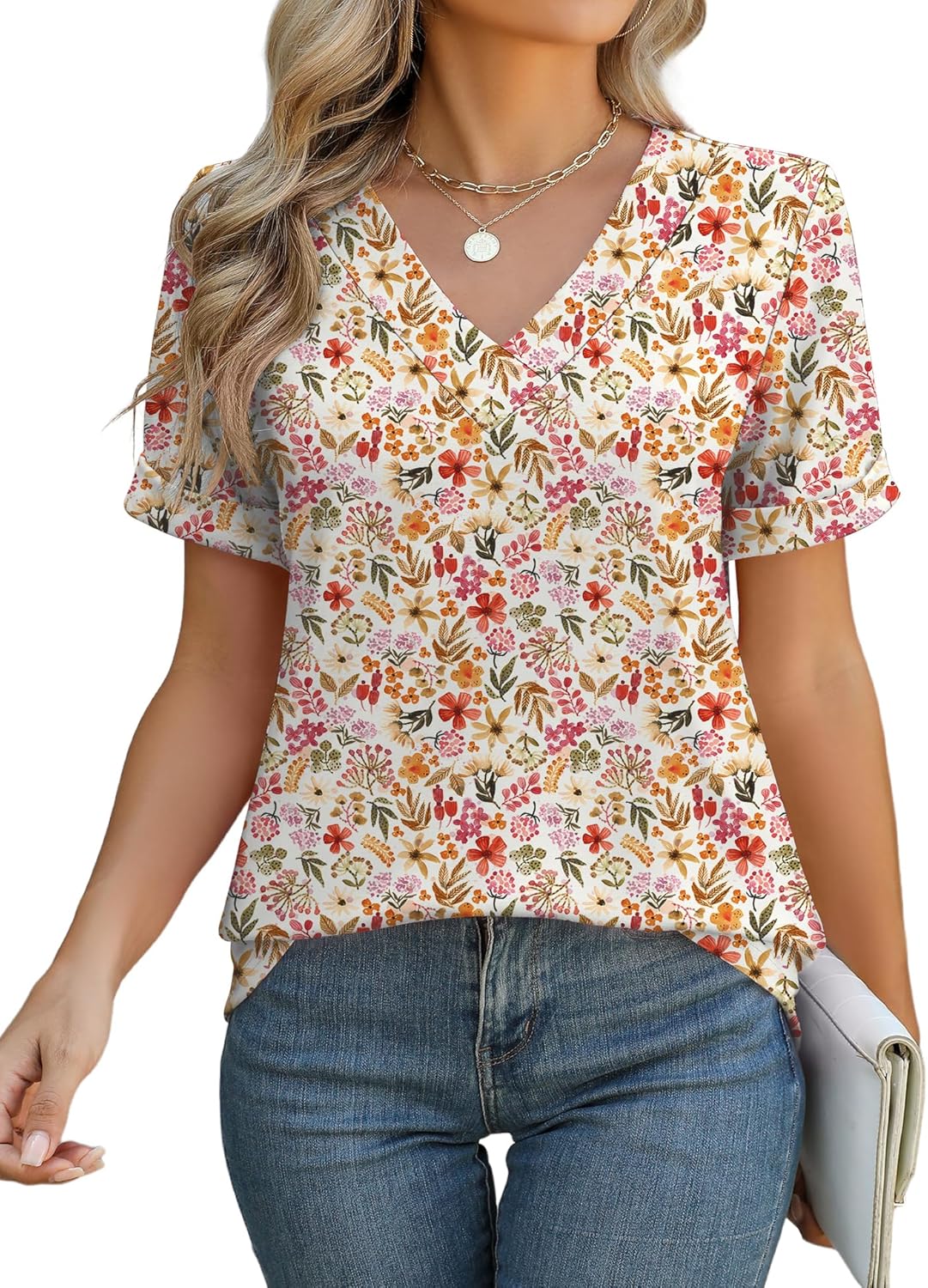 Rapbin Women V Neck Dressy Casual T Shirts Fashion Macth