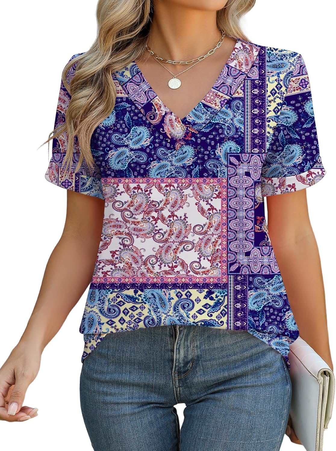 Our v neck t shirts are designed to provide ultimate comfort, which made of soft, breathable, and stretchable material. The fabric is skin-friendly and extremely easy to wear and care.