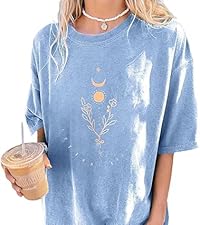 Round Neck Oversized Tshirts Loose Casual Summer Shirts Boyfriend Graphic Tees