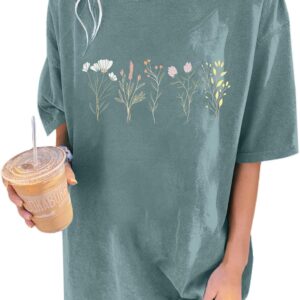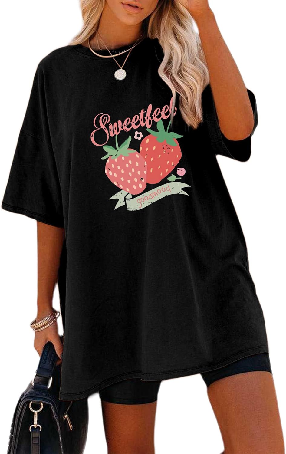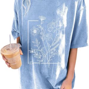 Remidoo Women's Casual Short Sleeve Graphic Oversized T Shirt