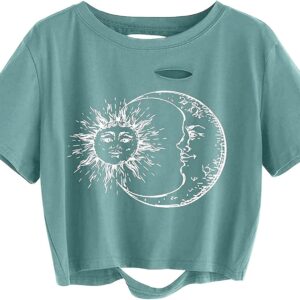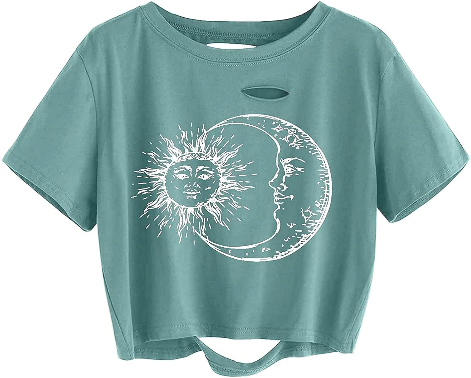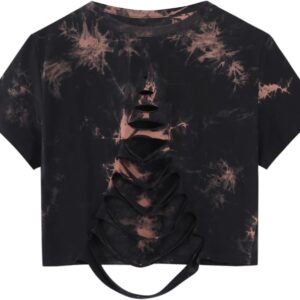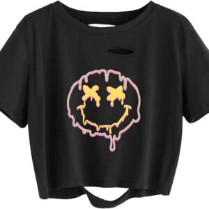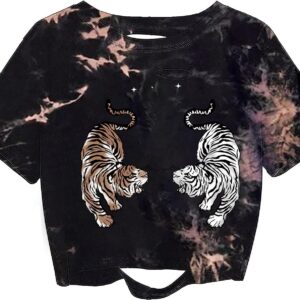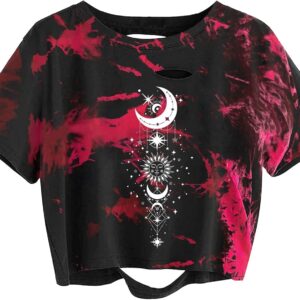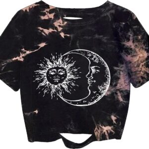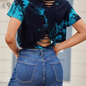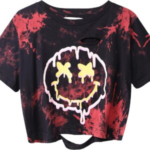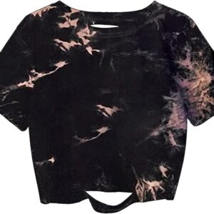 Remidoo Women’s Casual Short Sleeve Graphic Print Tie Dye Crop Top T Shirt