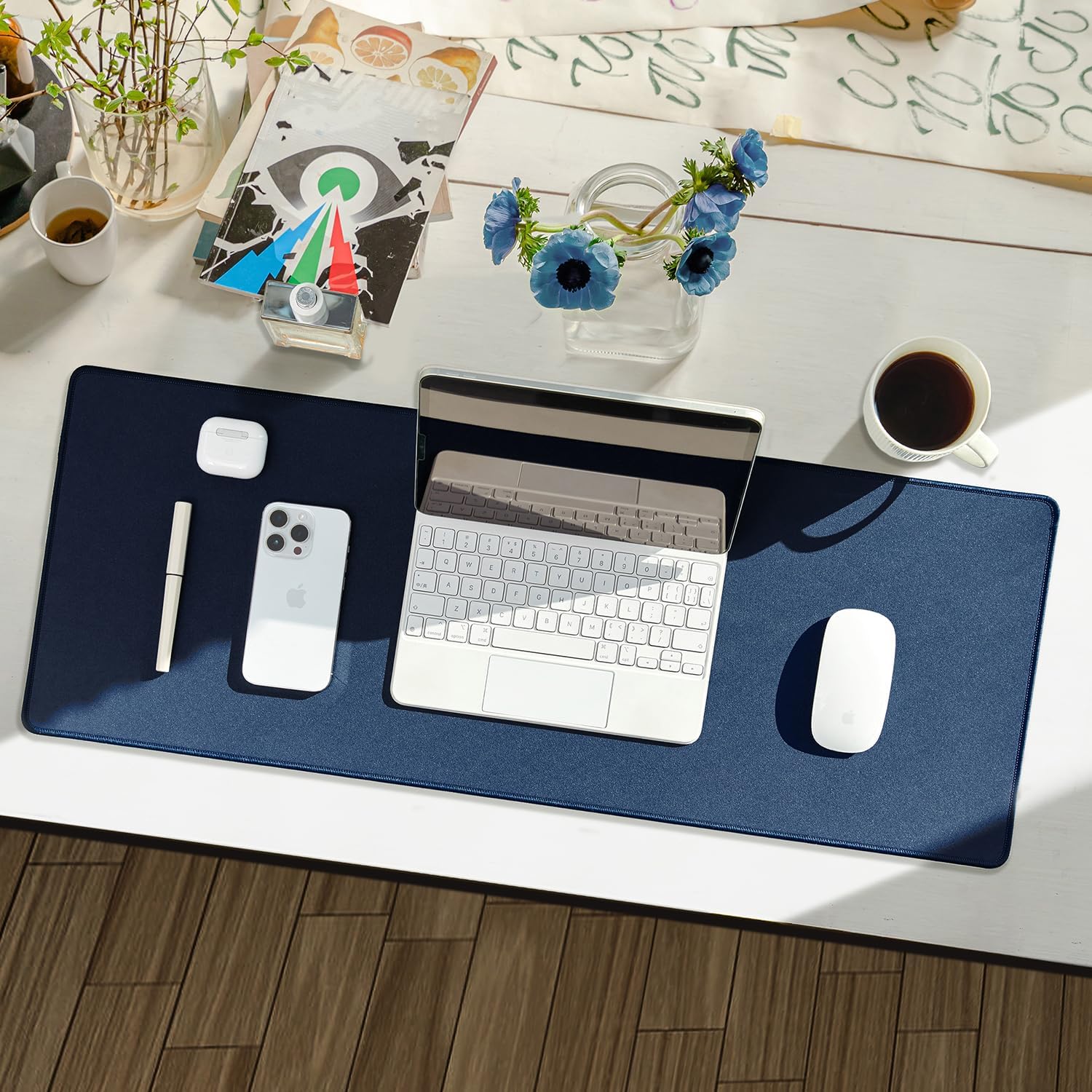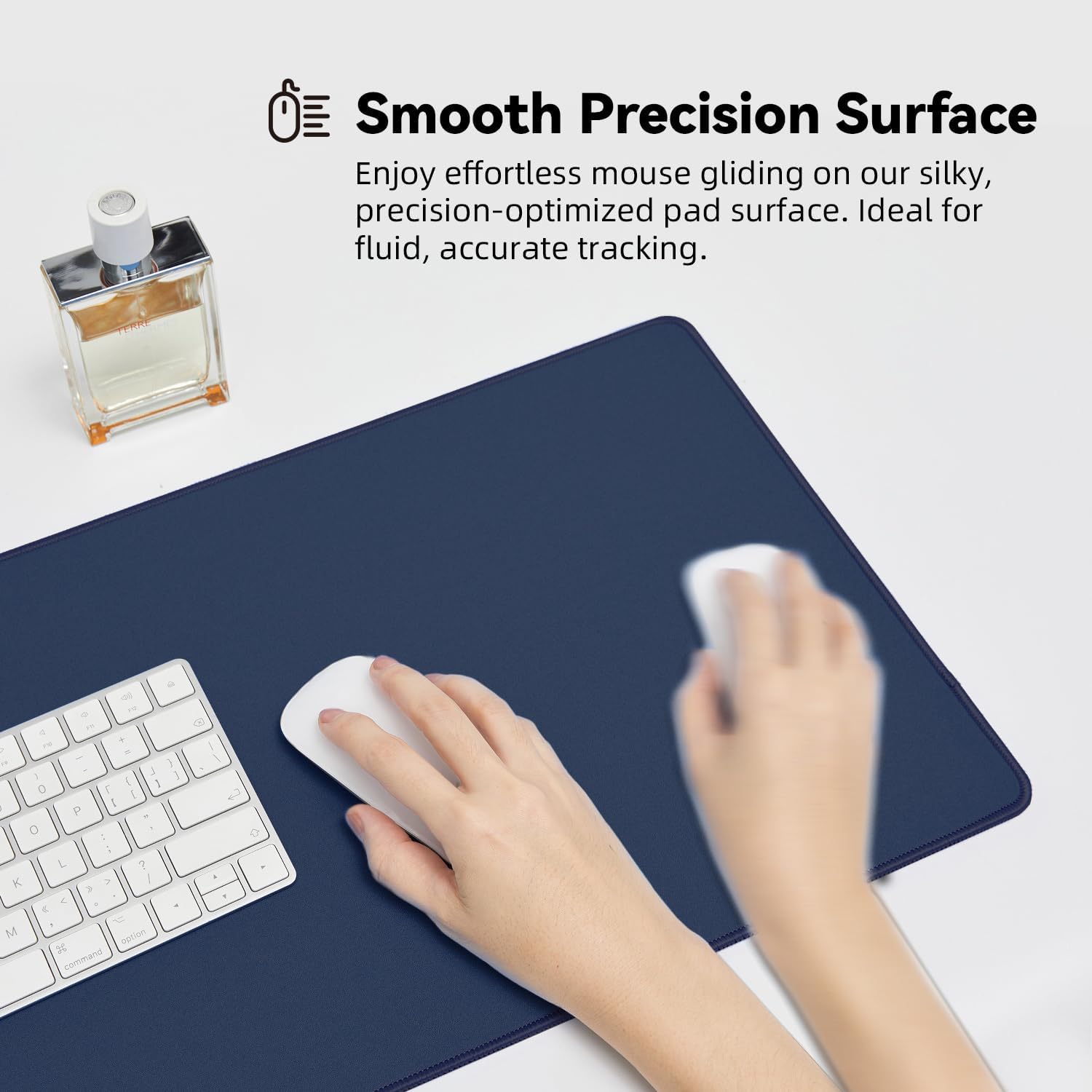 Reniteco Waterproof Large Gaming Mouse Pad with Durable Stitched Edges, Non-Slip Rubber Base, Smooth Surface Mouse Mat Desk Pad for Home Office Gaming, 27.5″x11.8″x0.08″, Dark Blue