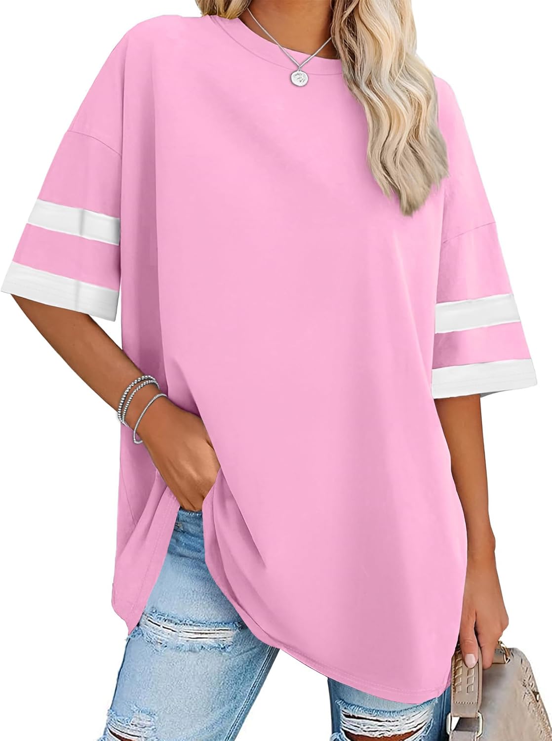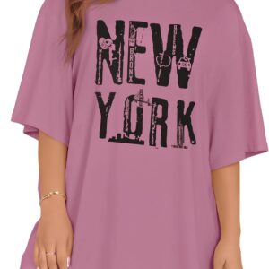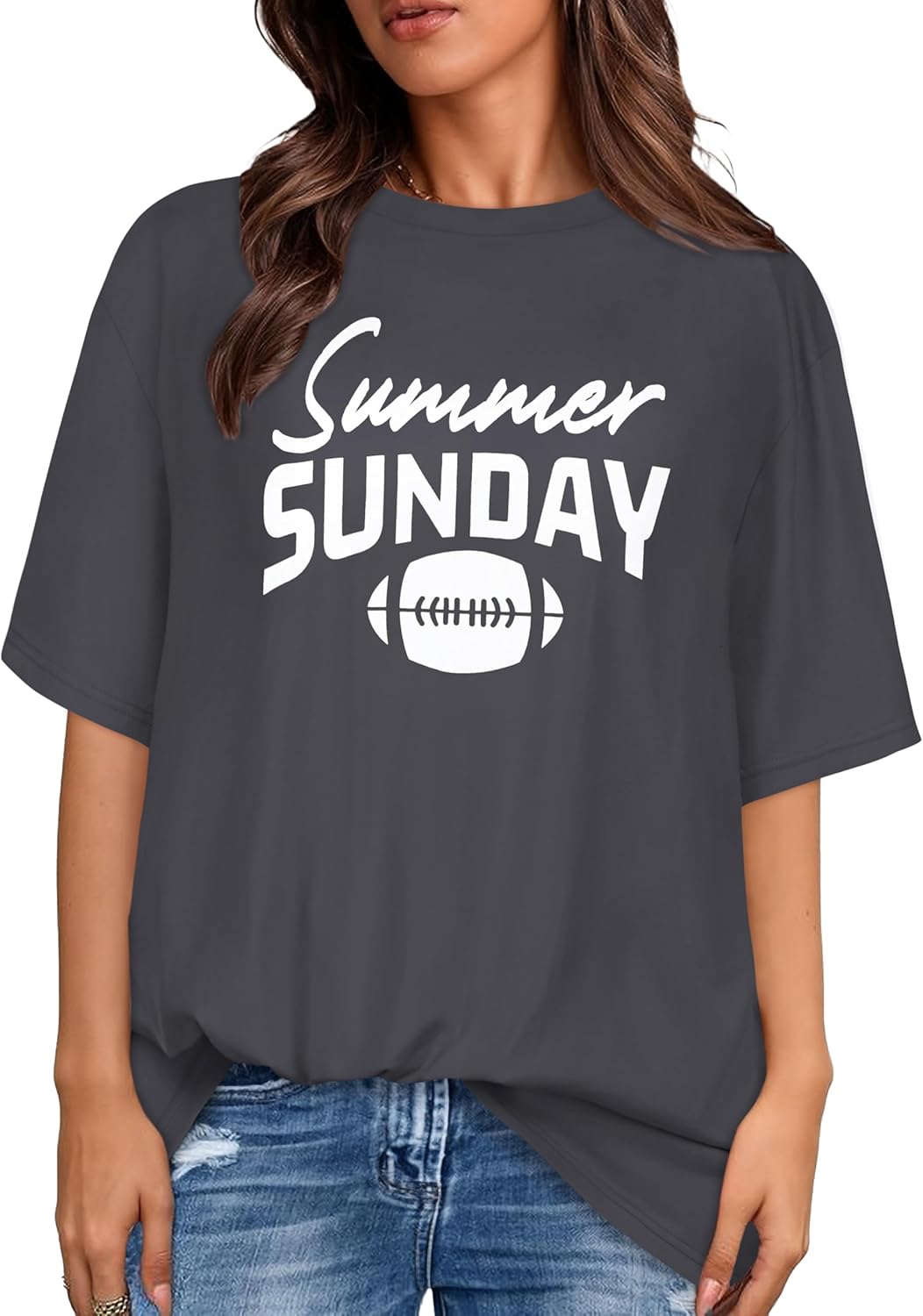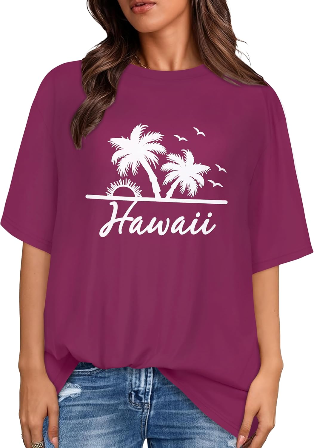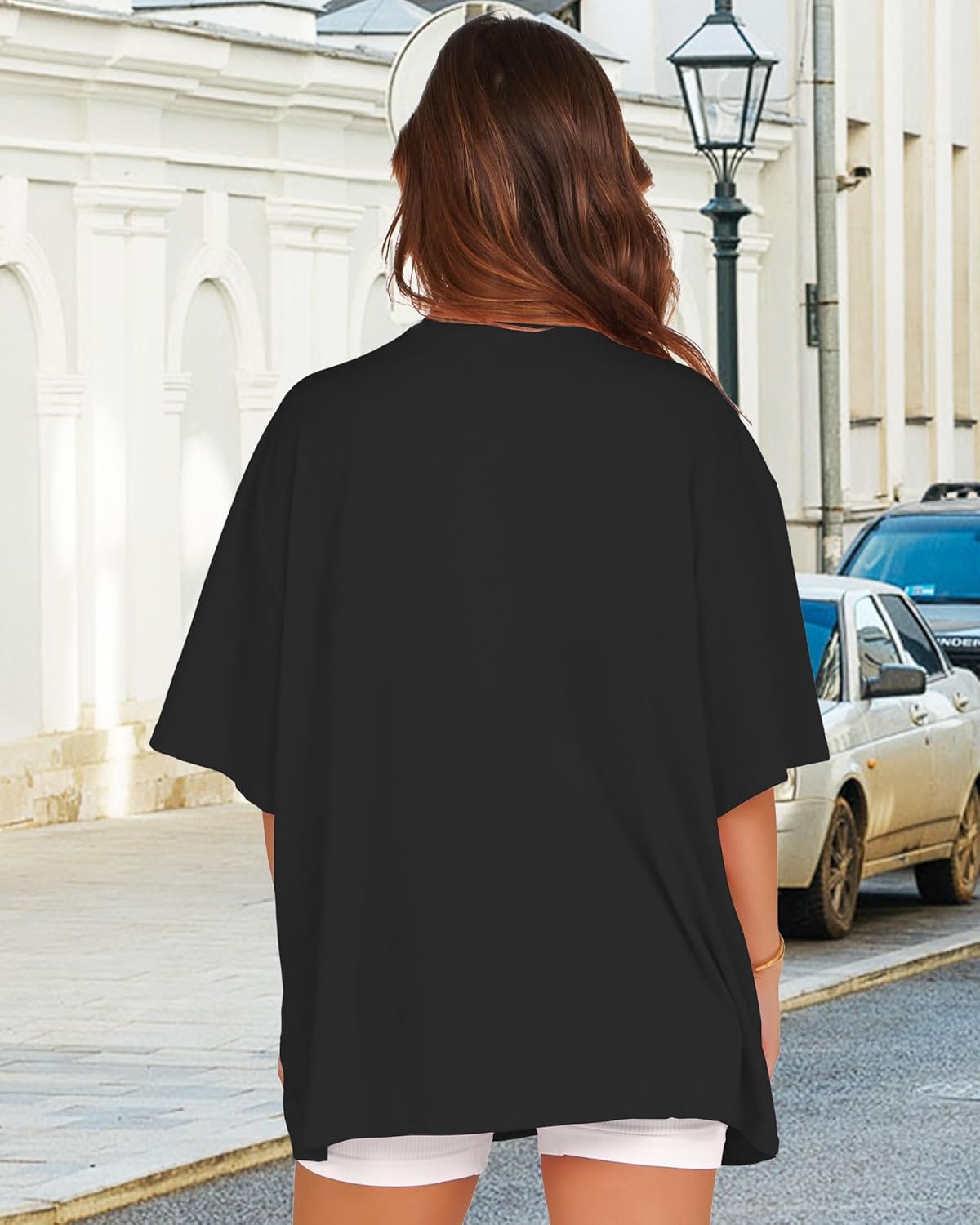 rosemia Oversized Tshirts for Women Summer Short Sleeve Round Neck Graphic Tee Shirt