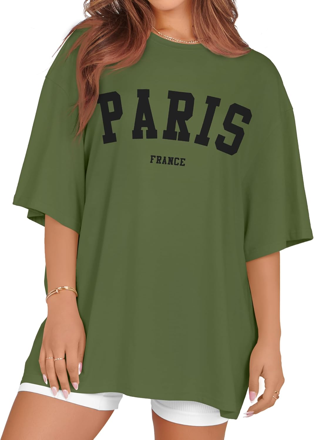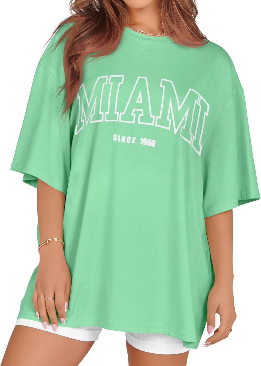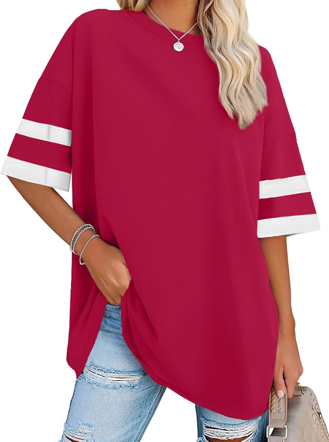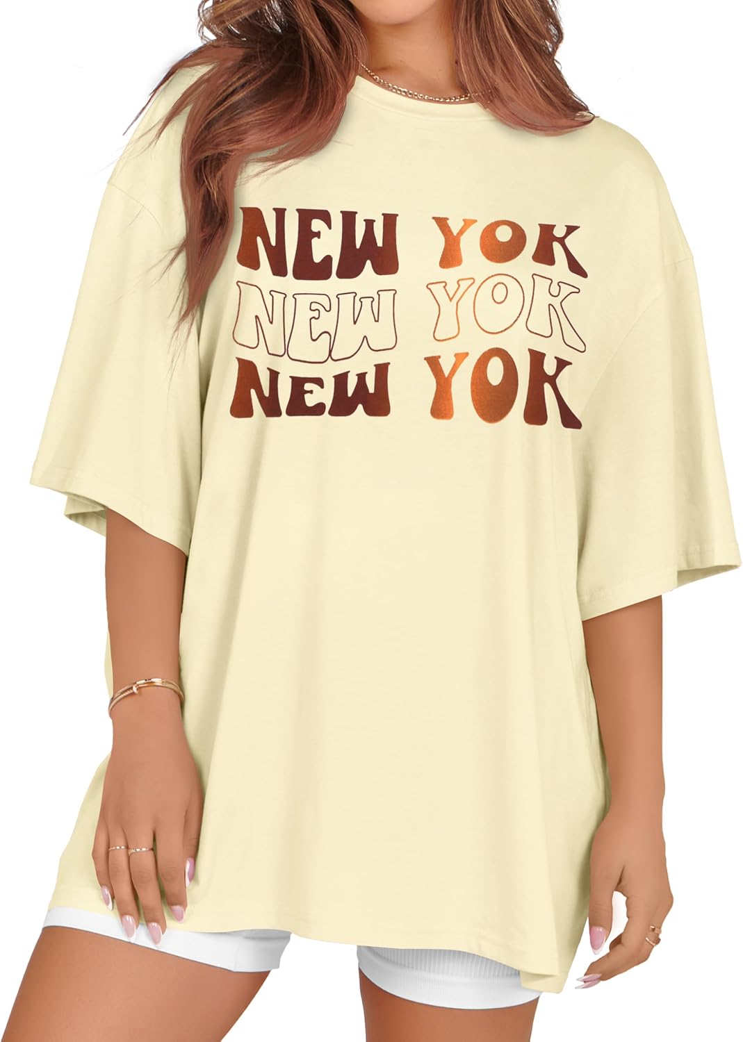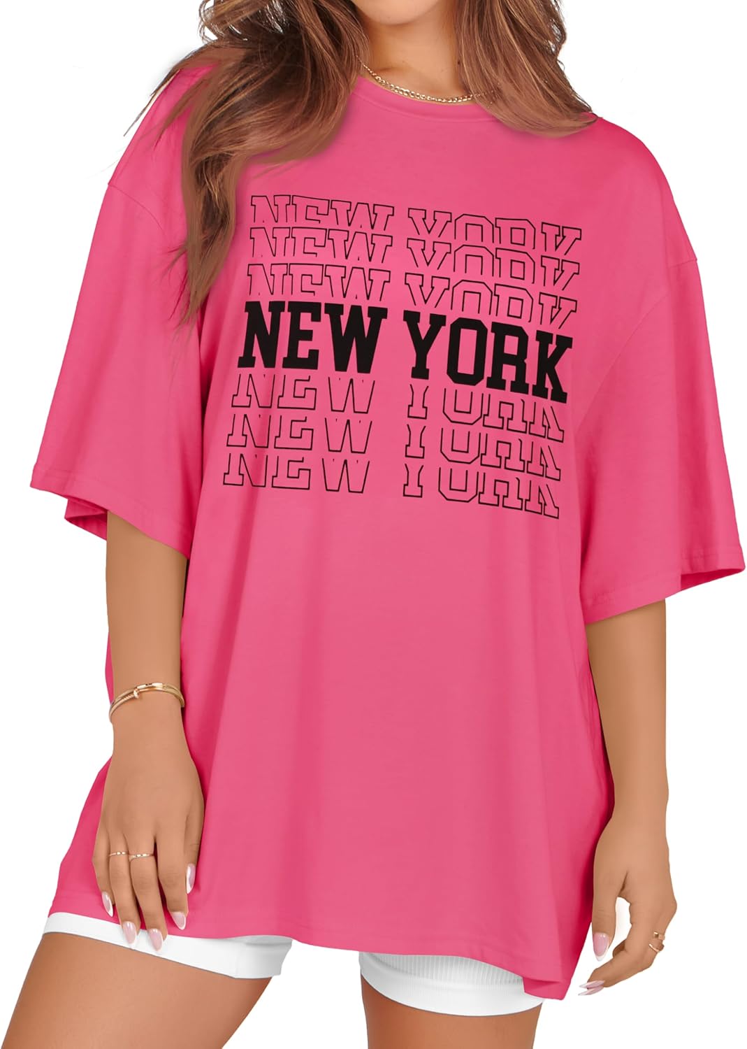 rosemia Oversized Tshirts for Women Summer Short Sleeve Round Neck Graphic Tee Shirt