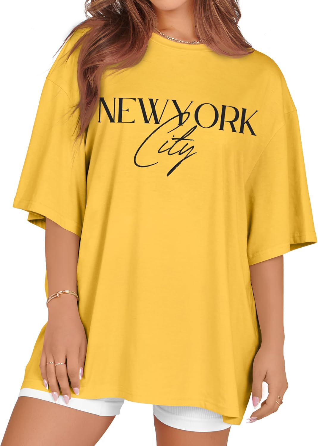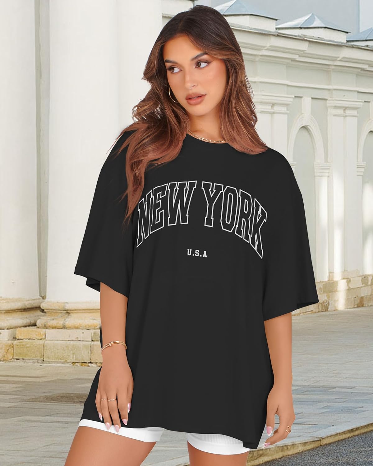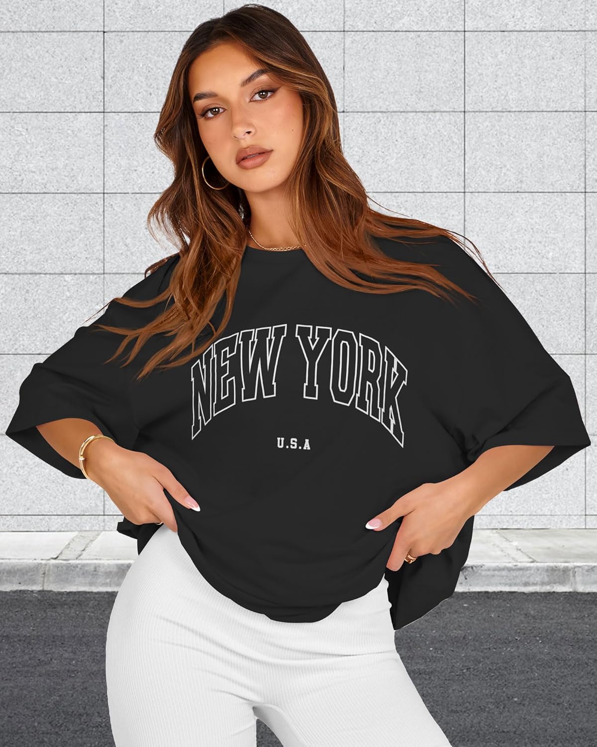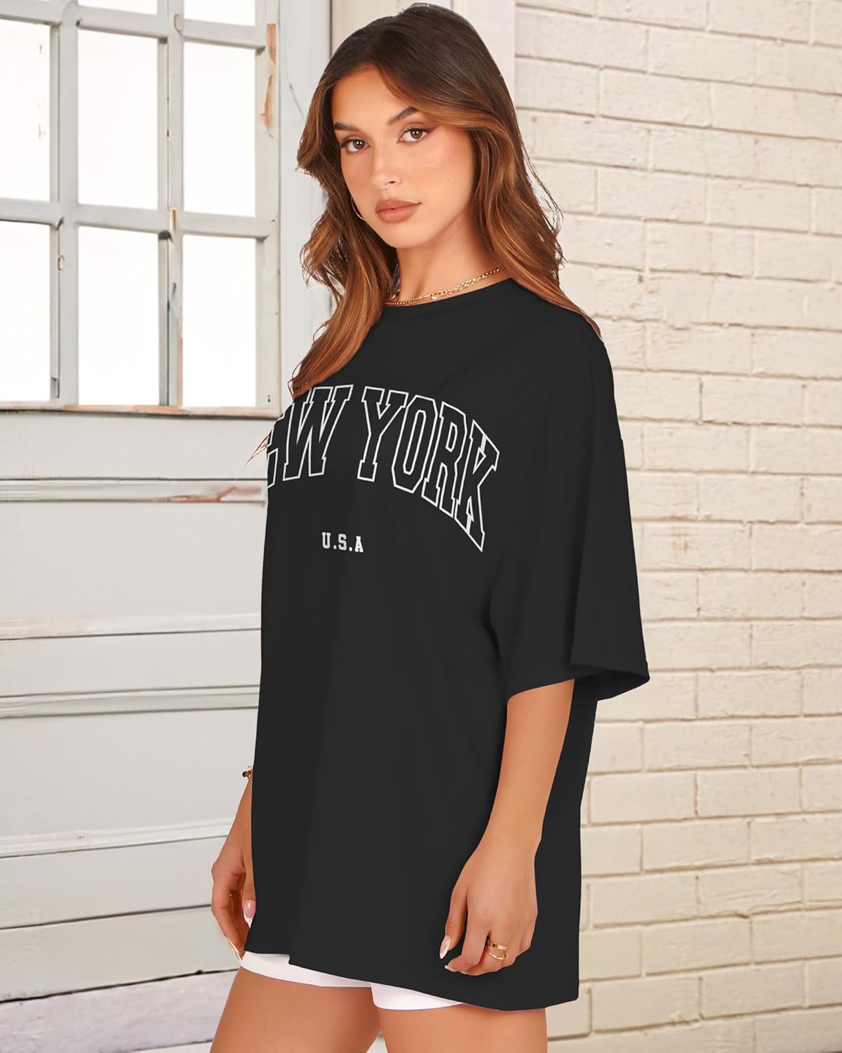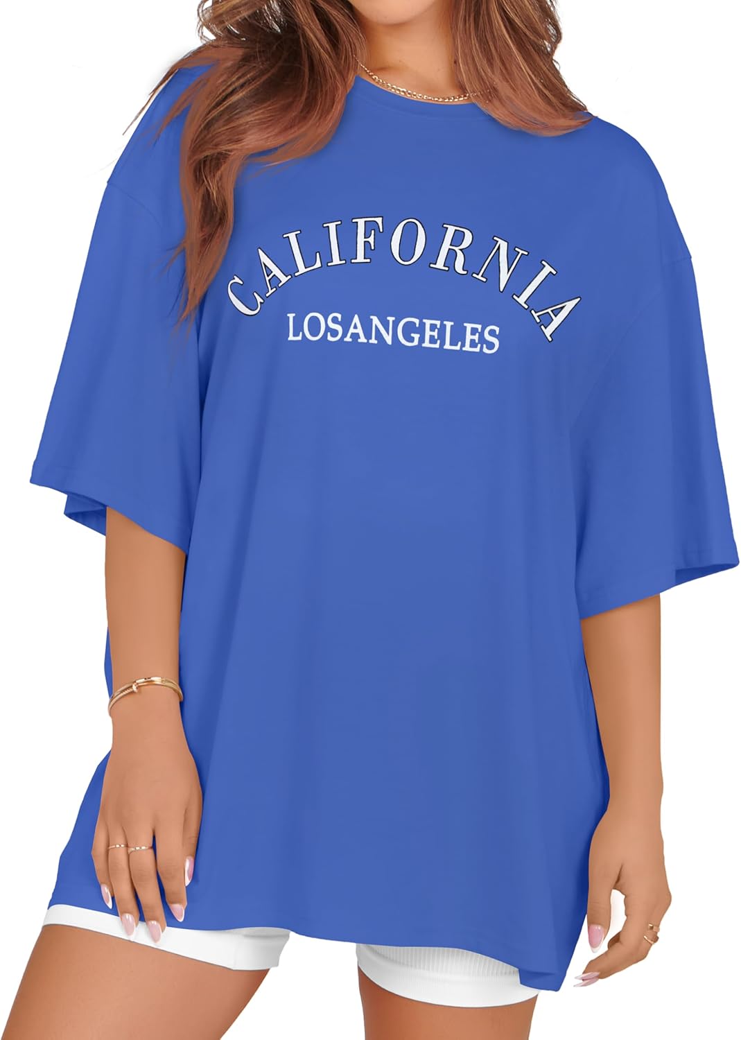 rosemia Oversized Tshirts for Women Summer Short Sleeve Round Neck Graphic Tee Shirt