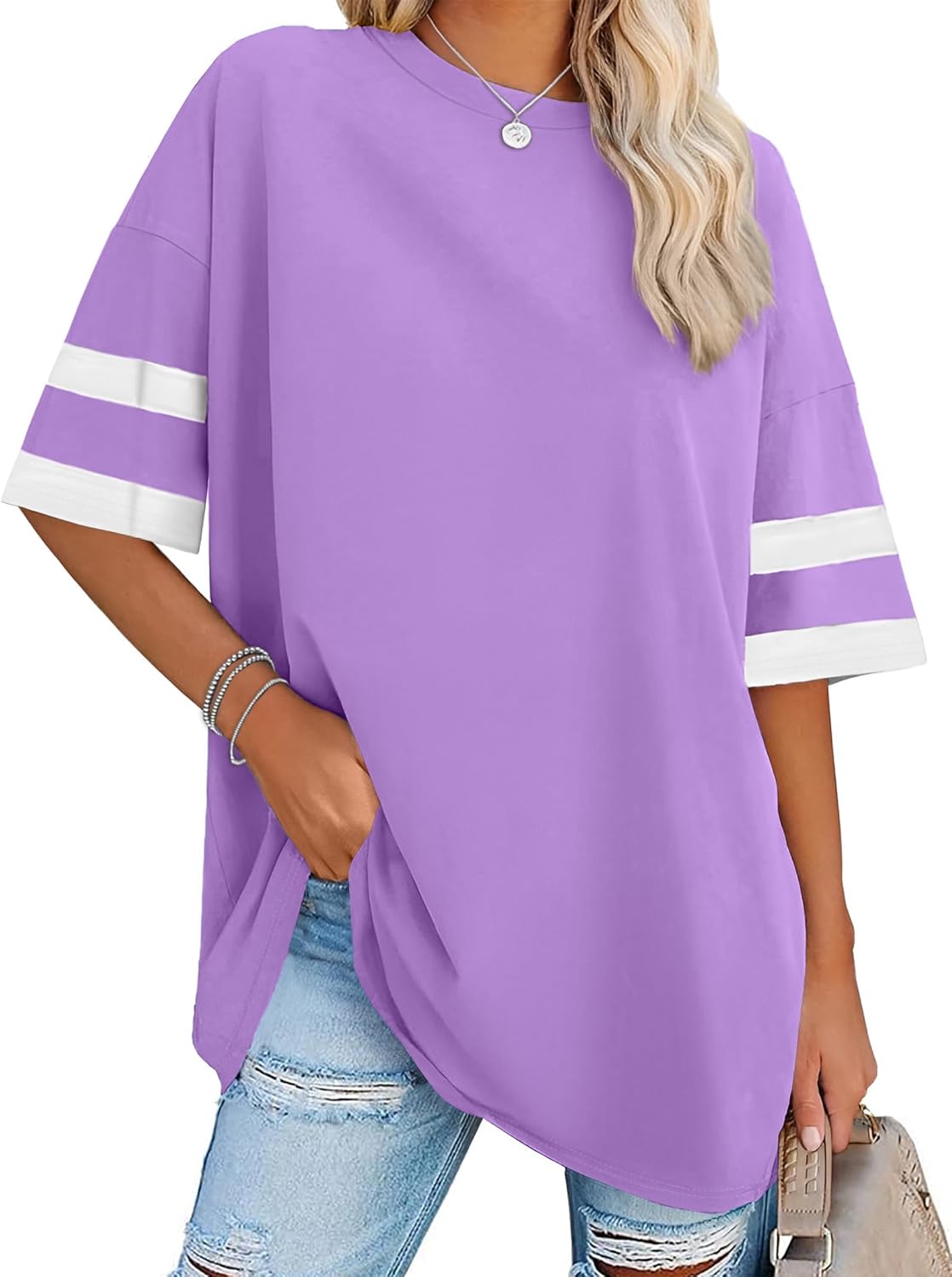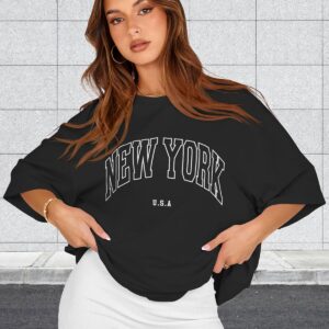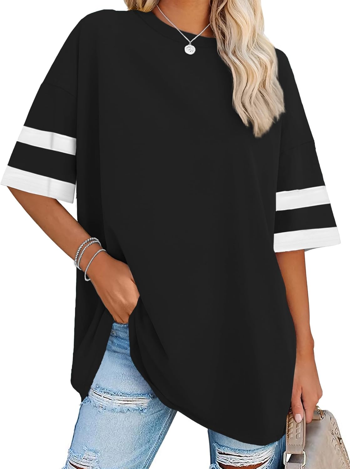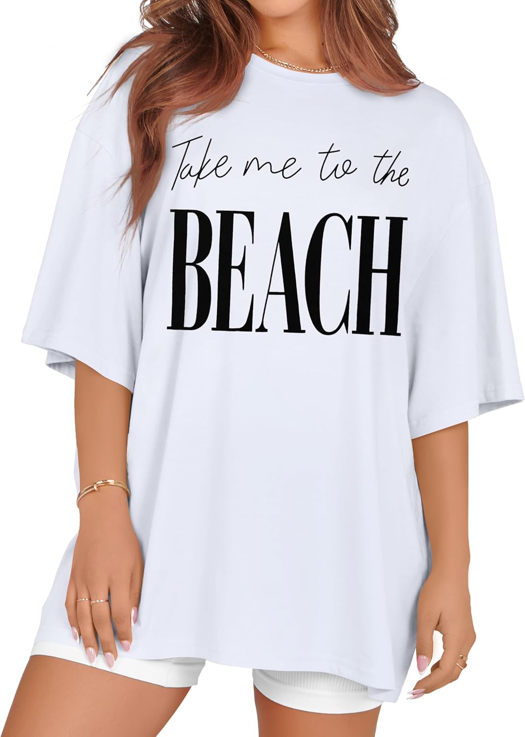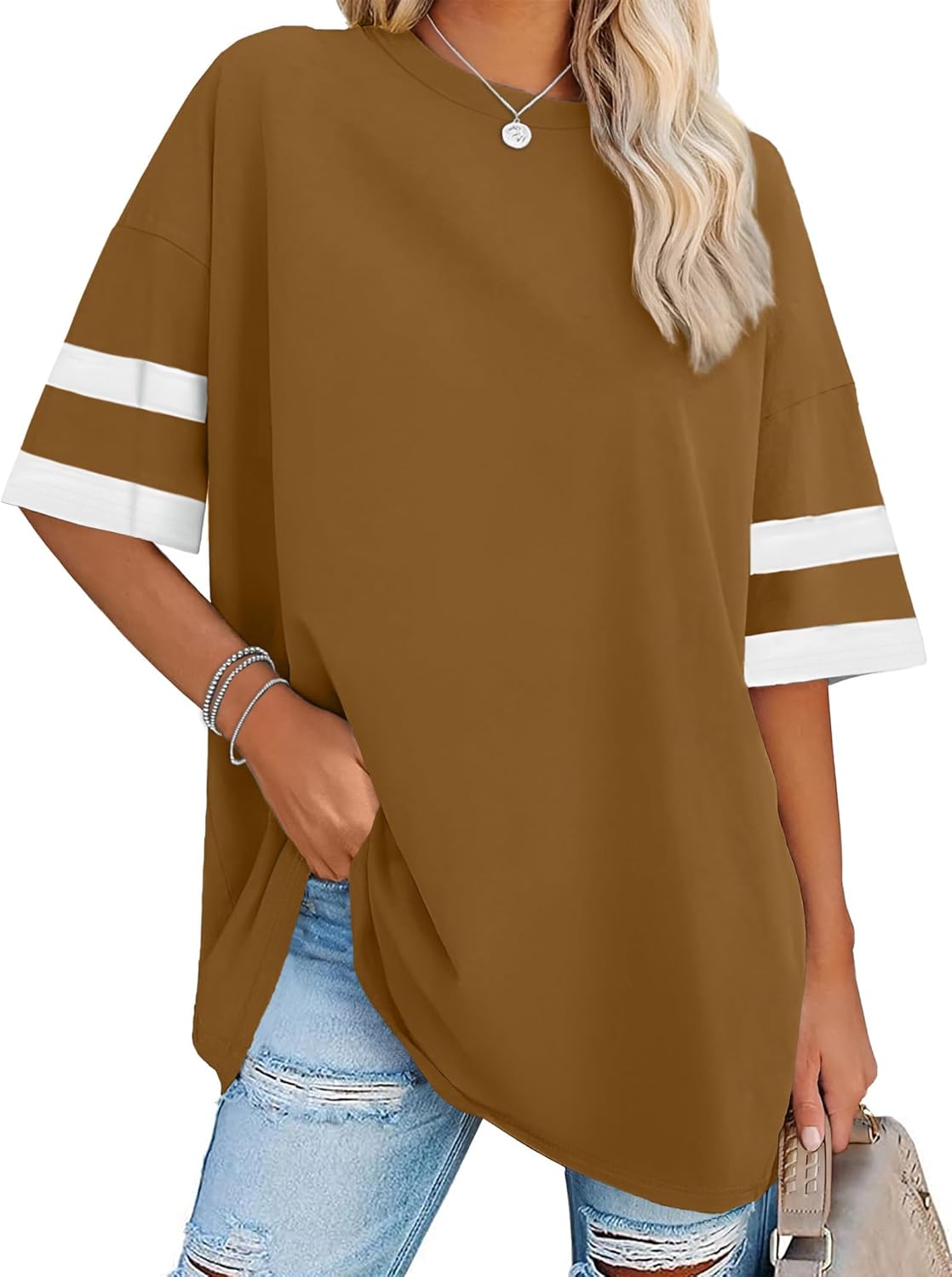 rosemia Oversized Tshirts for Women Summer Short Sleeve Round Neck Graphic Tee Shirt