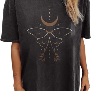 Summer Y2k Tops for Womens, Casual Vintage Short Sleeve T-Shirt, Girls Oversize Loose Round Neck Elastic Tee