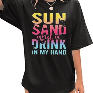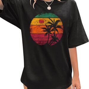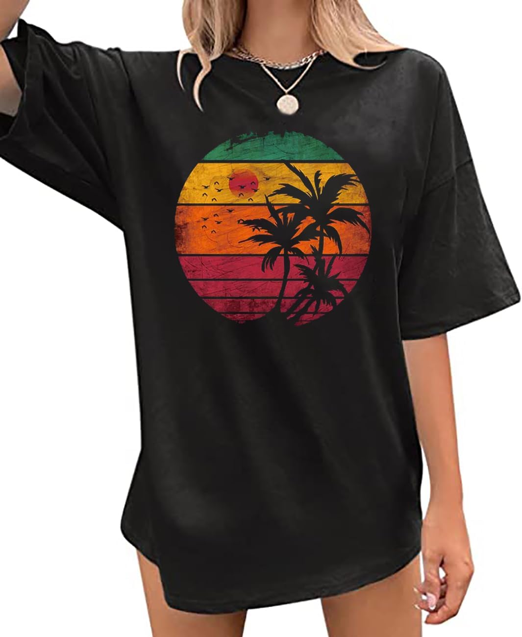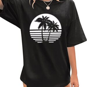 Women’s Oversized Summer Beach Vacation T-Shirt Casual Short Sleeve Loose Fit Tee Tops Beach Coconut Tree Holiday Shirt Blouse