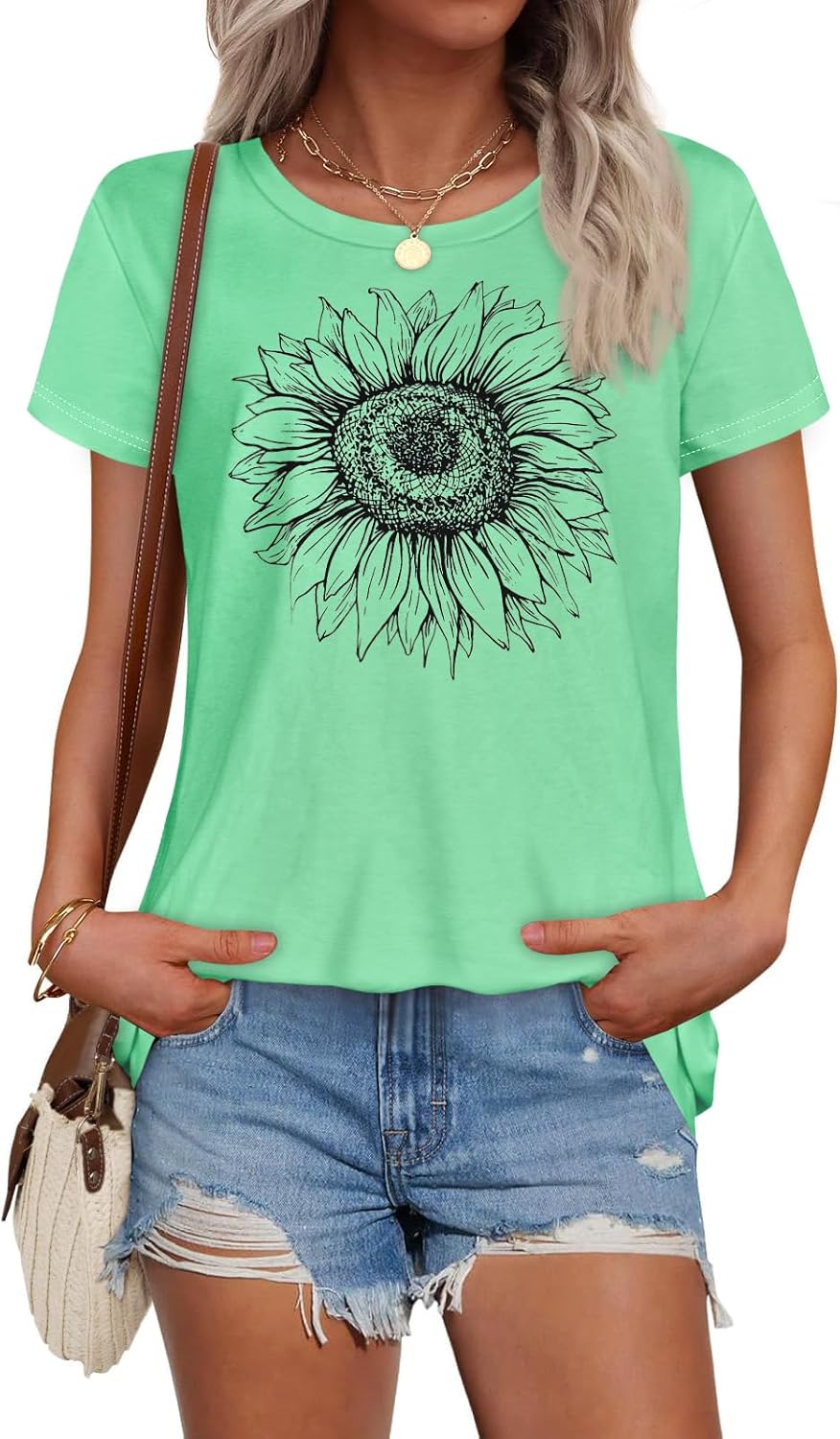 Crewneck Casual Womens Shirts Cute Graphic T Shirts Summer T Shirts for Women