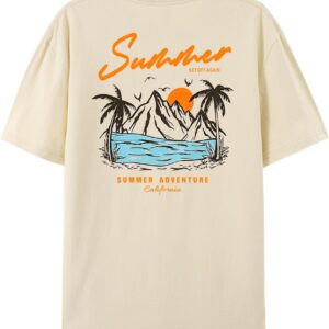 Tuislay Mens Graphic t-Shirts Casual Oversized Letter Print Beach Shirts Baggy Cotton Short Sleeve Tshirt Summer tee Top