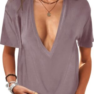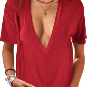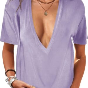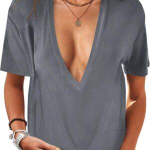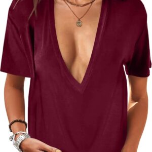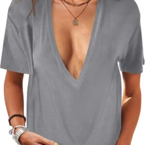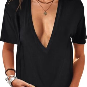 Deep v neck tops, sexy v neck t shirt, low cut shirt, summer tee shirt