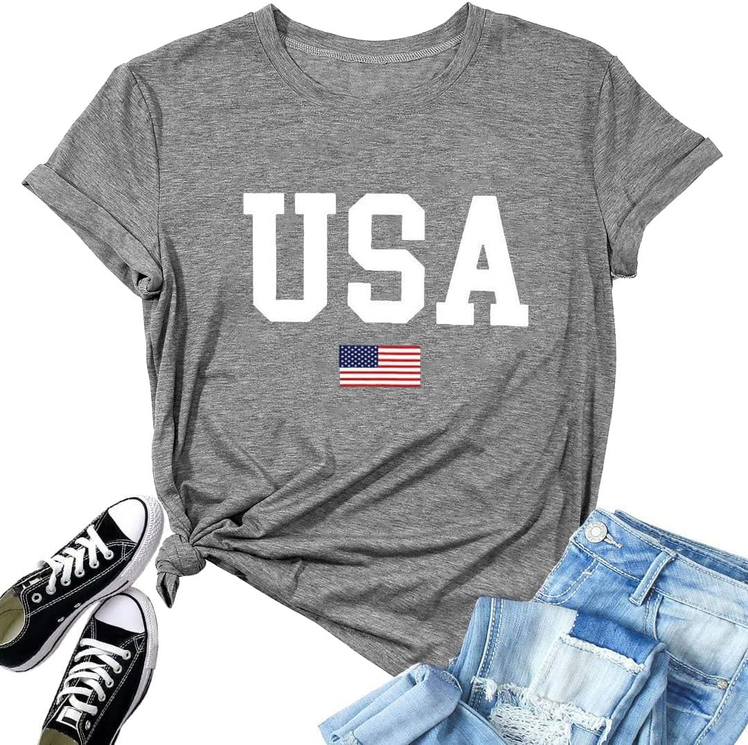 USA Flag Tee Shirt for Women 4th of July Memorial Day Gift T Shirt Casual Short Sleeve American Proud T-Shirt Tops