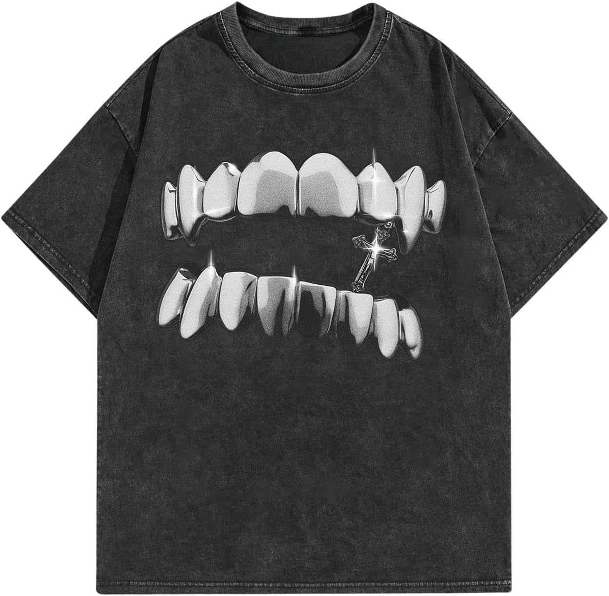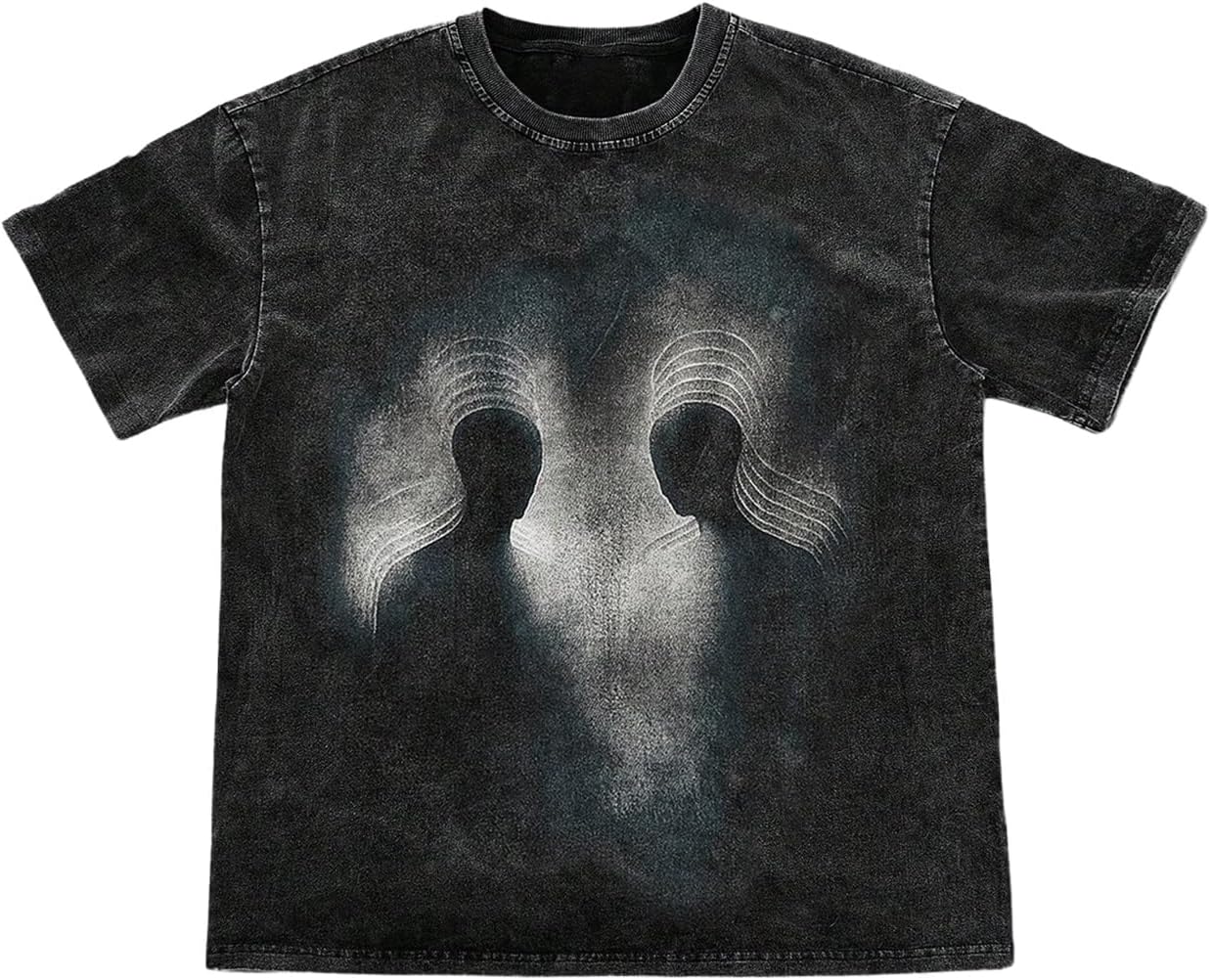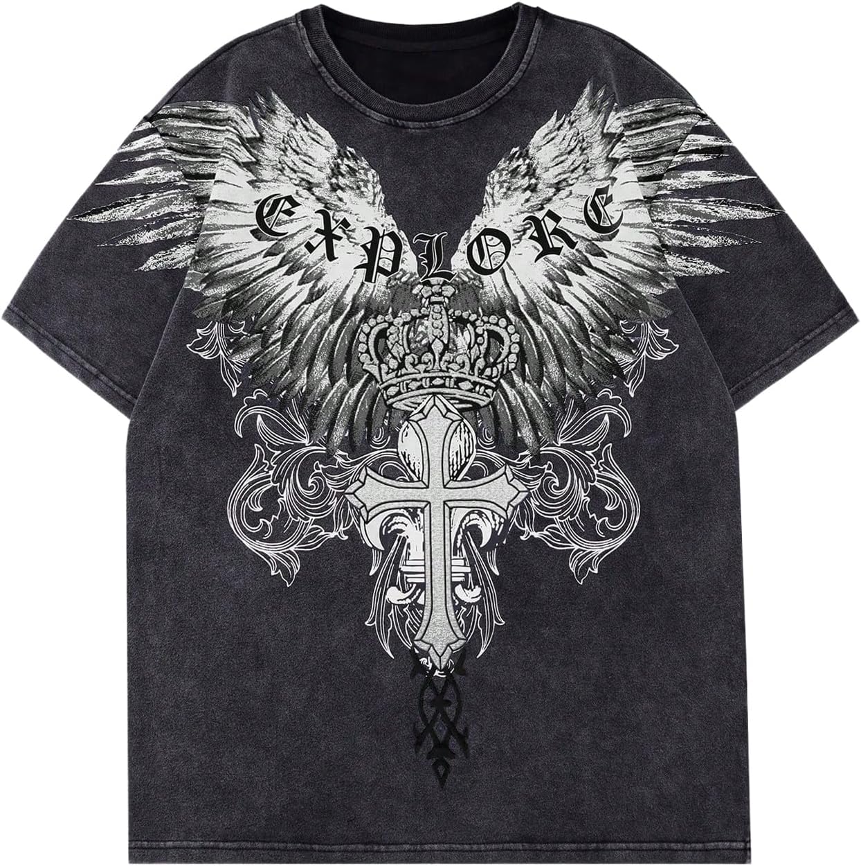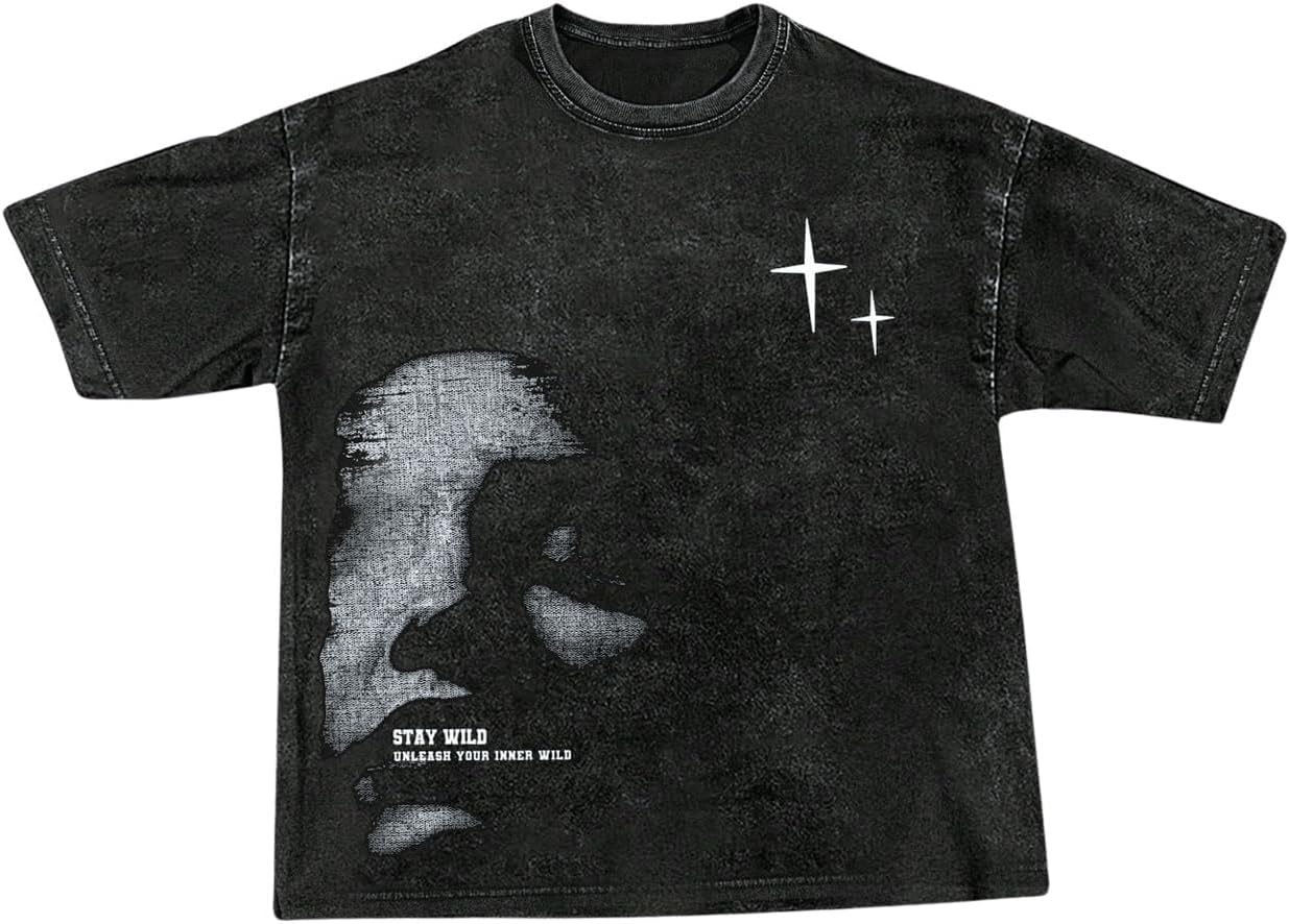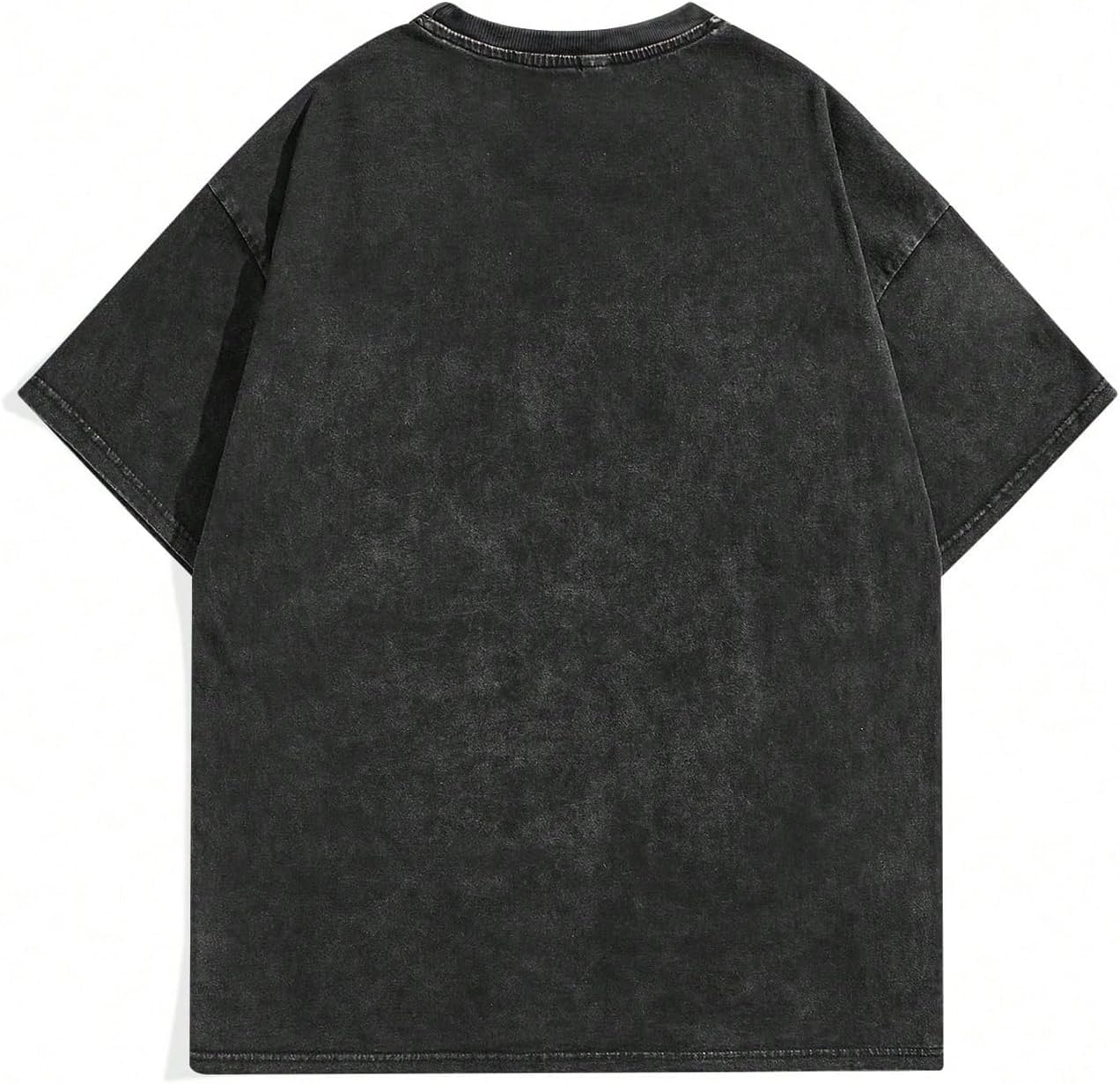 VIPWOLF Men’s Graphic Oversized Short Sleeve Tee Shirt Y2K Vintage Cool Acid Wash Streetwear T-Shirts