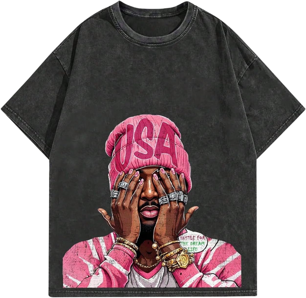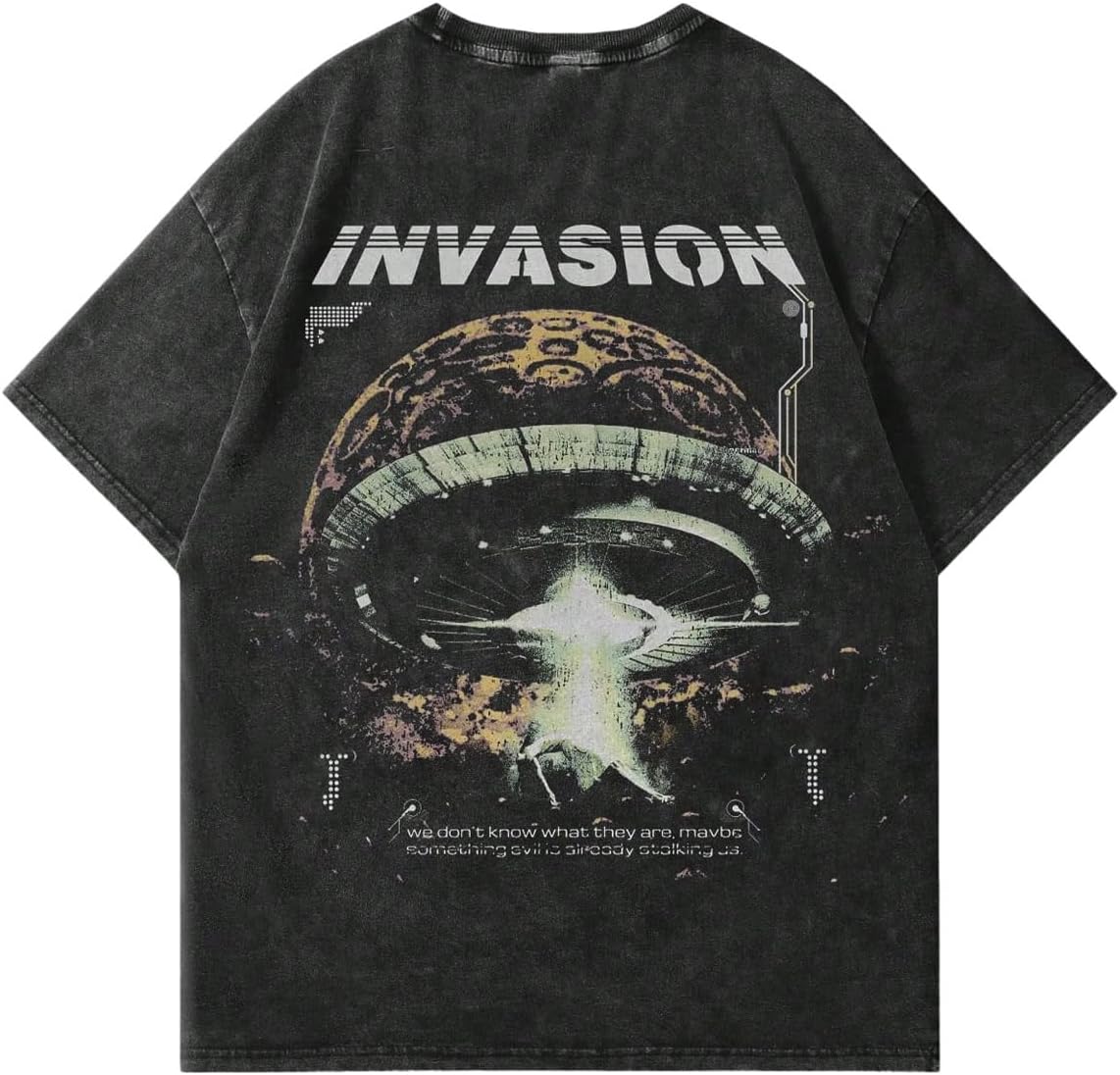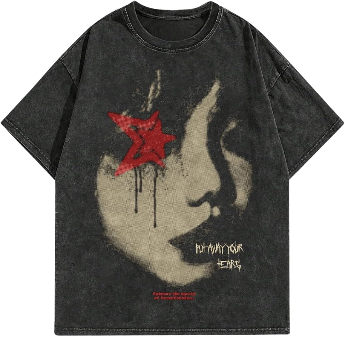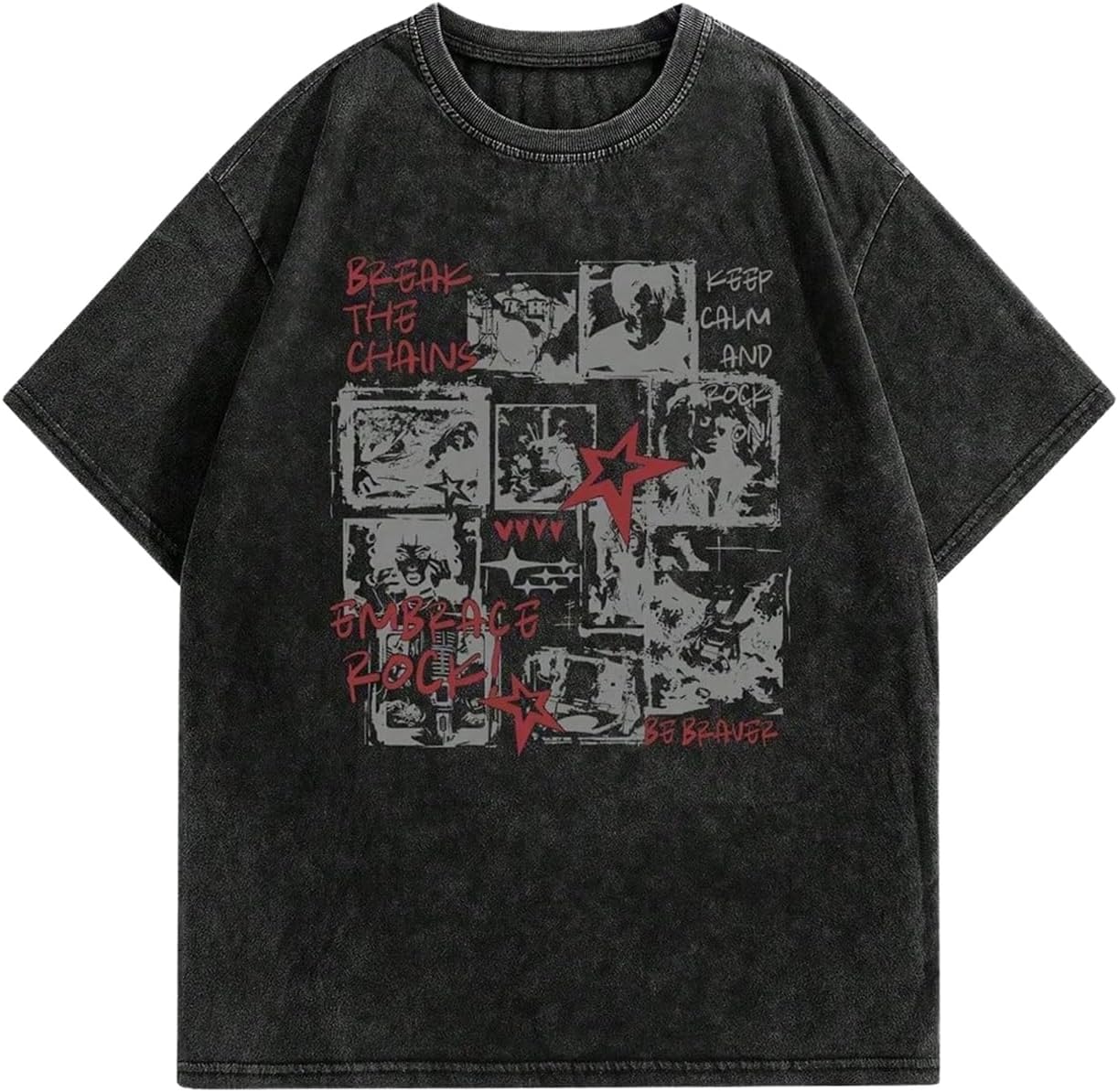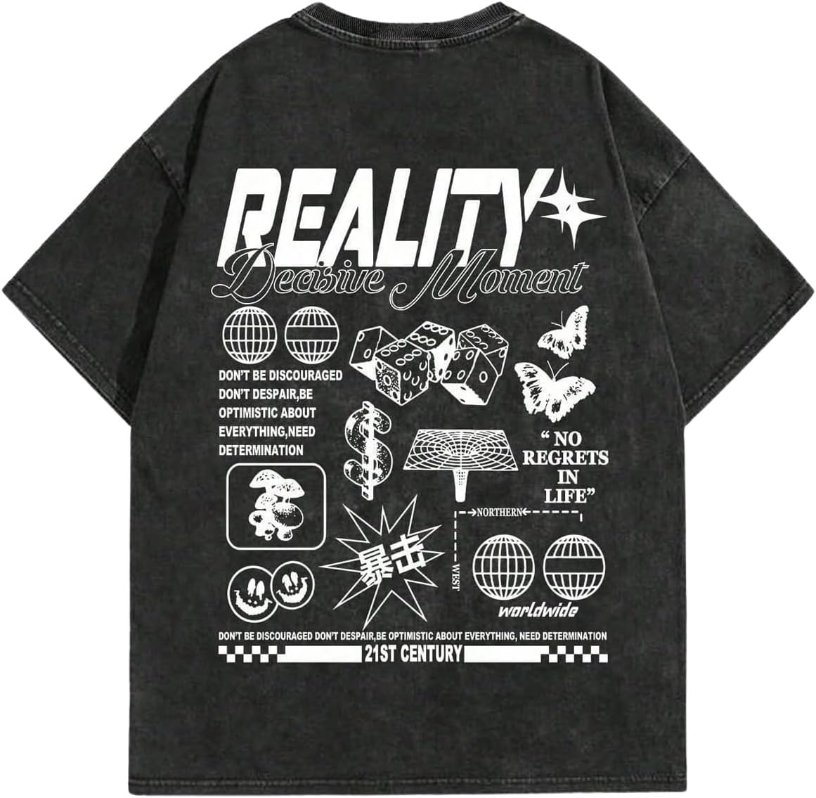 VIPWOLF Men’s Graphic Oversized Short Sleeve Tee Shirt Y2K Vintage Cool Acid Wash Streetwear T-Shirts