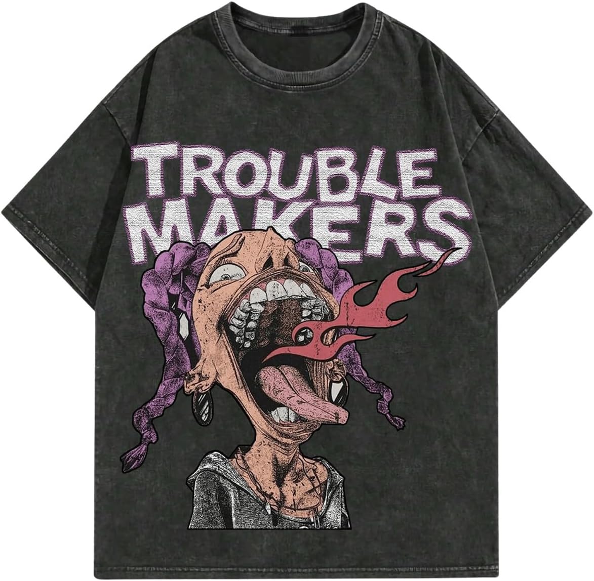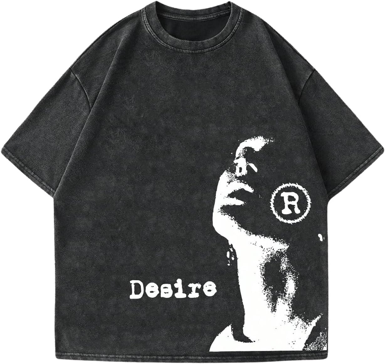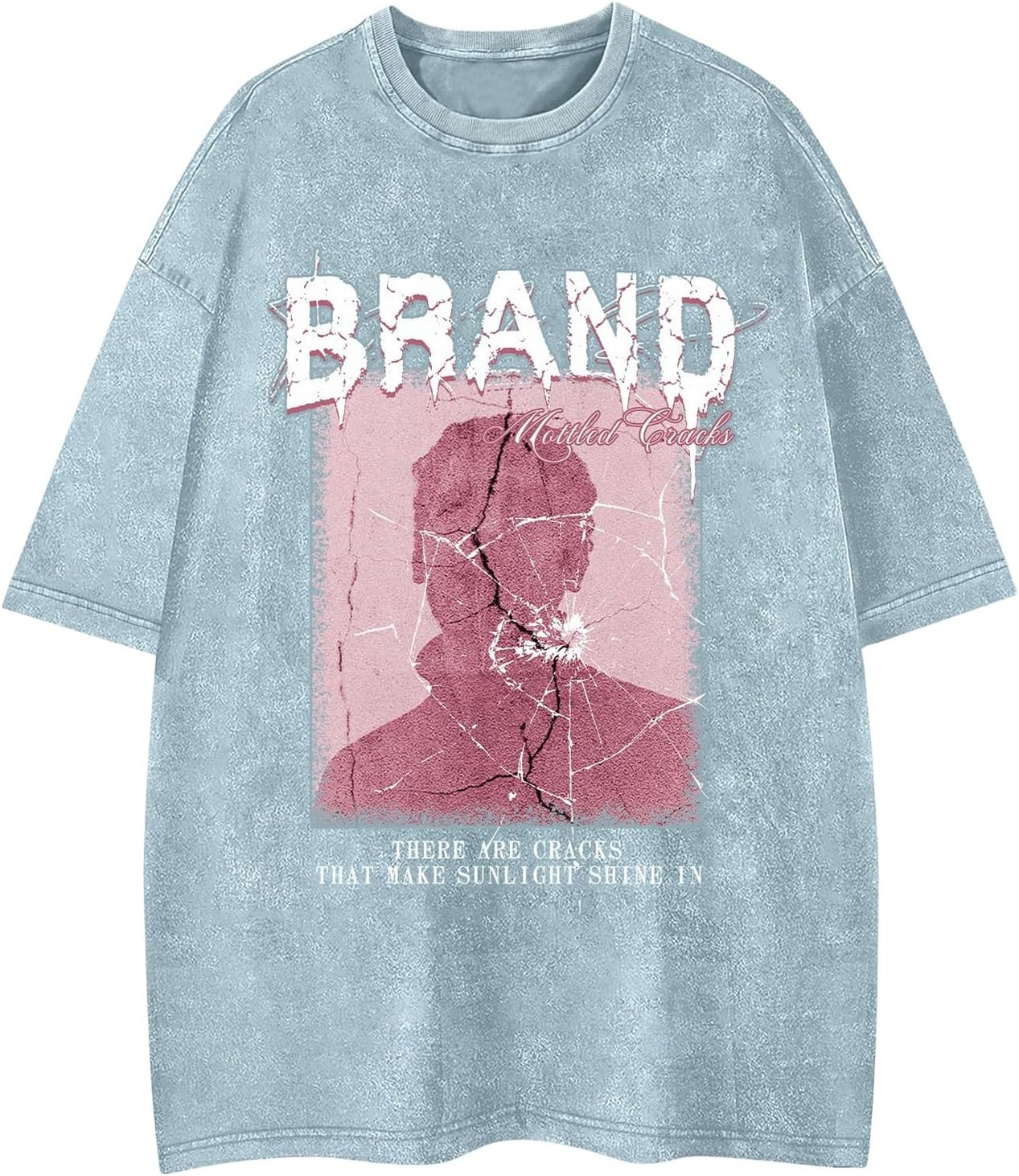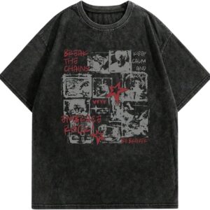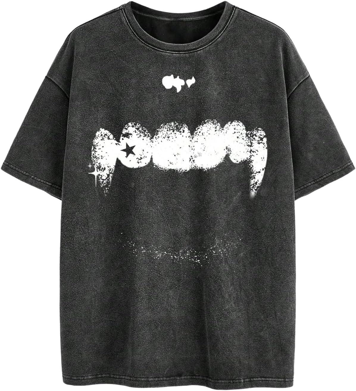 VIPWOLF Men’s Graphic Oversized Short Sleeve Tee Shirt Y2K Vintage Cool Acid Wash Streetwear T-Shirts