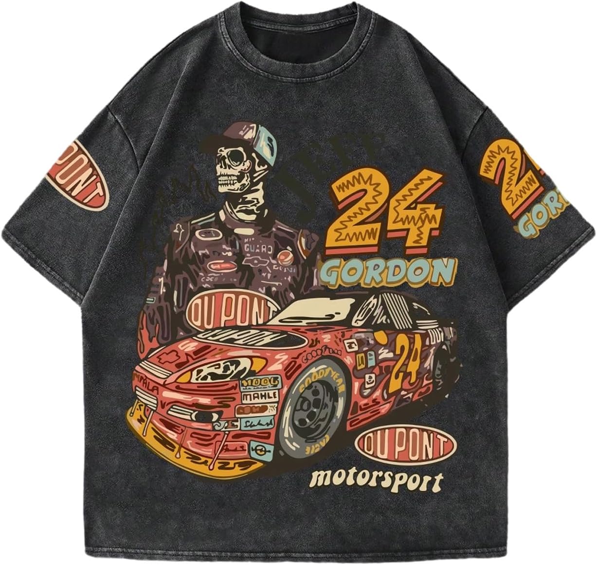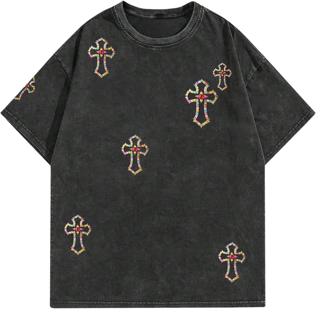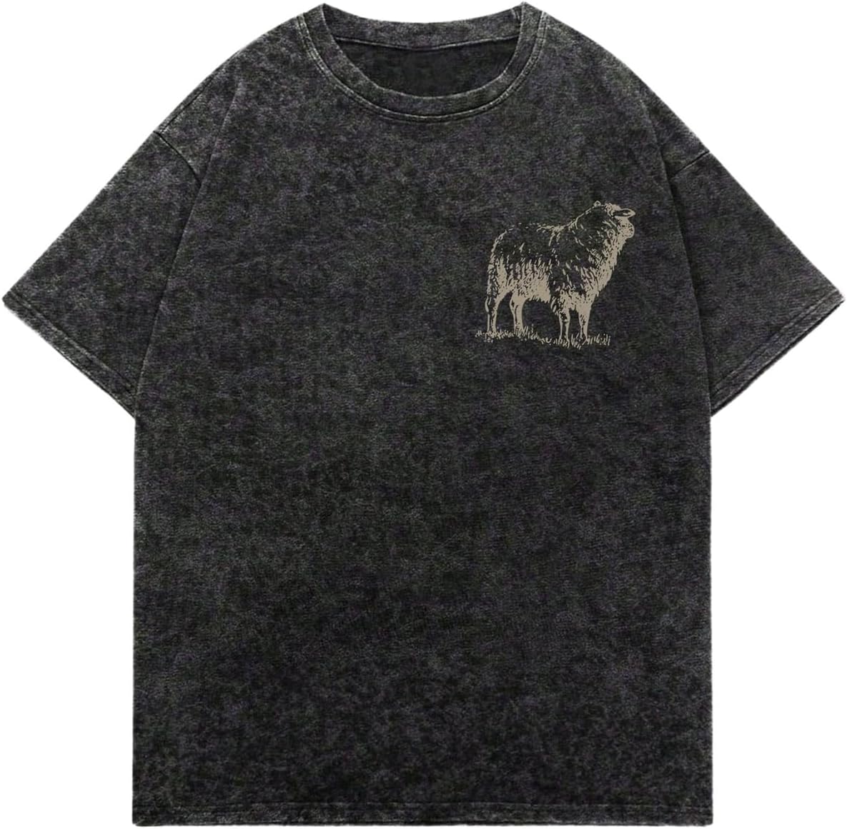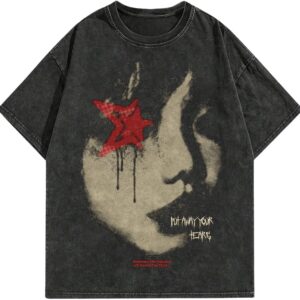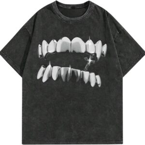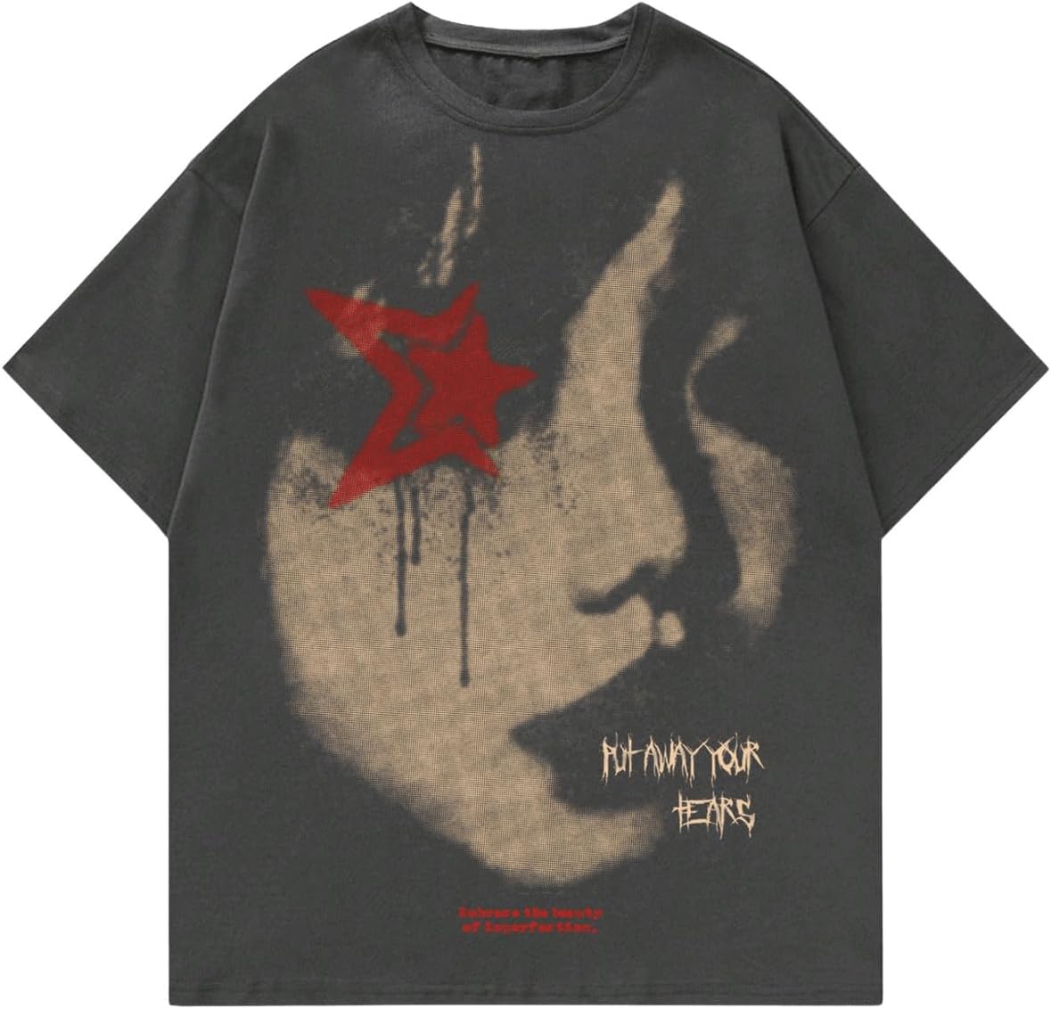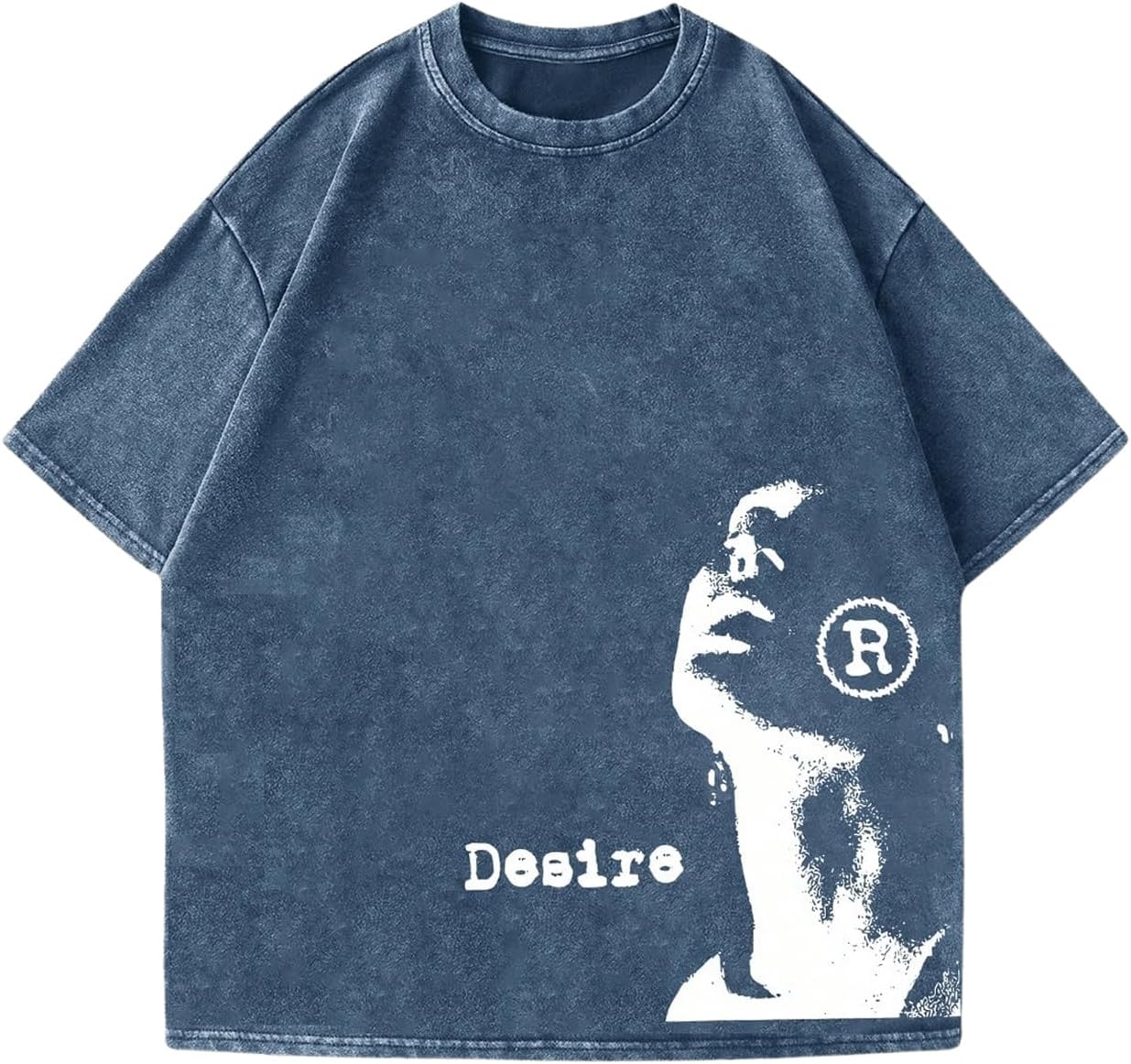 VIPWOLF Men’s Graphic Oversized Short Sleeve Tee Shirt Y2K Vintage Cool Acid Wash Streetwear T-Shirts