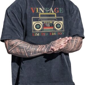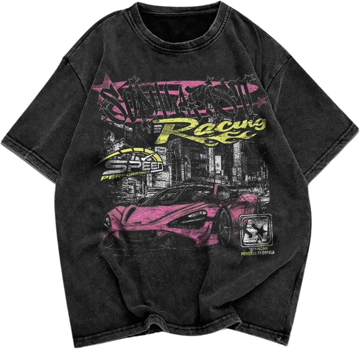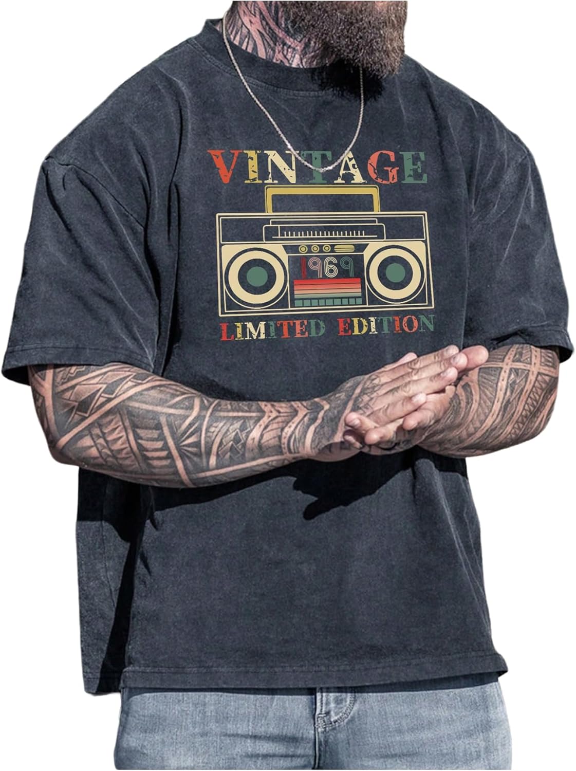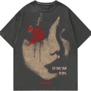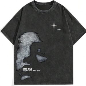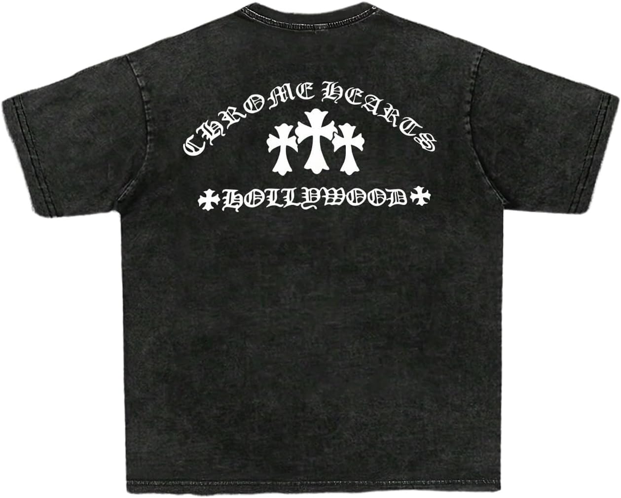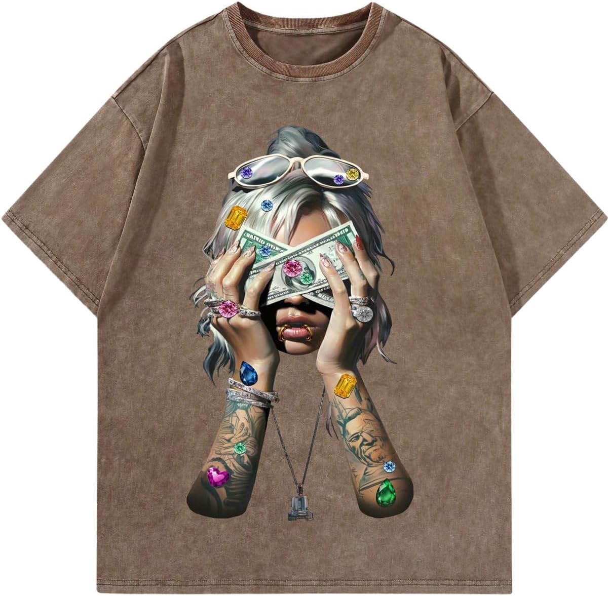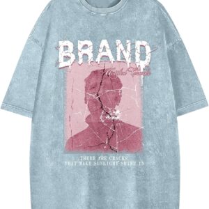 VIPWOLF Men’s Graphic Oversized Short Sleeve Tee Shirt Y2K Vintage Cool Acid Wash Streetwear T-Shirts