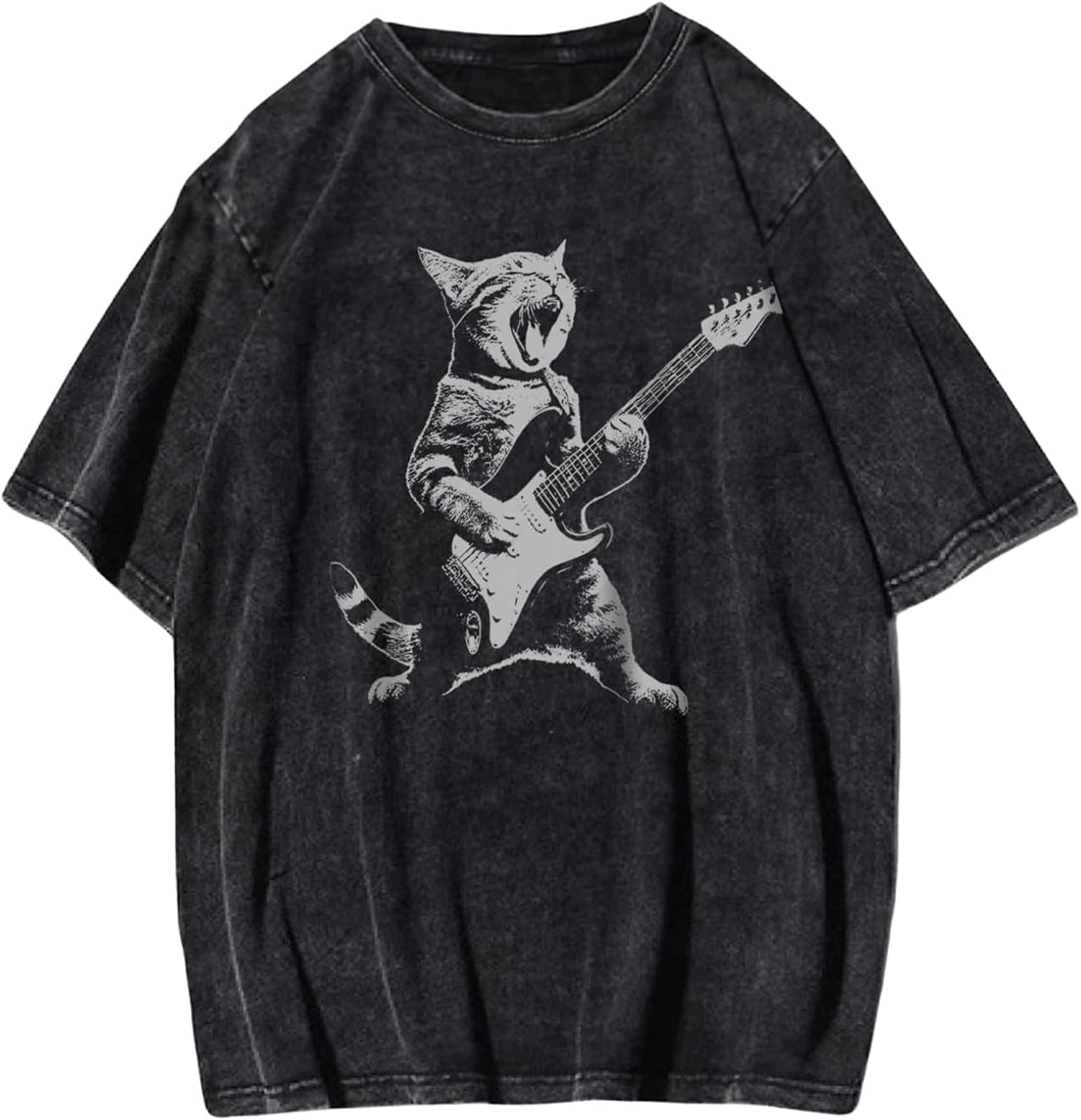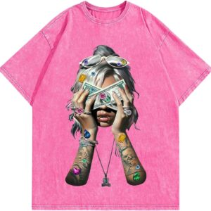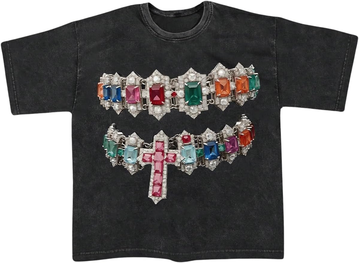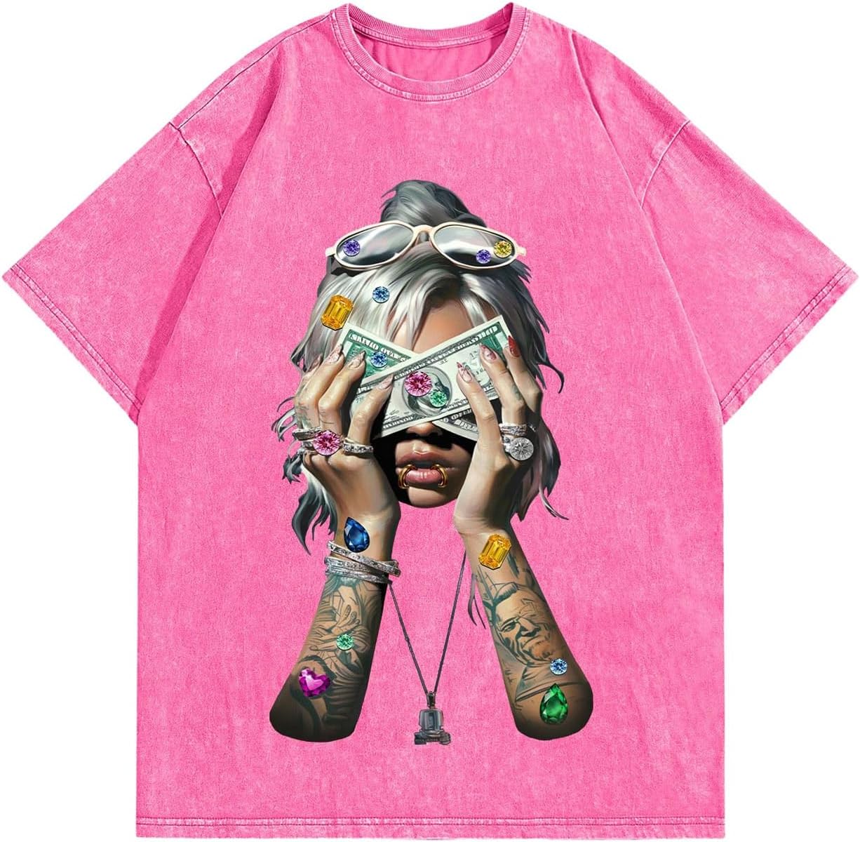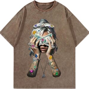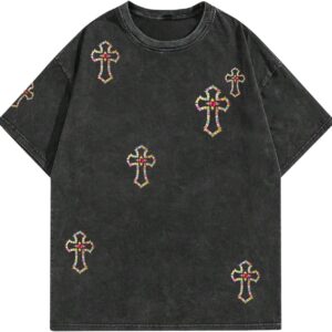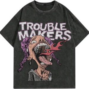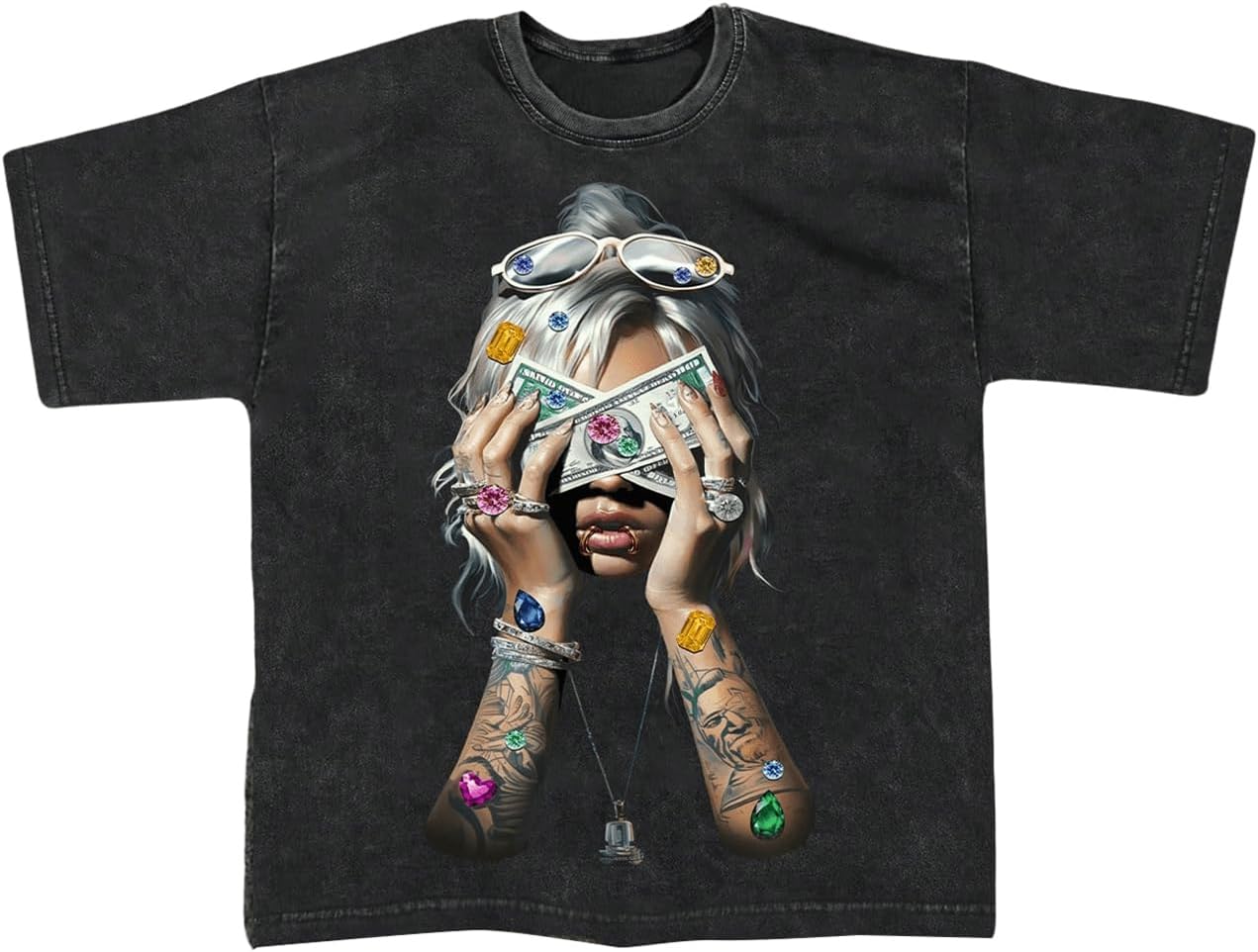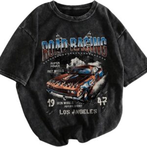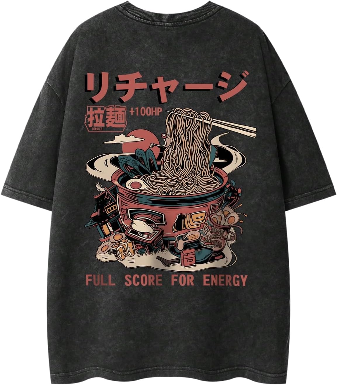 VIPWOLF Men’s Graphic Oversized Short Sleeve Tee Shirt Y2K Vintage Cool Acid Wash Streetwear T-Shirts