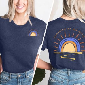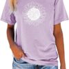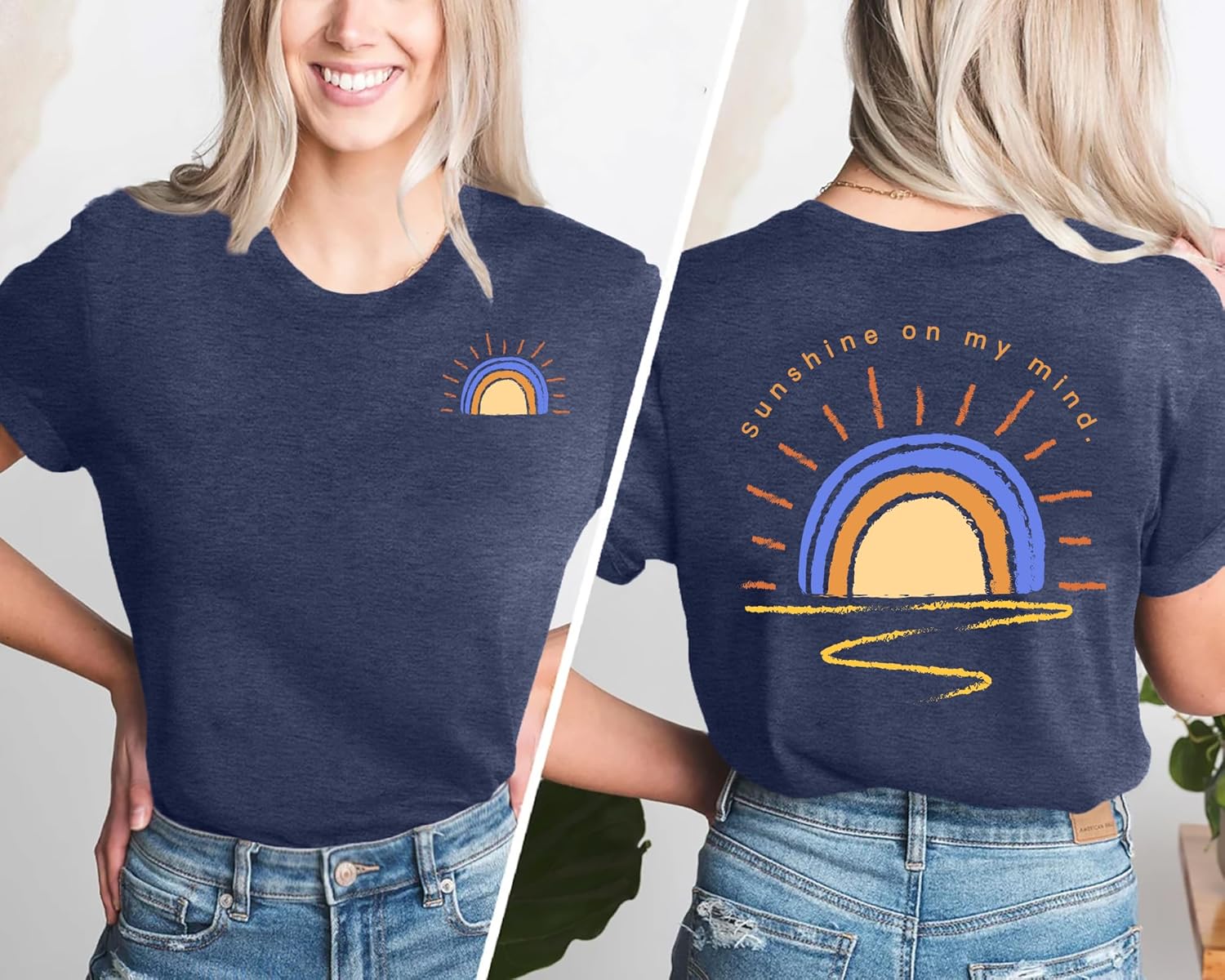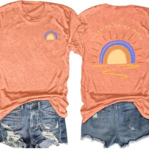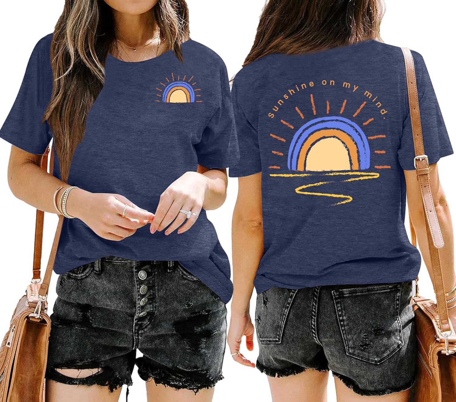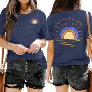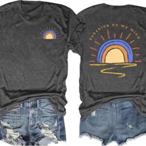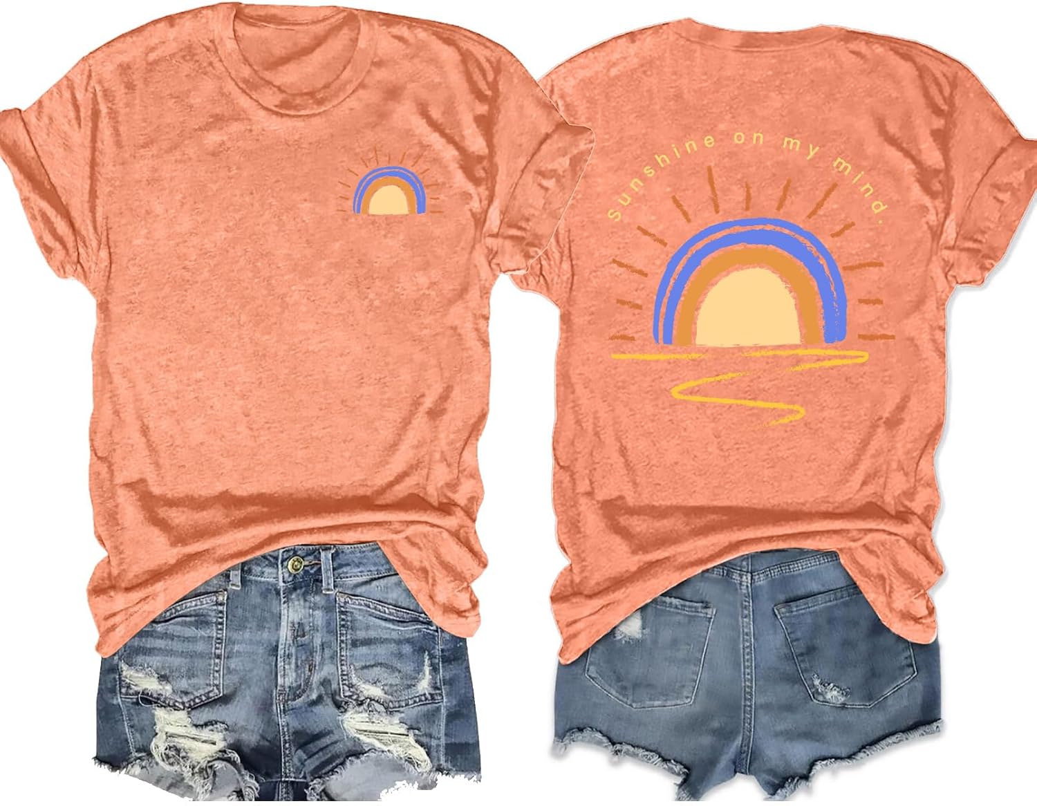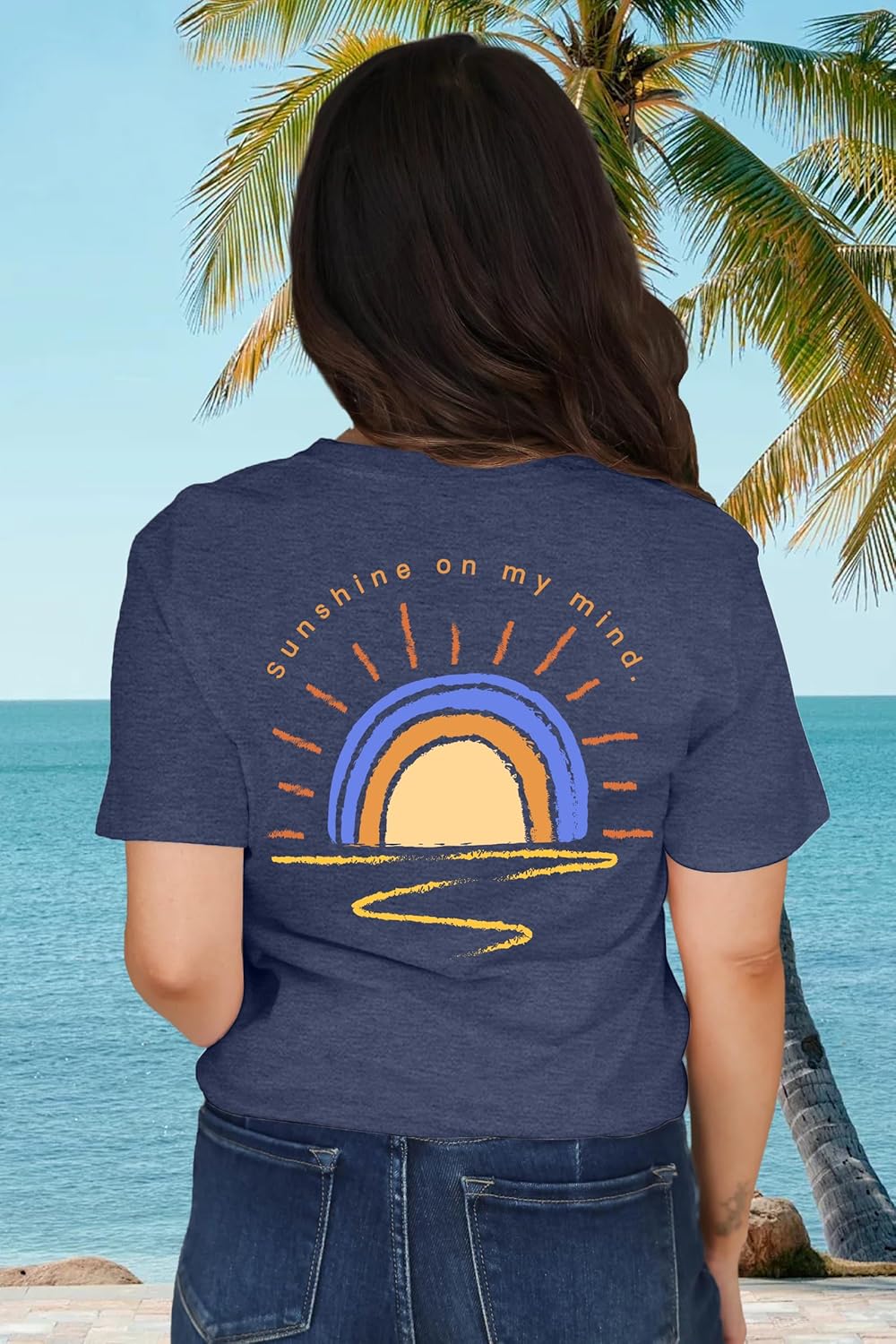 Women Retro Sun Shine on My Mind T-Shirt Summer Sunset Sunrise Shirts Hawaiian Beach T Shirt Vintage Sunrise Tshirt Vacation Casual Short Sleeve Tops