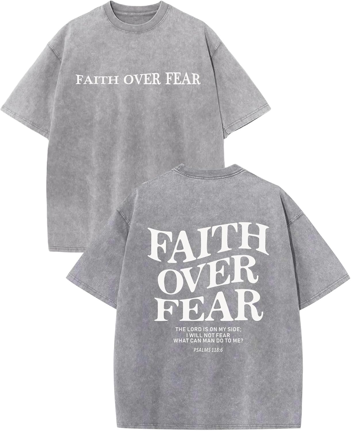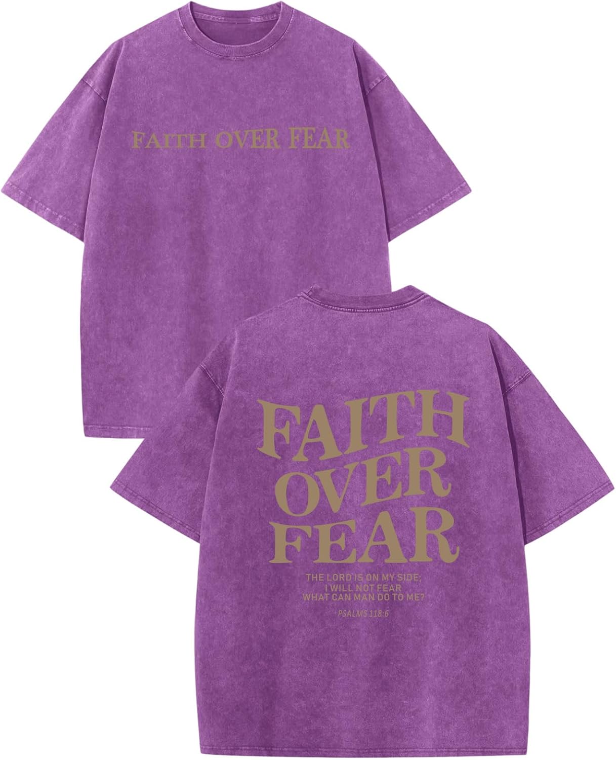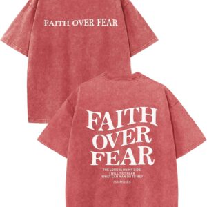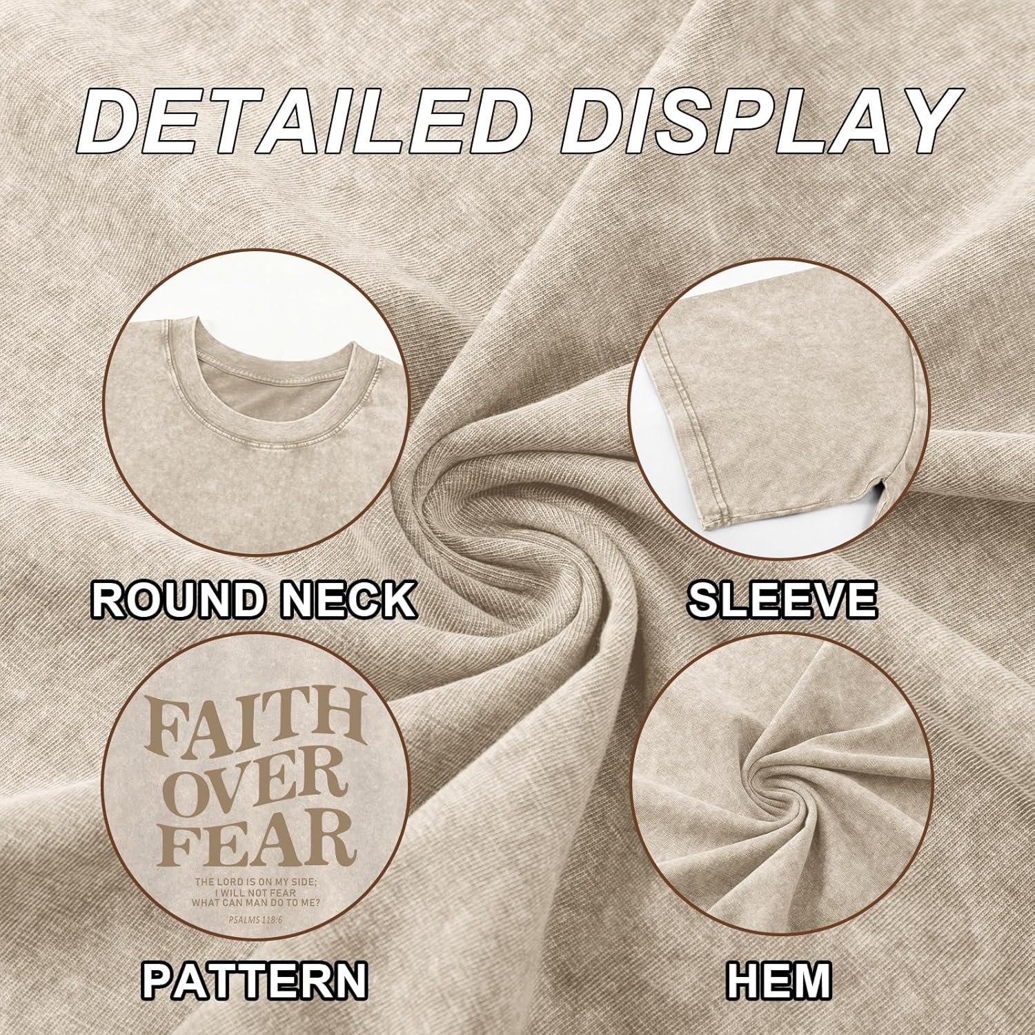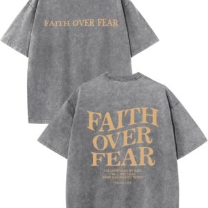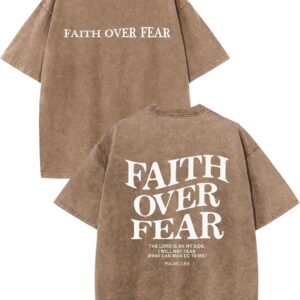 Weetiotio Christian Faith Over Fear Shirt for Men Jesus Religious Shirts Oversized Graphic Tees Acid Wash God