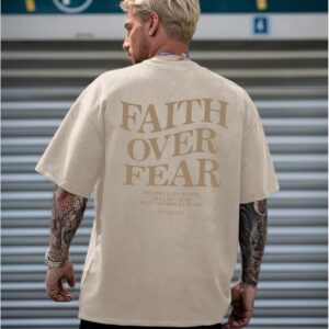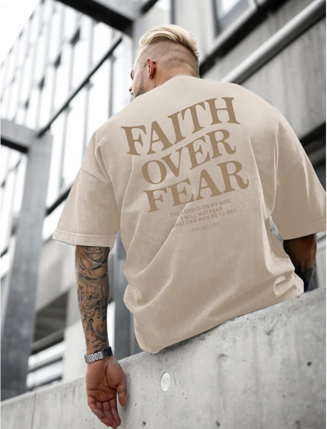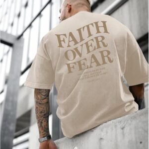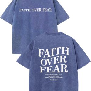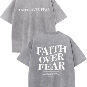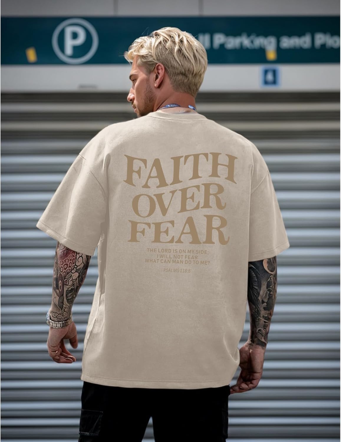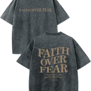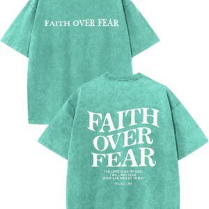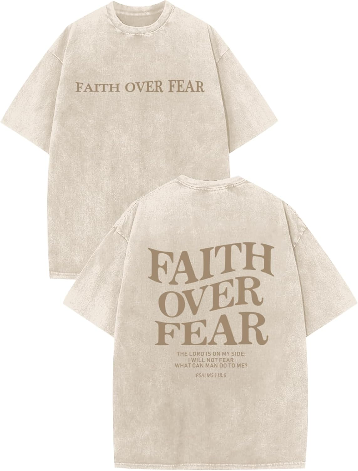 Weetiotio Christian Faith Over Fear Shirt for Men Jesus Religious Shirts Oversized Graphic Tees Acid Wash God