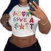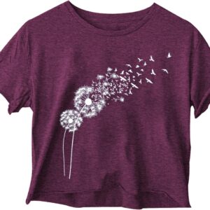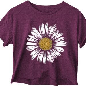 Woffccrd Womens Crop Tops Short Sleeve Wildflower Printed T-Shirts Crew Neck Summer Graphic Tee Tops