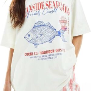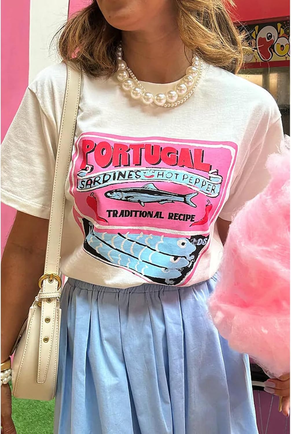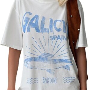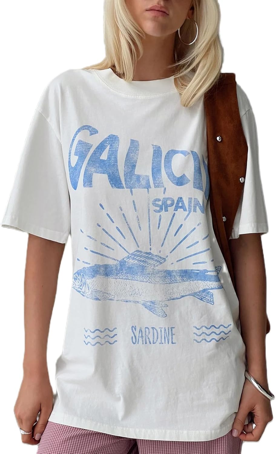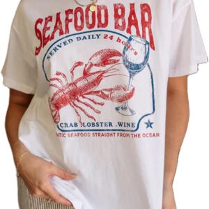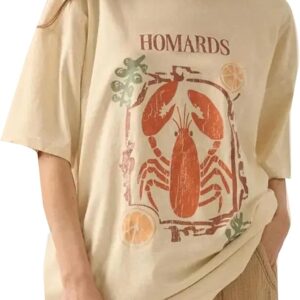Women Cute Graphic Oversized Tees Fish Lobster Printed Y2K Baggy T Shirts Teen Girls Preppy Vintage Aesthetic Summer Tops