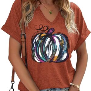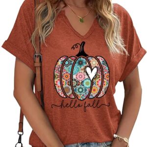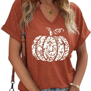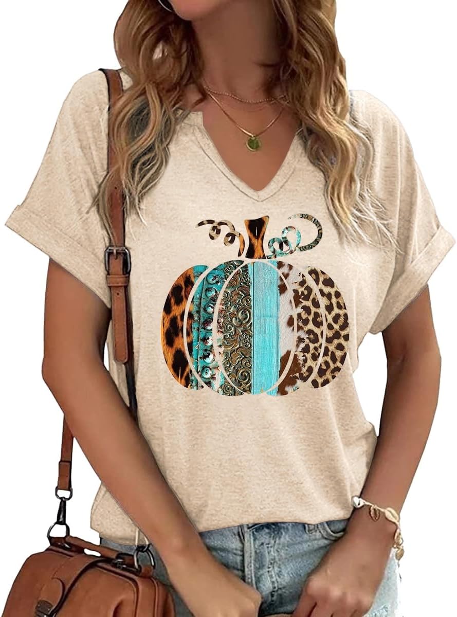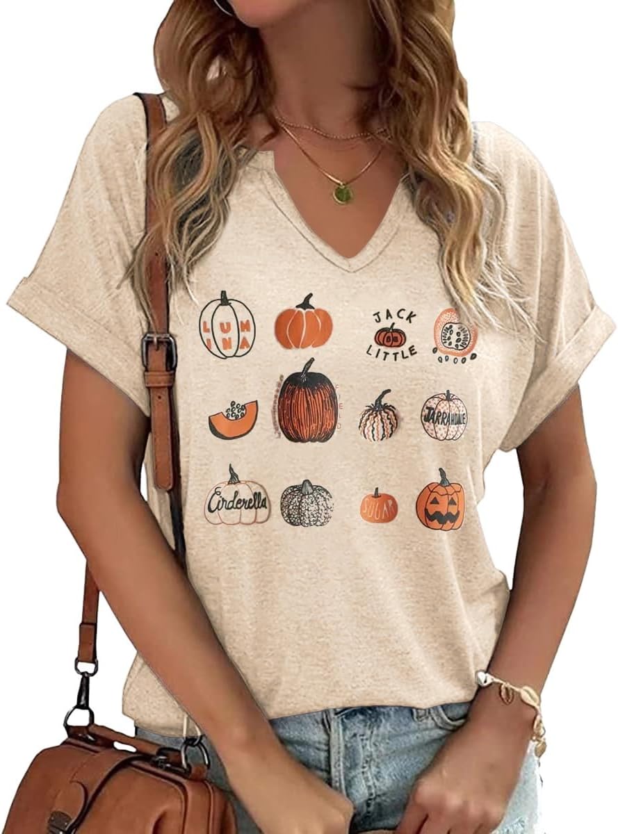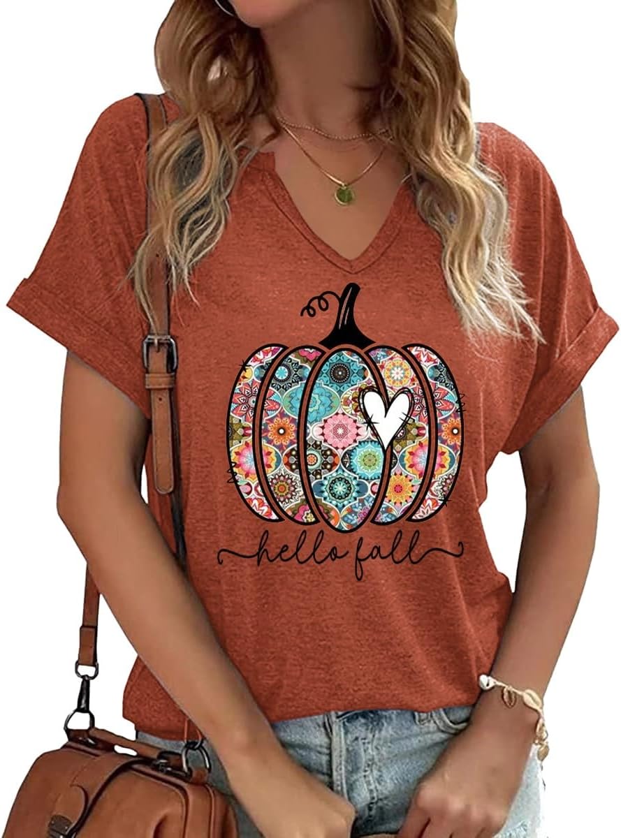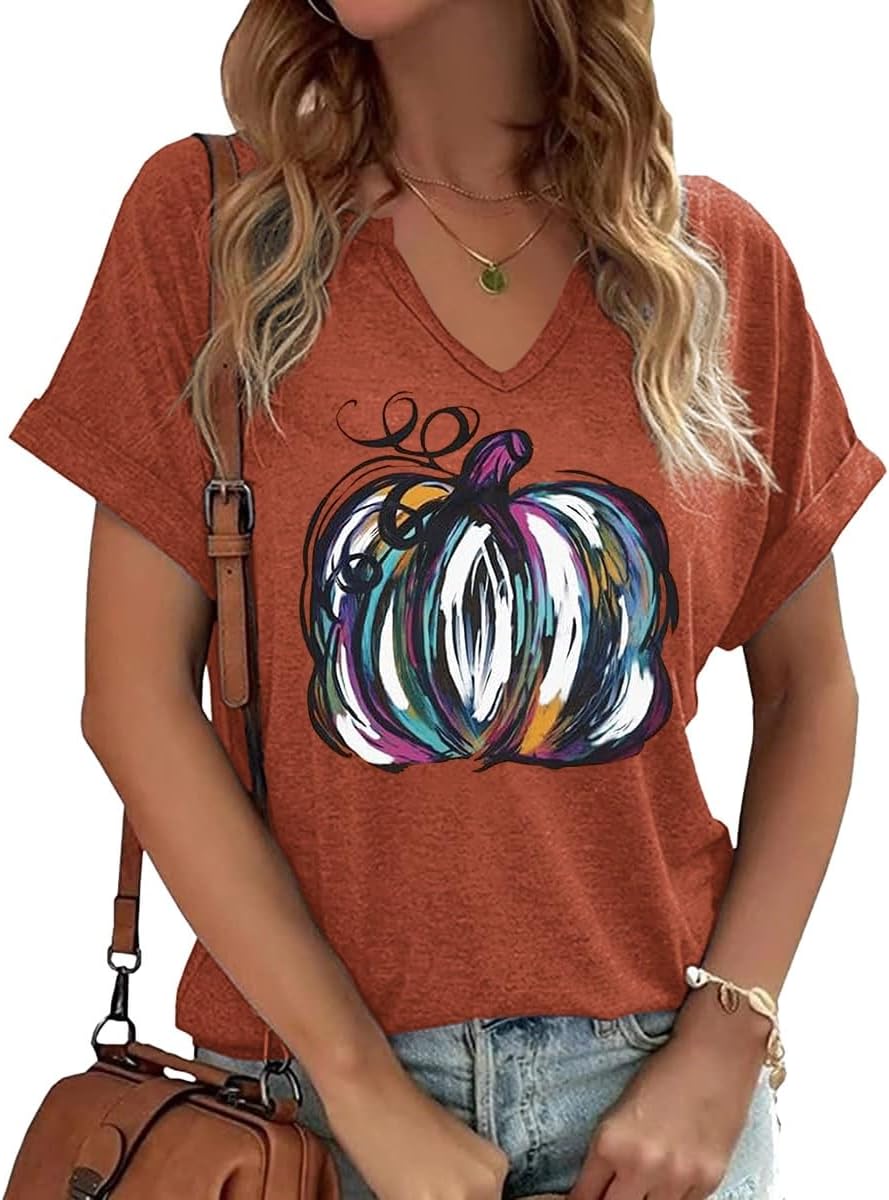 Fall Pumpkin Graphic V Neck Tee Tops
