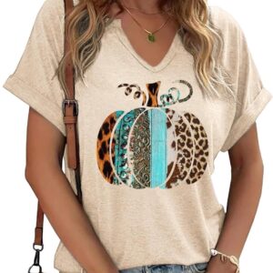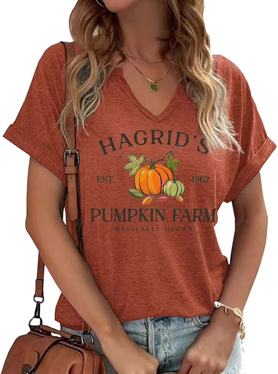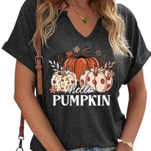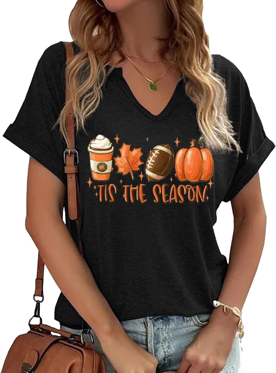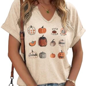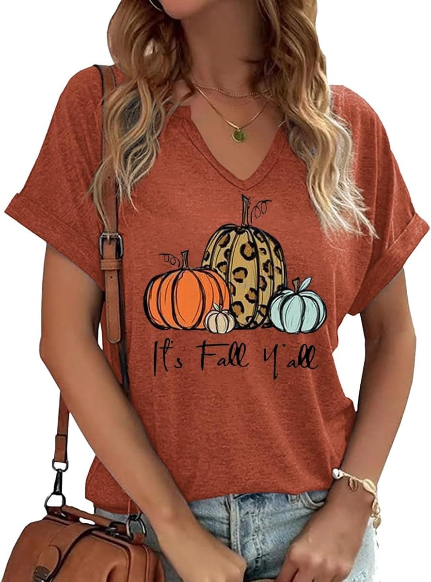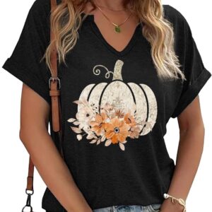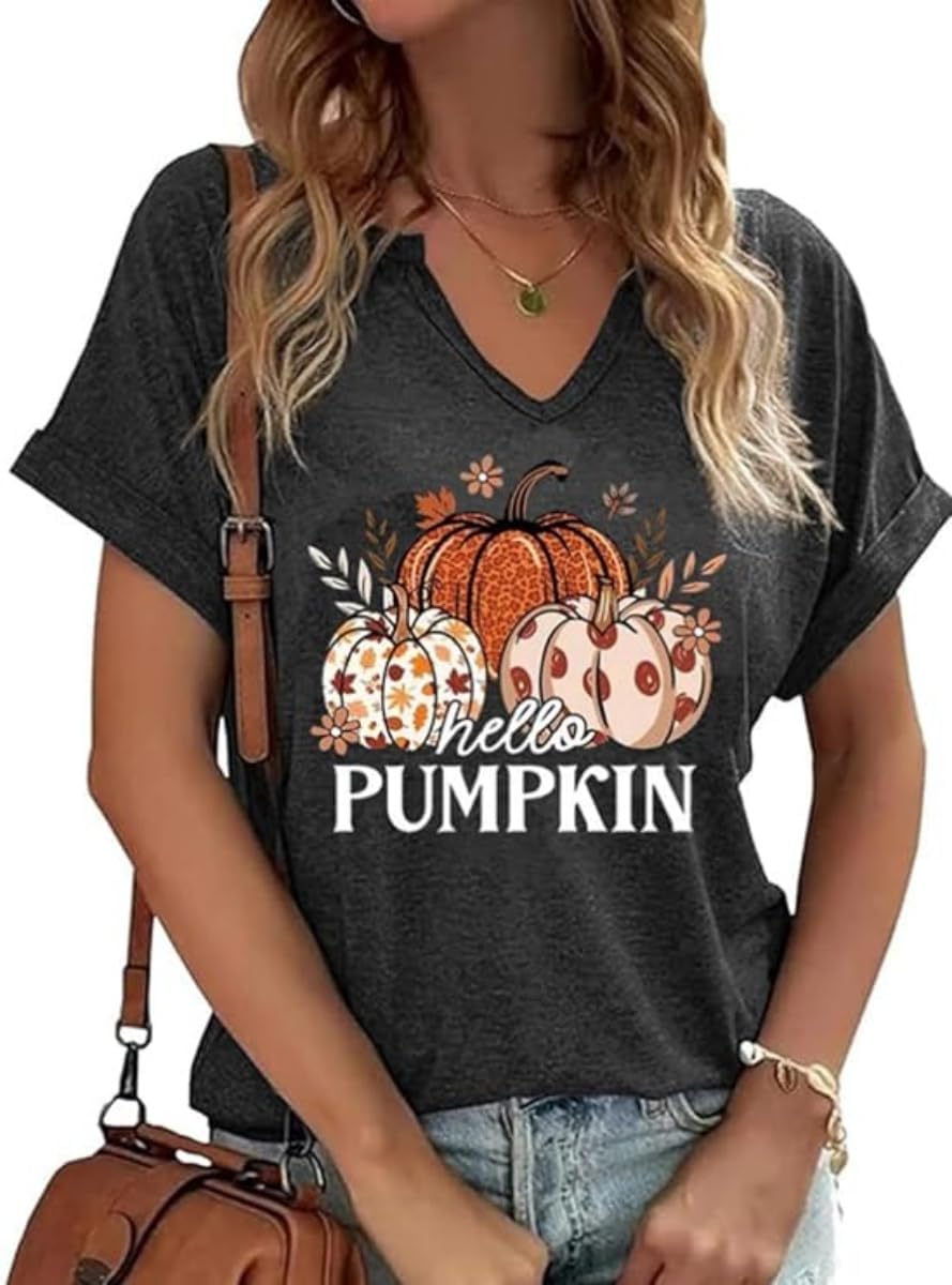 Fall Pumpkin Graphic V Neck Tee Tops