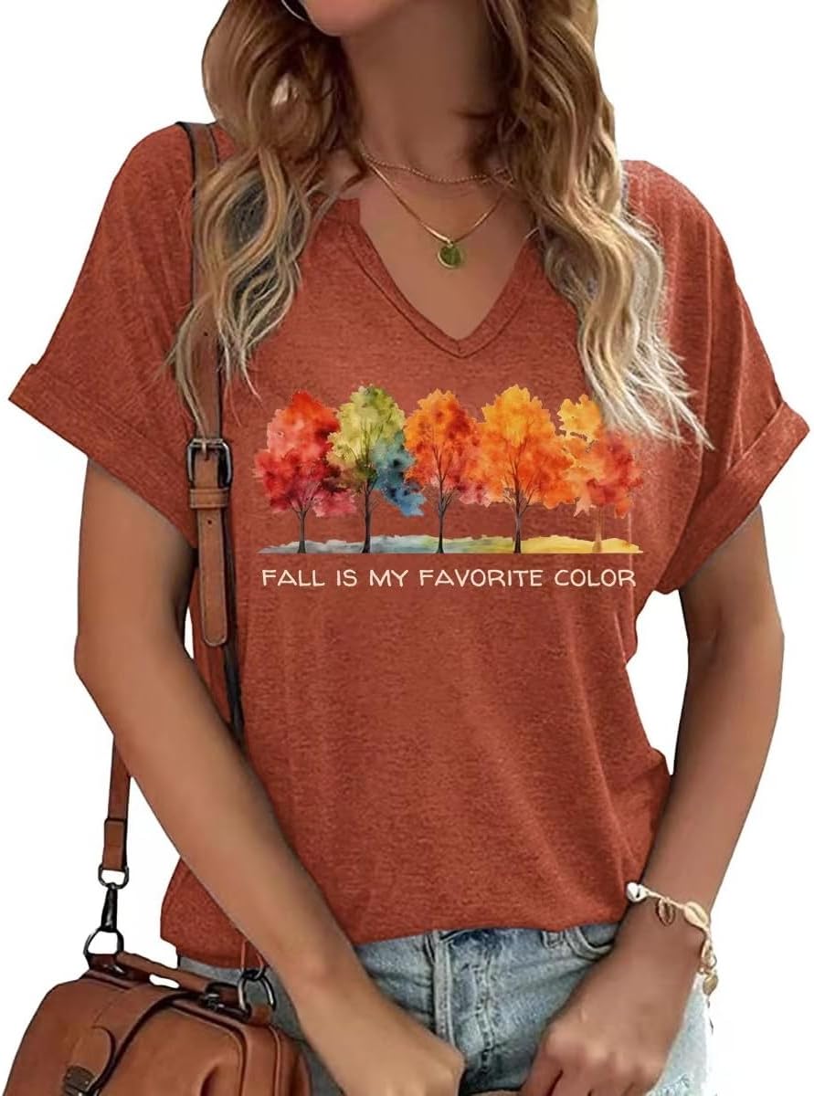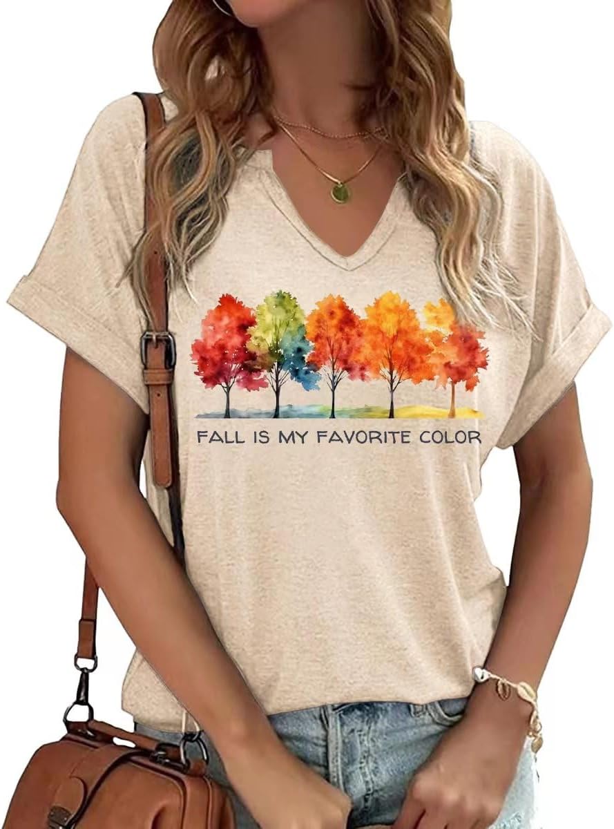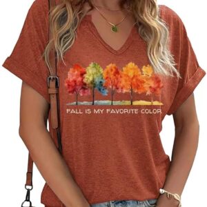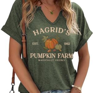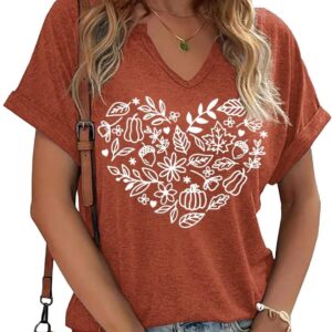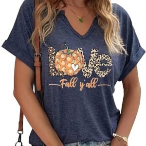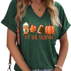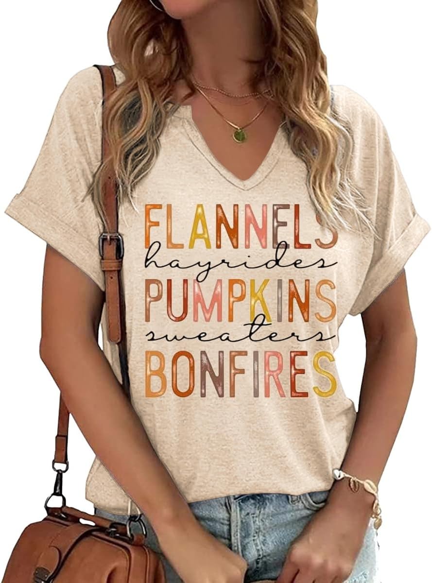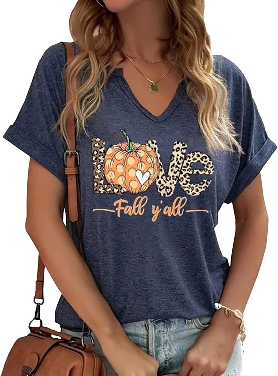 Fall Pumpkin Graphic V Neck Tee Tops