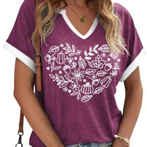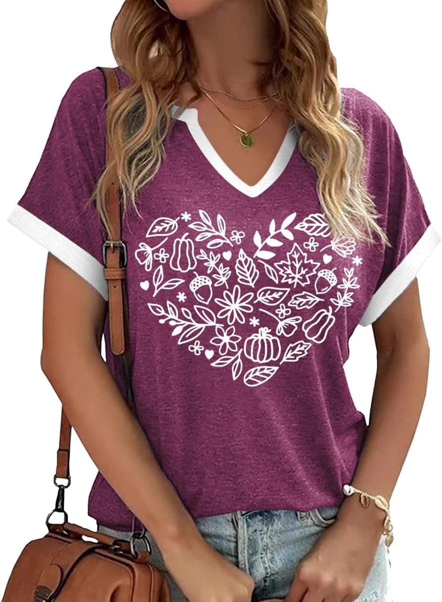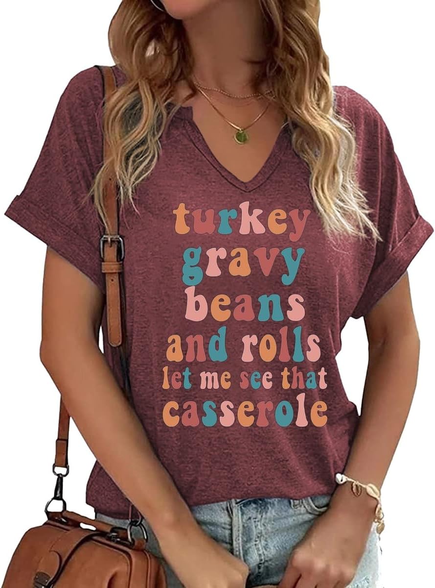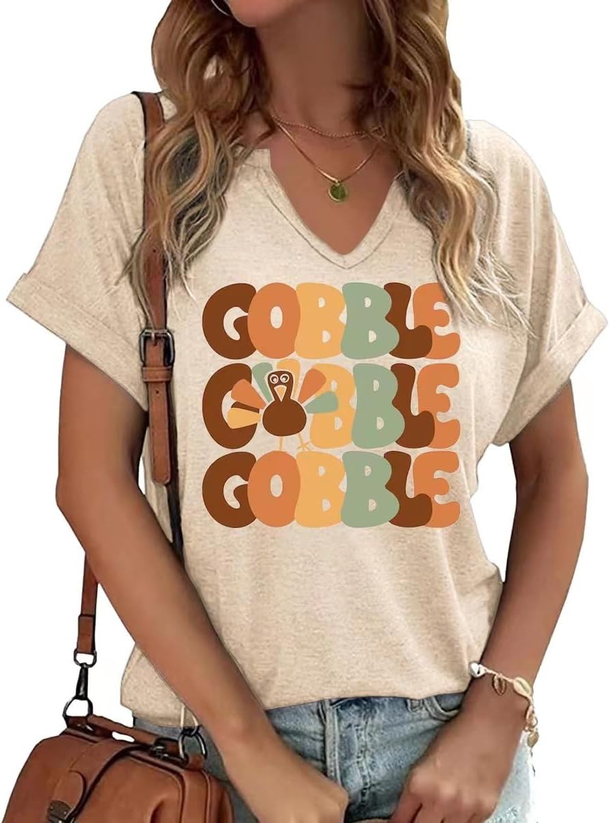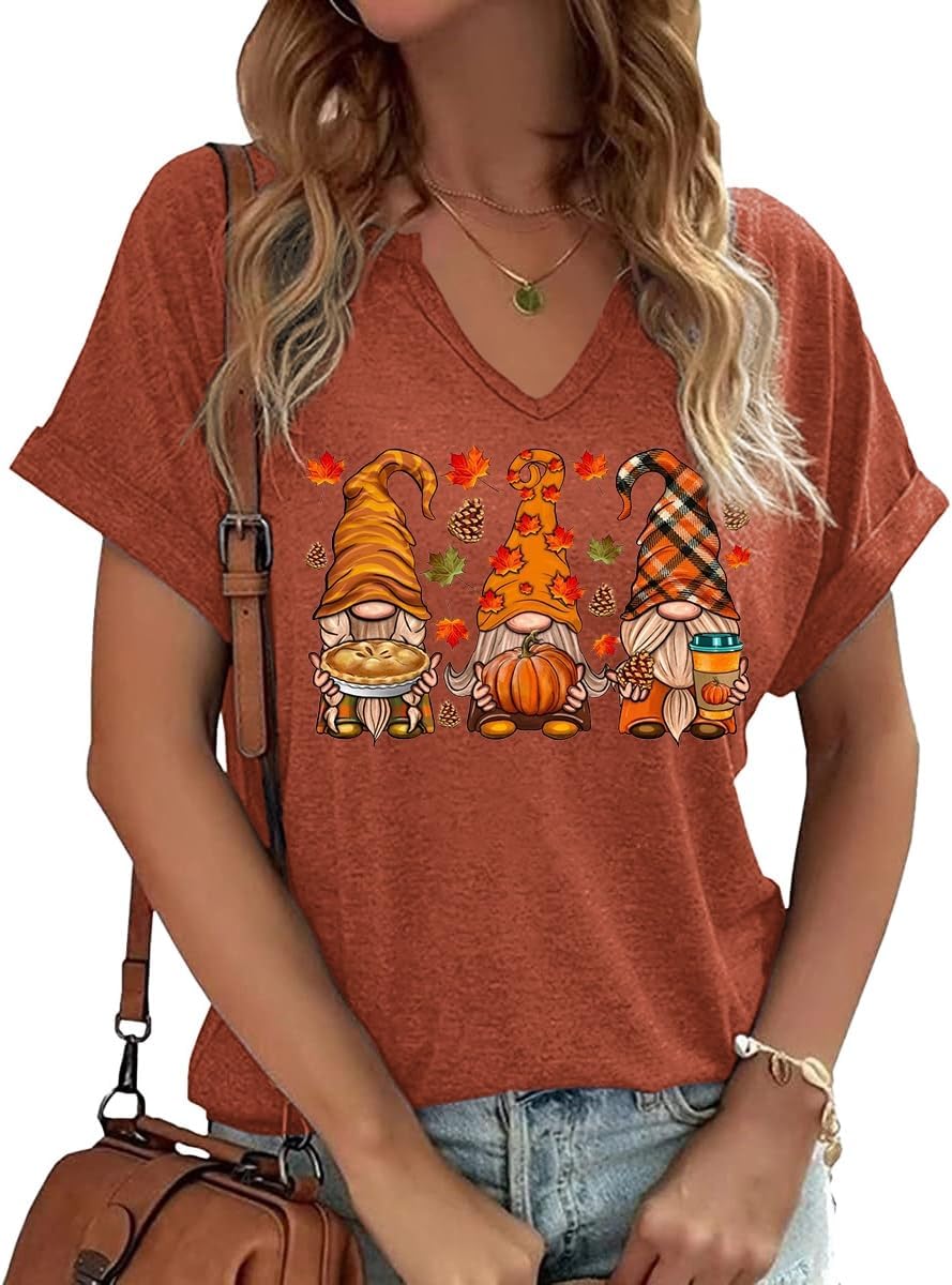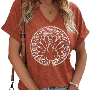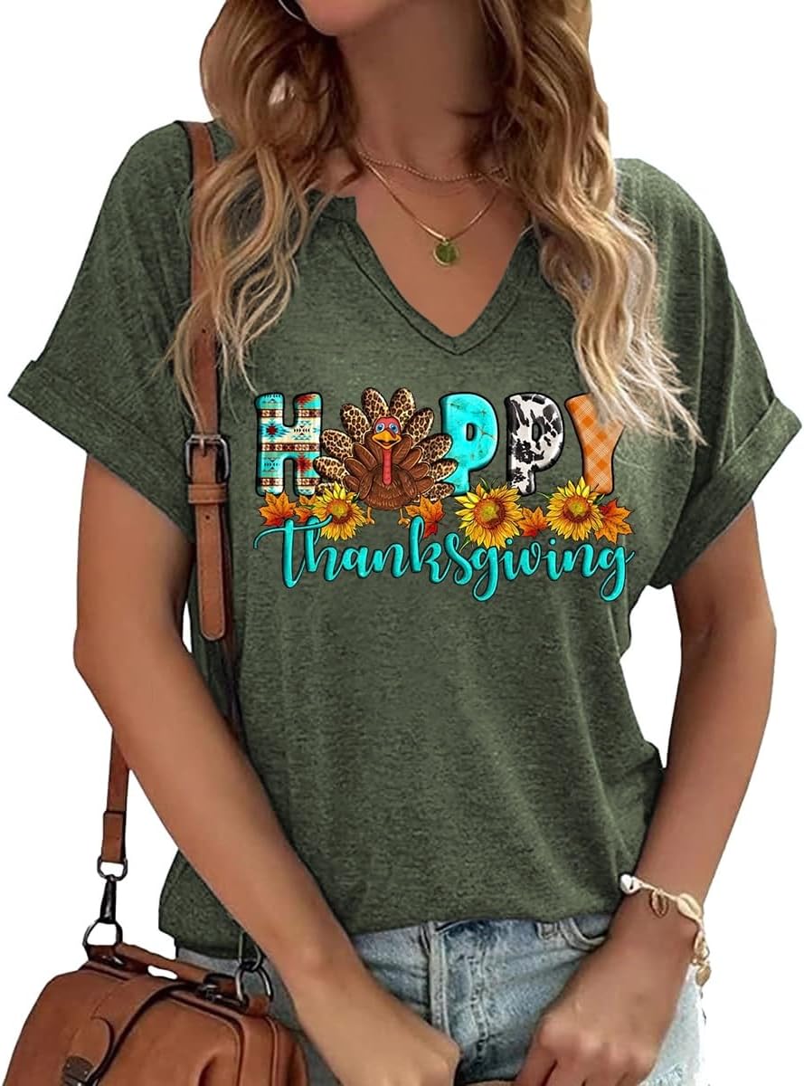 Thanksgiving Graphic V Neck Tees Blouse