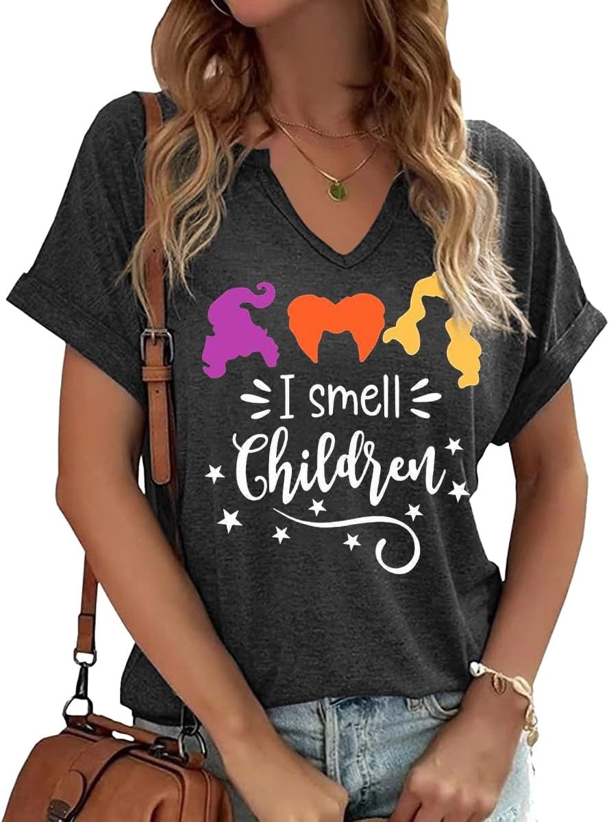 Halloween I Smell Children Graphic V Neck Tee