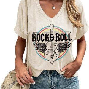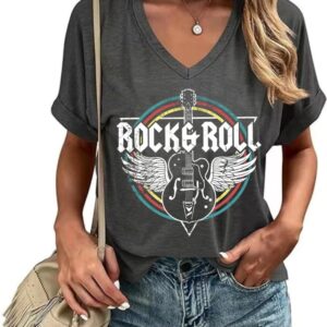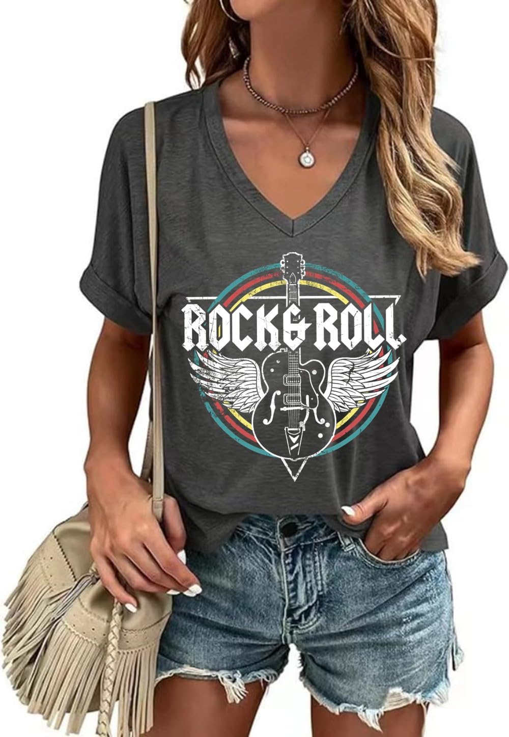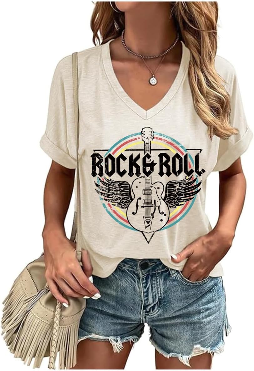 - Features: Women Rock Band Flowers Printed Pattern Shirt With Short Sleeve,Summer Fashion Rock T-Shirts , Round Neck , Funny Weekend Concert Graphic Tee Shirts