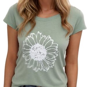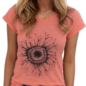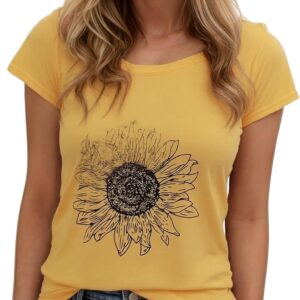 - Women’s Cute Graphic Printed Tees: Sunflower bouquet graphic tees shirts for women is made of high quality soft material. Skin friendly breathable fabric, lightweight, hight Stretch and comfortable, perfect all season top for you.
