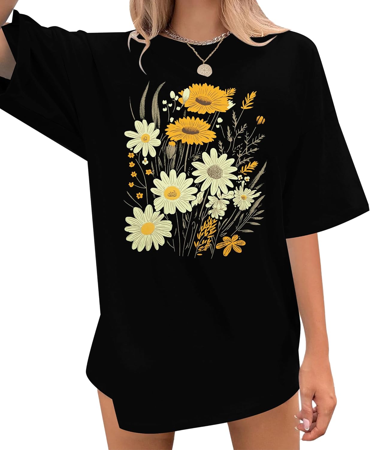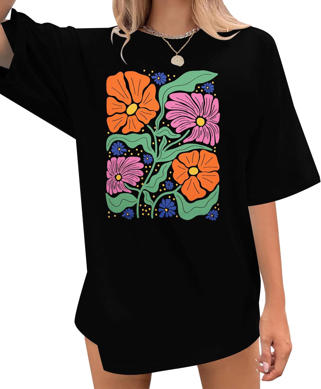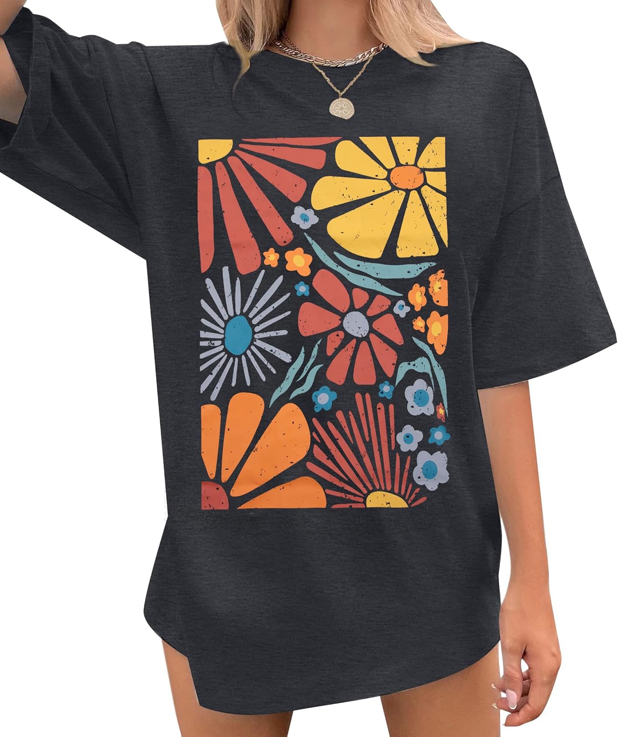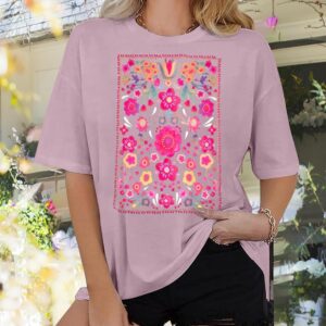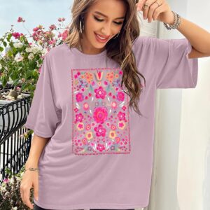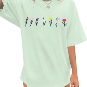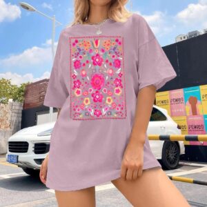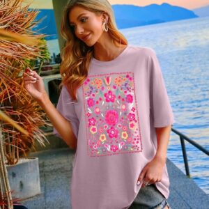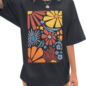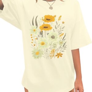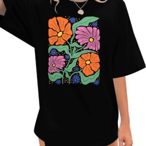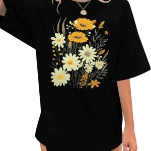 Womens Oversized Tshirt Flower Graphic Tees Boho Hiking T Shirt Vintage Wildflower Shirts Summer Casual Beach Tops