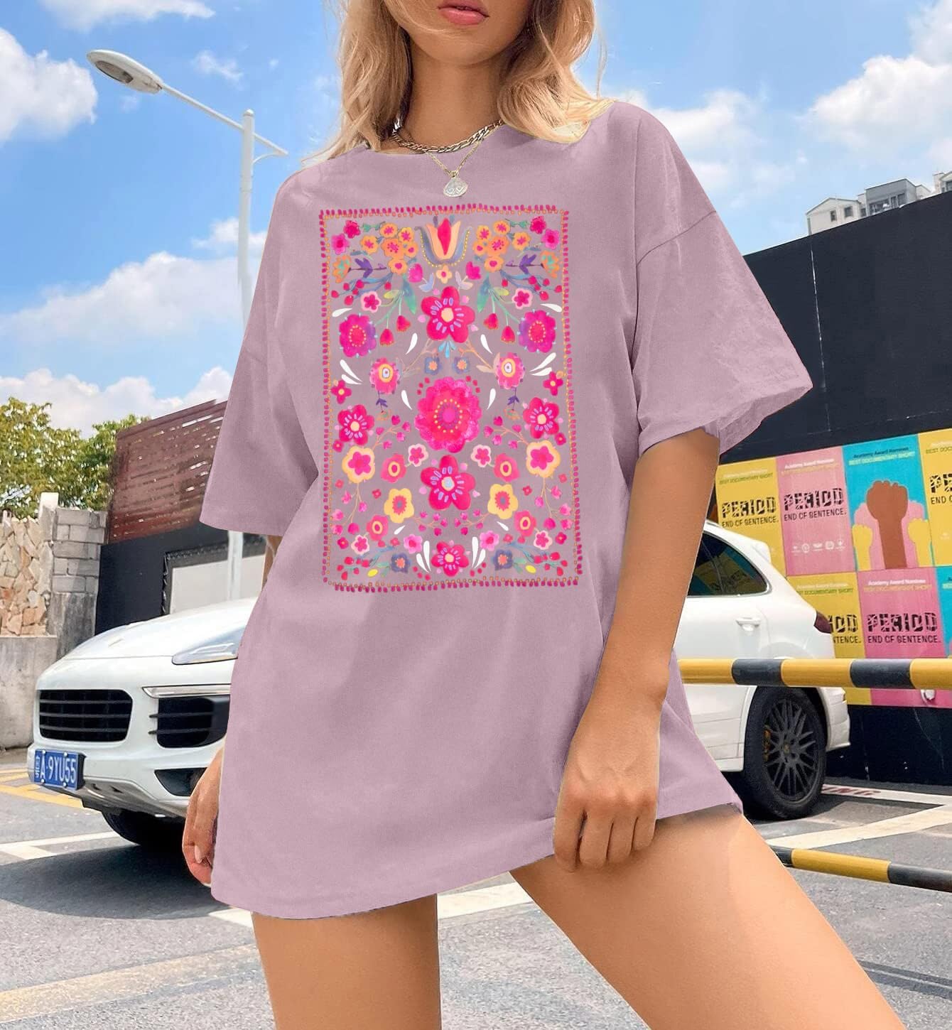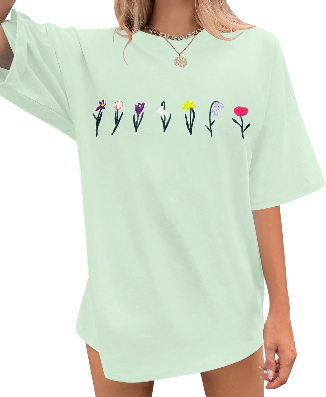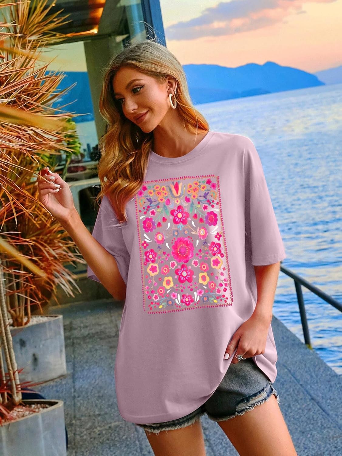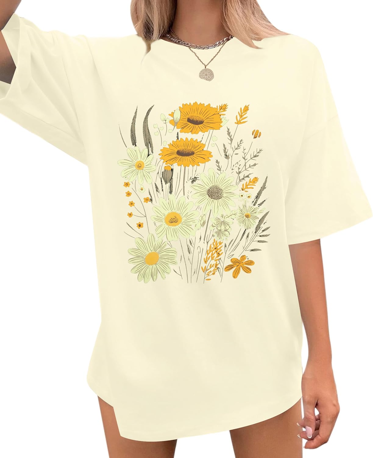 Womens Oversized Tshirt Flower Graphic Tees Boho Hiking T Shirt Vintage Wildflower Shirts Summer Casual Beach Tops