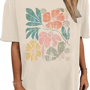 - Feature:This oversized flower graphic shirts for women, cute botanical t-shirt, summer wildflowers lover tee, Boho floral graphic, cute casual round neck, vintage floral graphic tees, nashville music city t-shirt,country music shirts,hawaiian tshirt,vacation shirt,unique design makes it popular among women and girls.