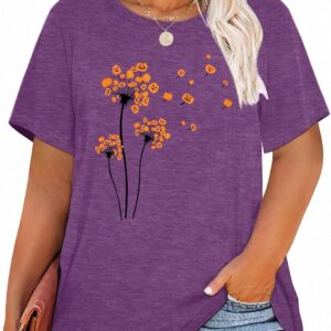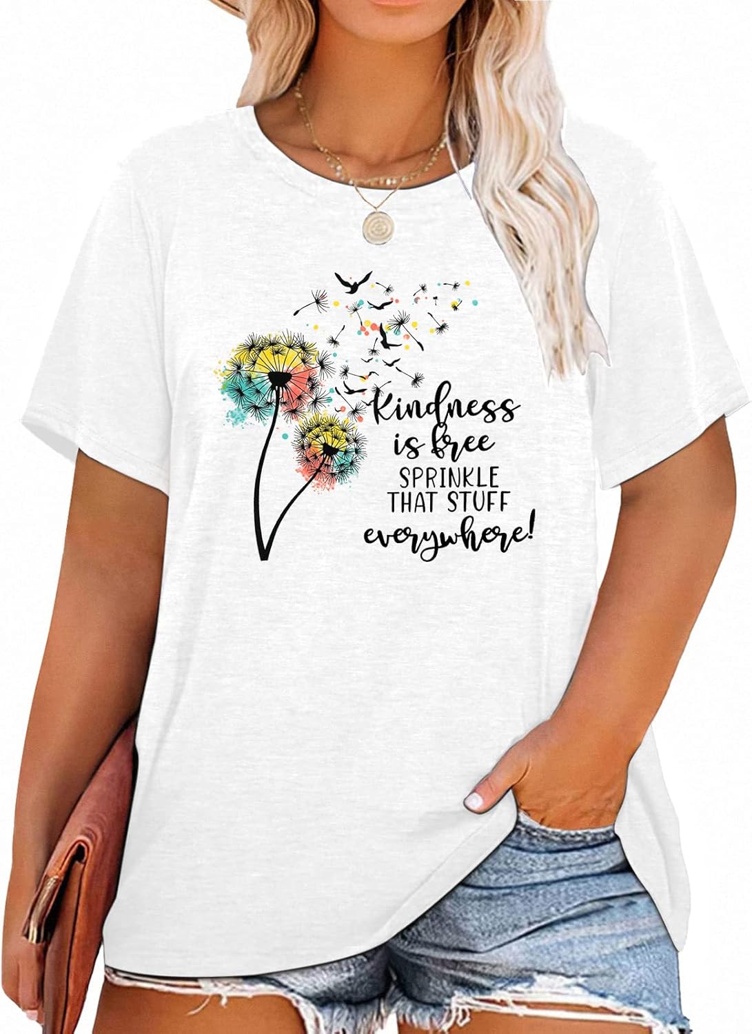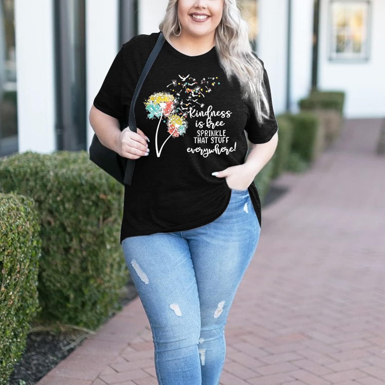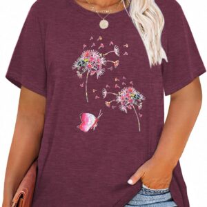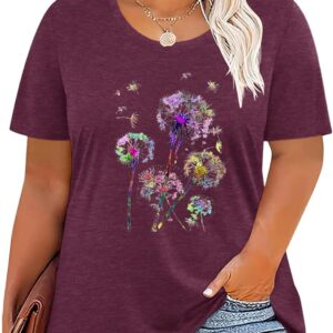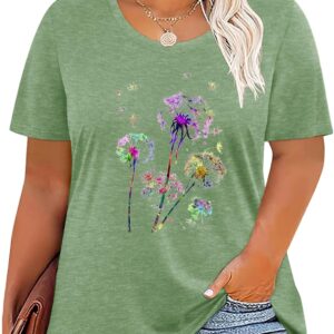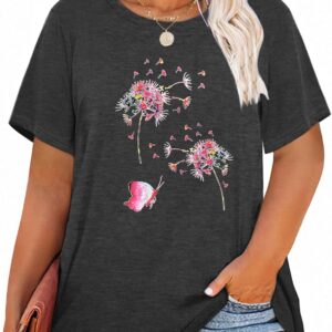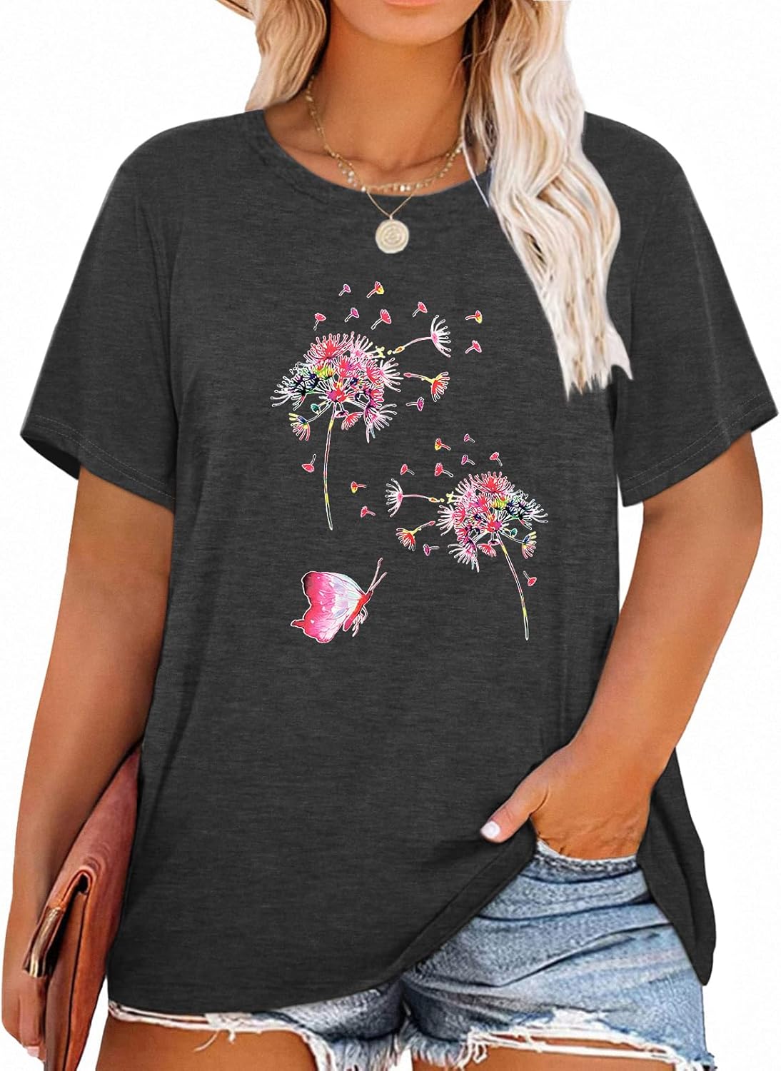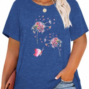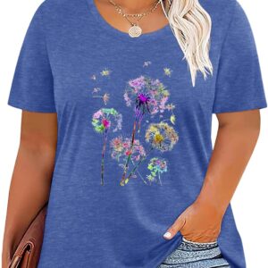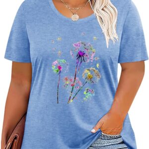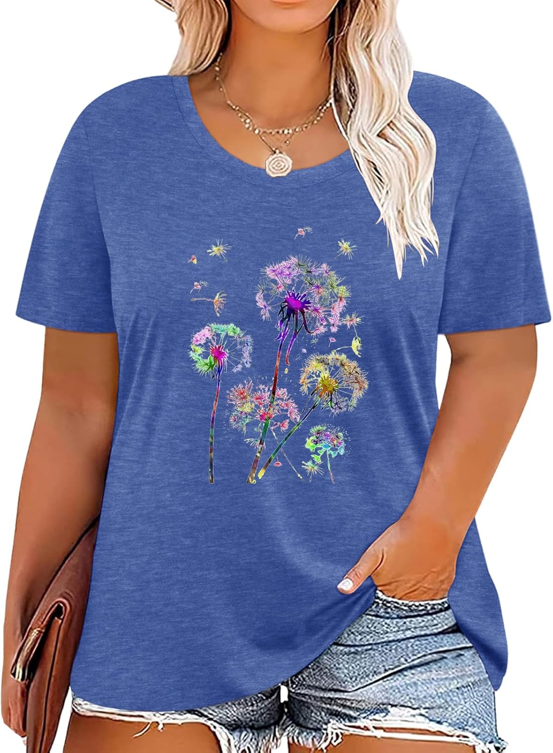 Womens Plus Size Dandelion Print Tshirt Cute Graphic Floral Tees Short Sleeve Summer Blessed Tee Tops