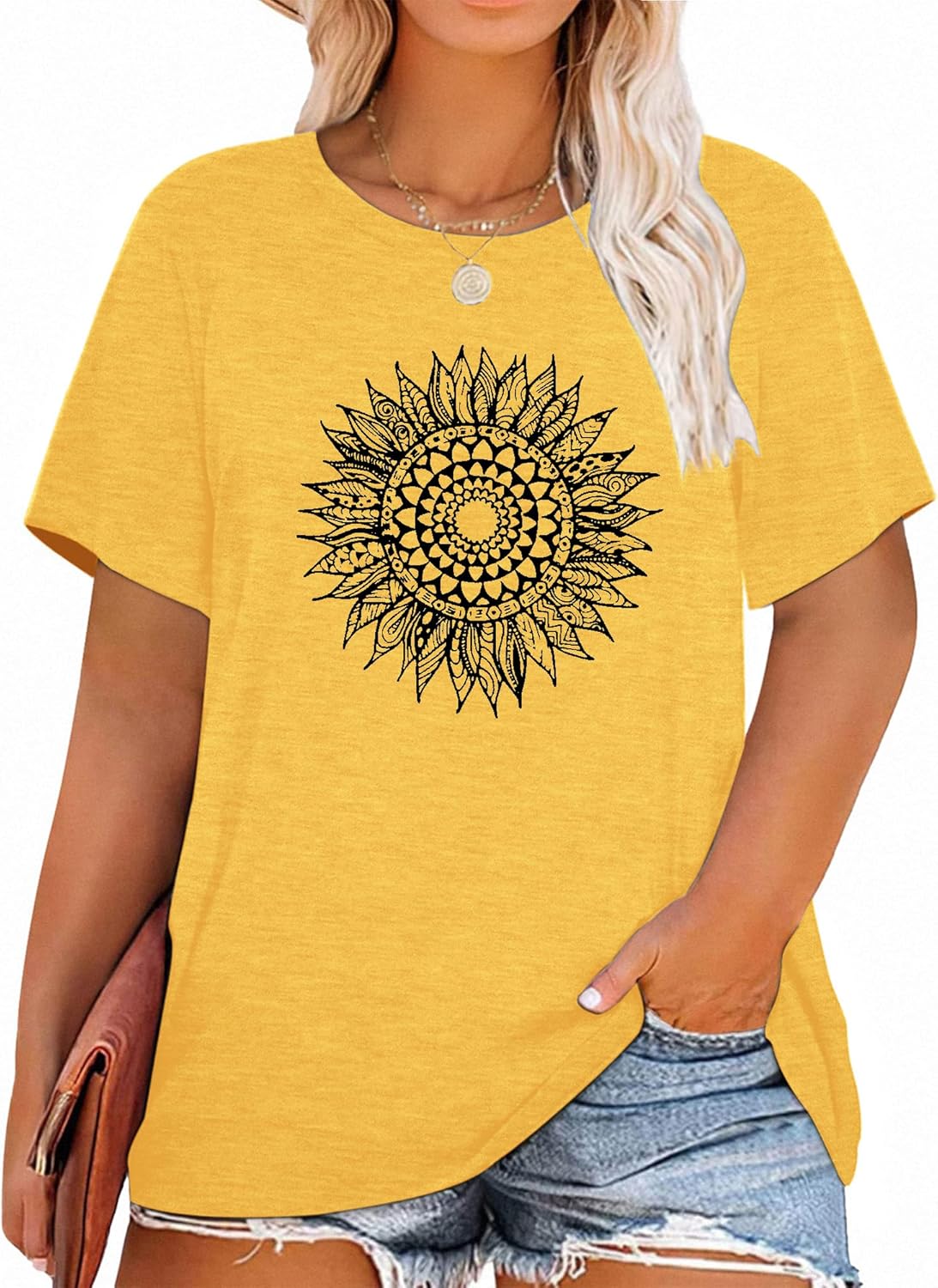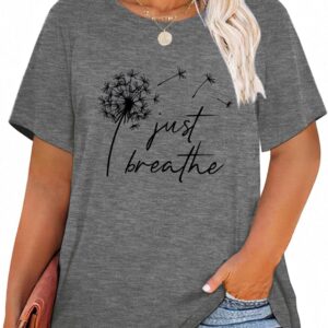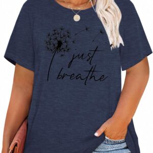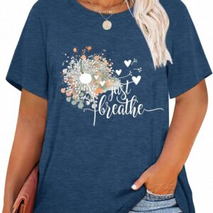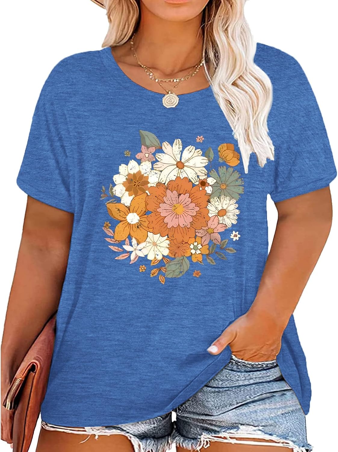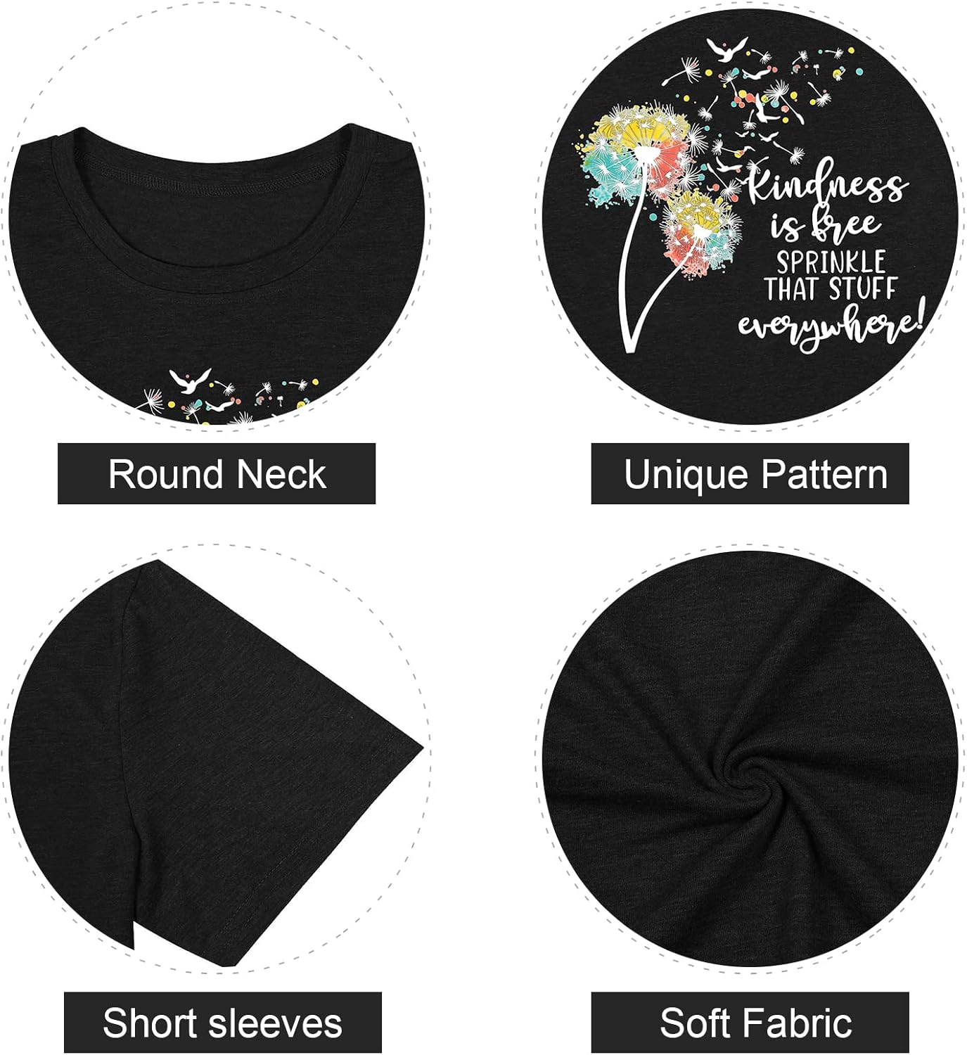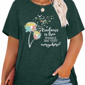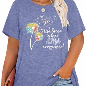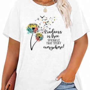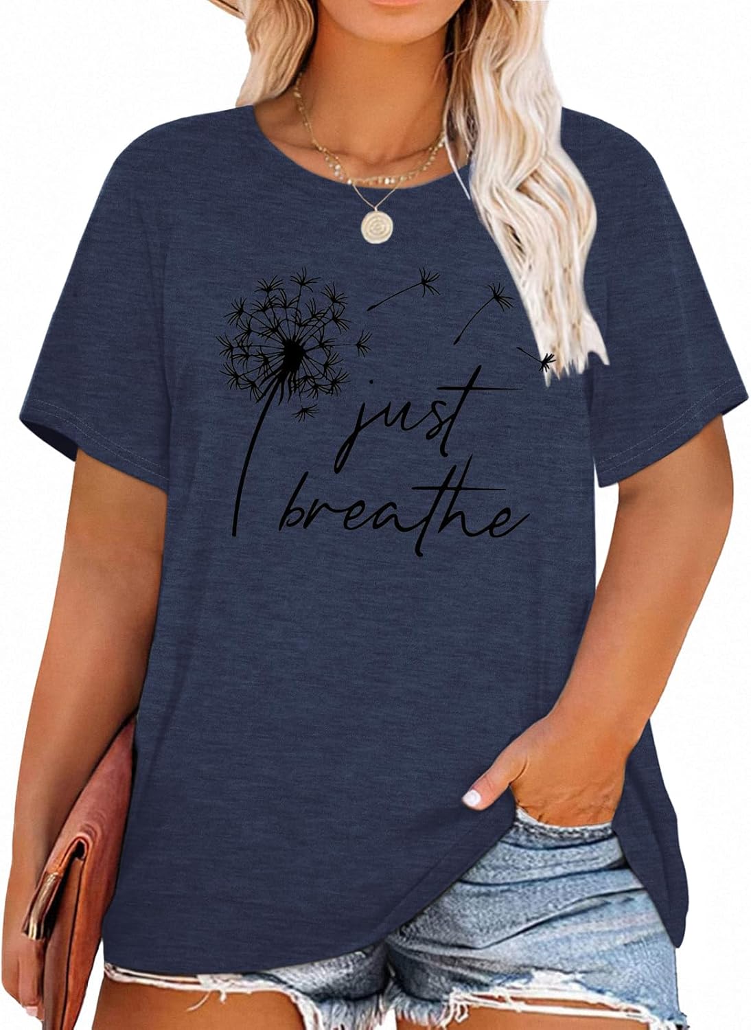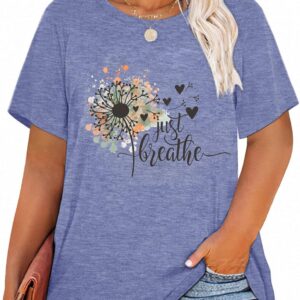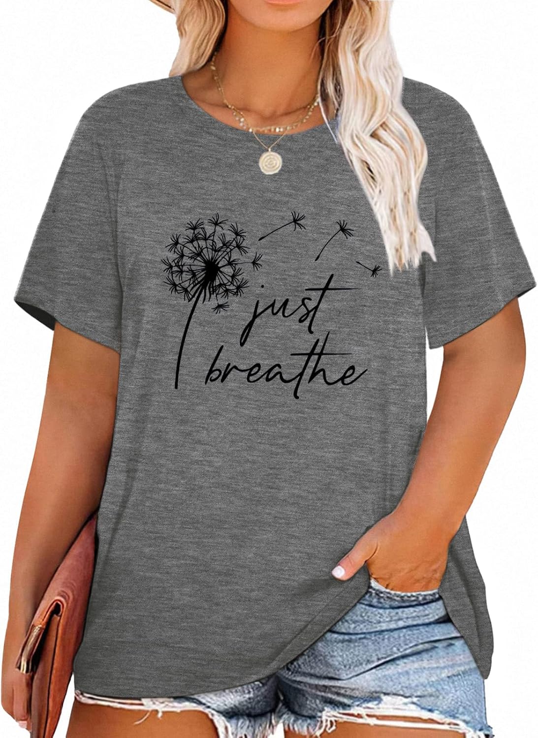 Womens Plus Size Dandelion Print Tshirt Cute Graphic Floral Tees Short Sleeve Summer Blessed Tee Tops