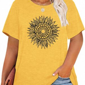 Womens Plus Size Dandelion Print Tshirt Cute Graphic Floral Tees Short Sleeve Summer Blessed Tee Tops quantity
