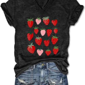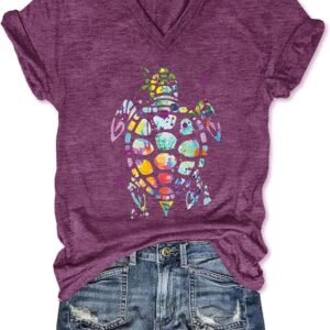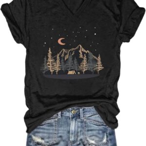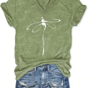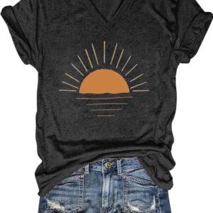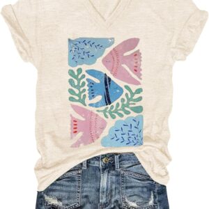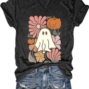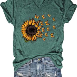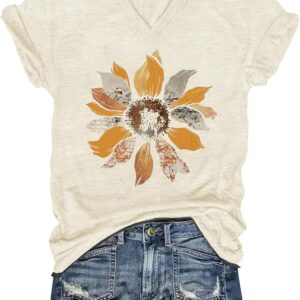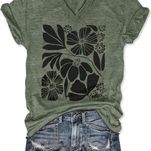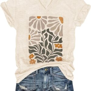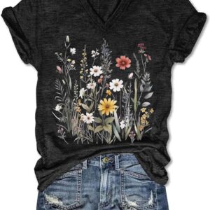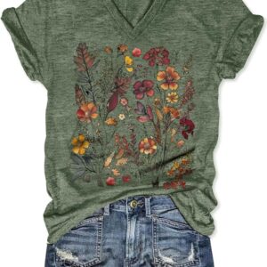 Women’s T-Shirts V-Neck Boho Flowers Wildflowers Graphic Tees Shirts Cute Casual Summer Tops Short Sleeve T Shirt