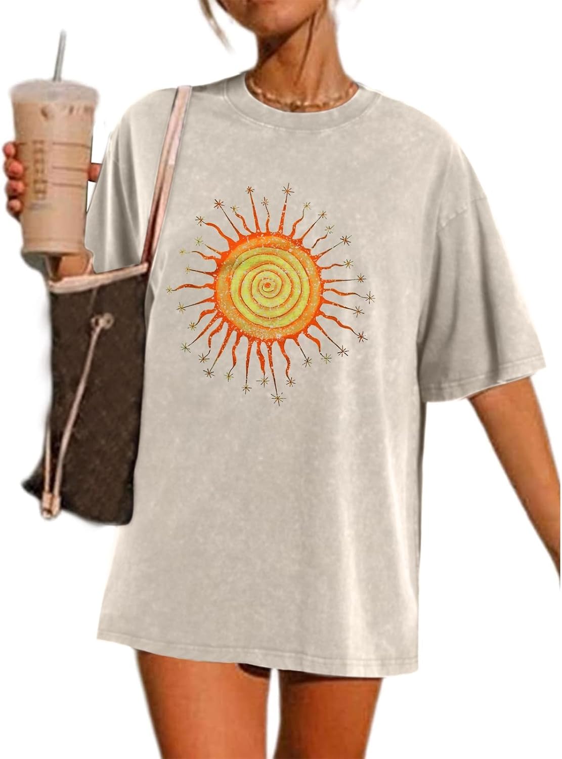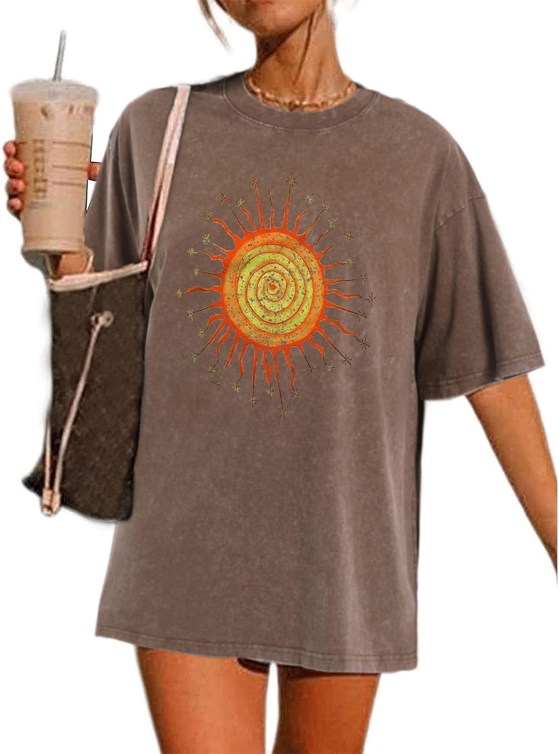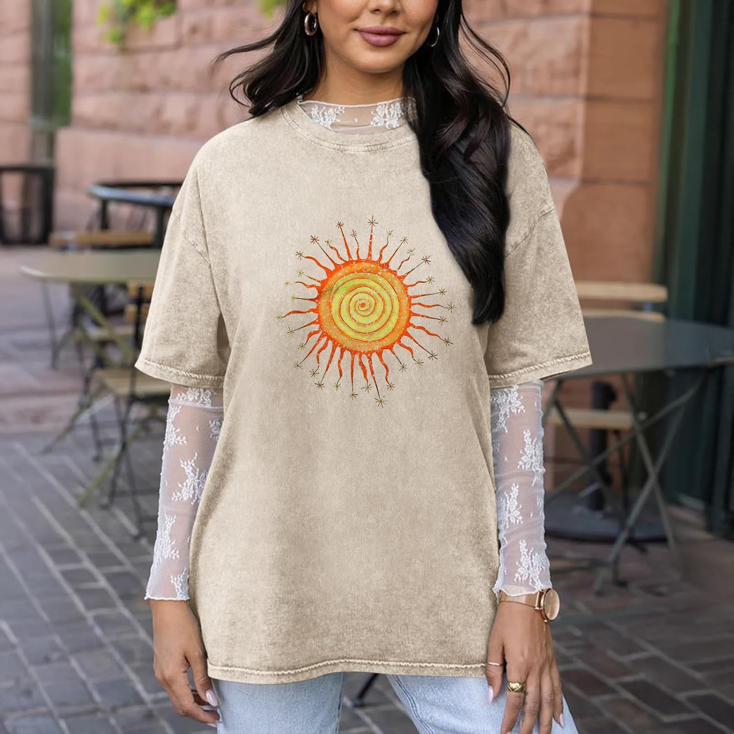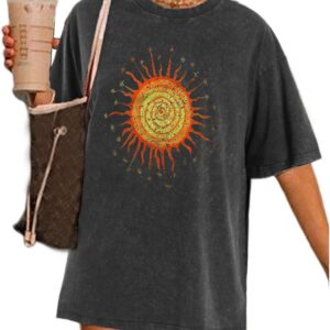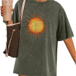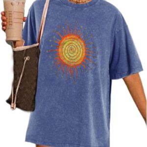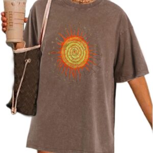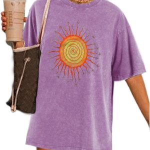 Wrenpies Vintage Oversized Sun Graphic Tees Aesthetic Casual Summer Tops