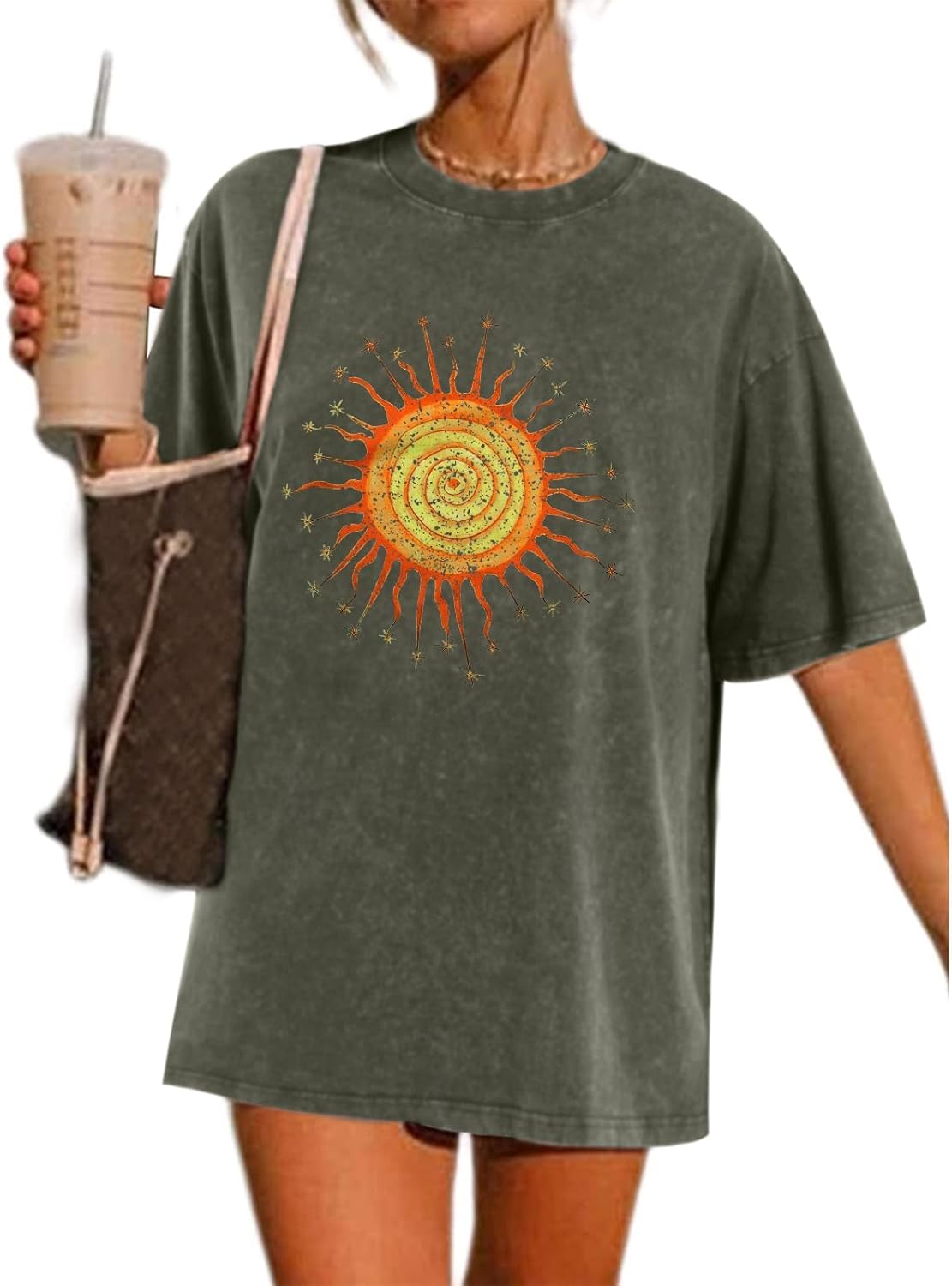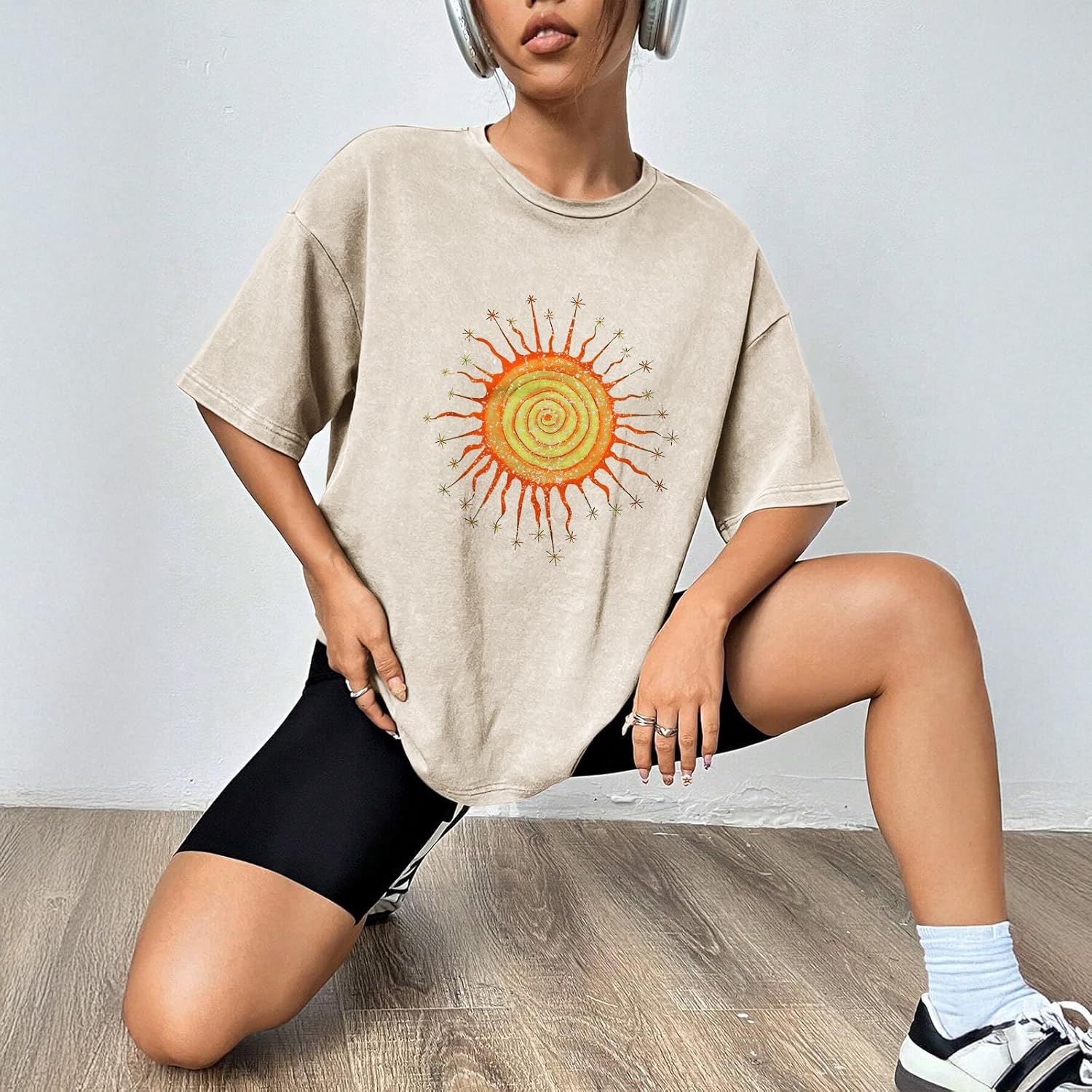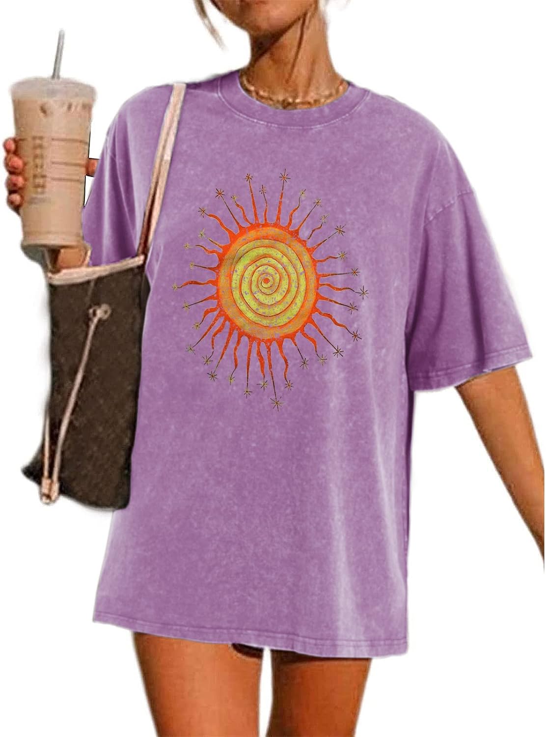Wrenpies Vintage Oversized Sun Graphic Tees Aesthetic Casual Summer Tops