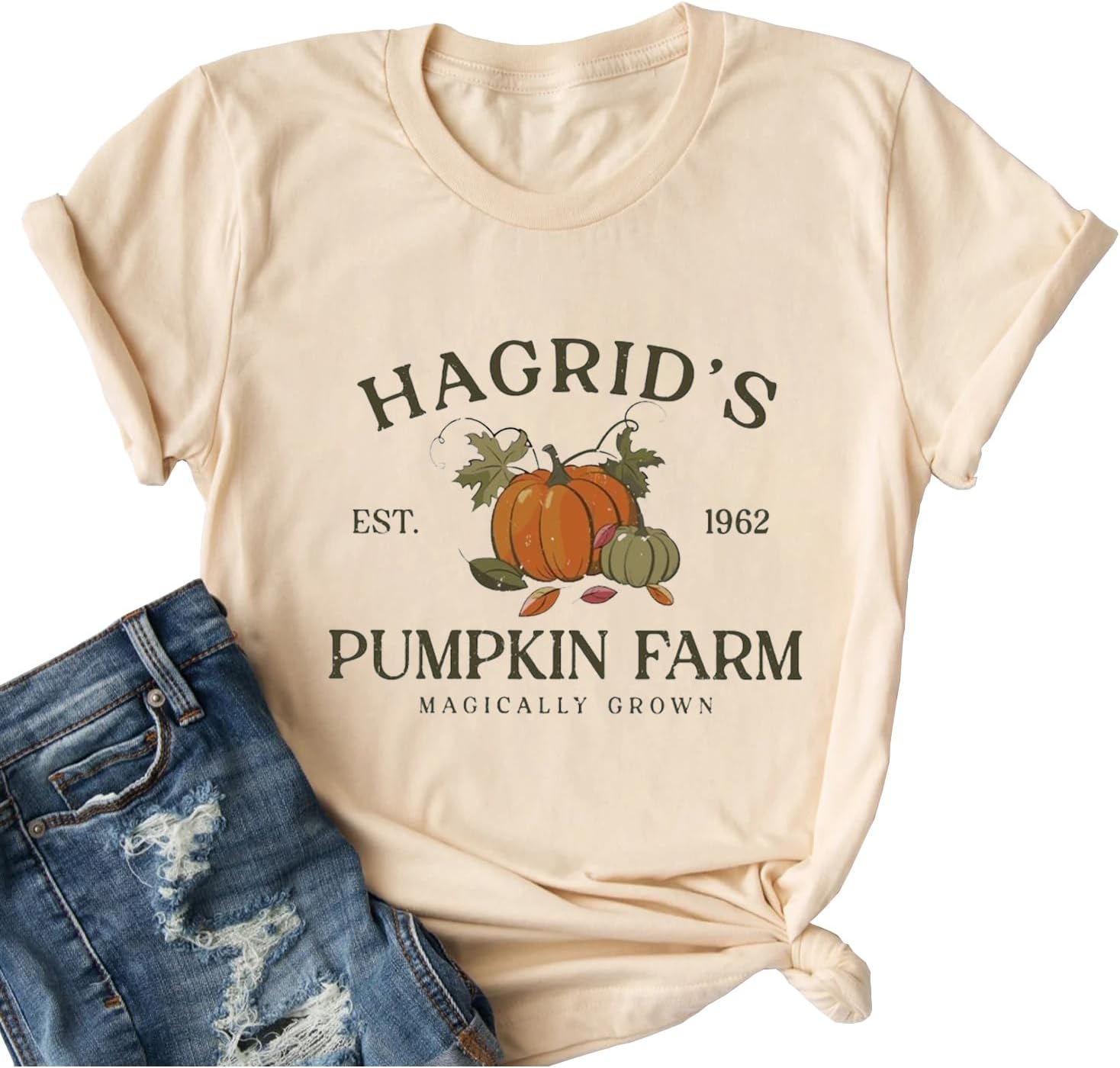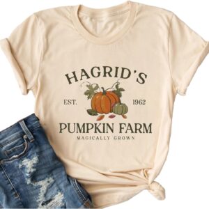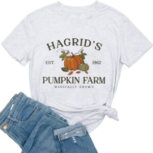 Ykomow Fall Thanksgiving Shirts for Women Halloween Pumpkin Patch Shirts Cute Fall Graphic Tees HP Fan Gift Hagrid’s Pumpkin Patch Shirt Witch Wizard Shirt